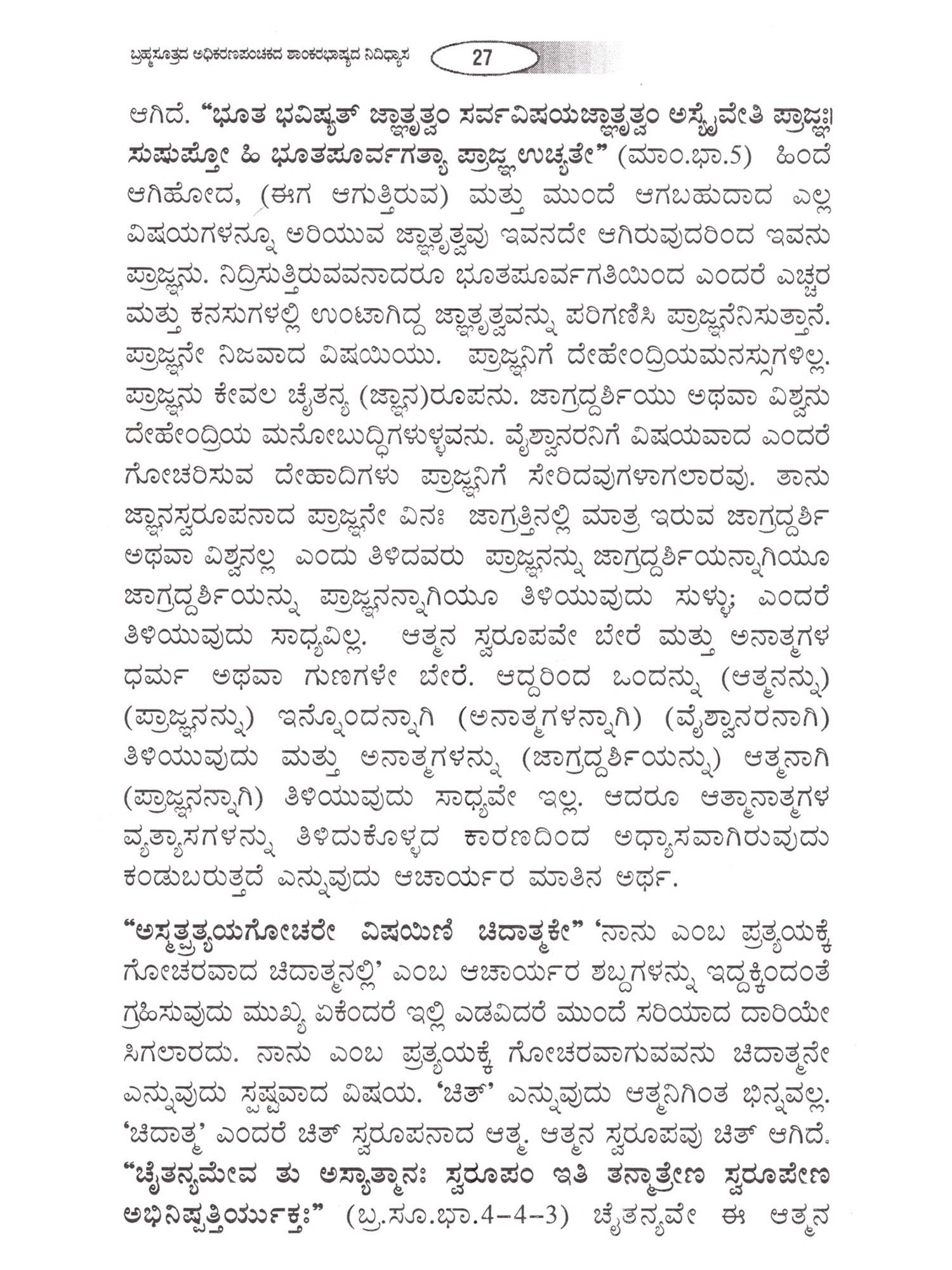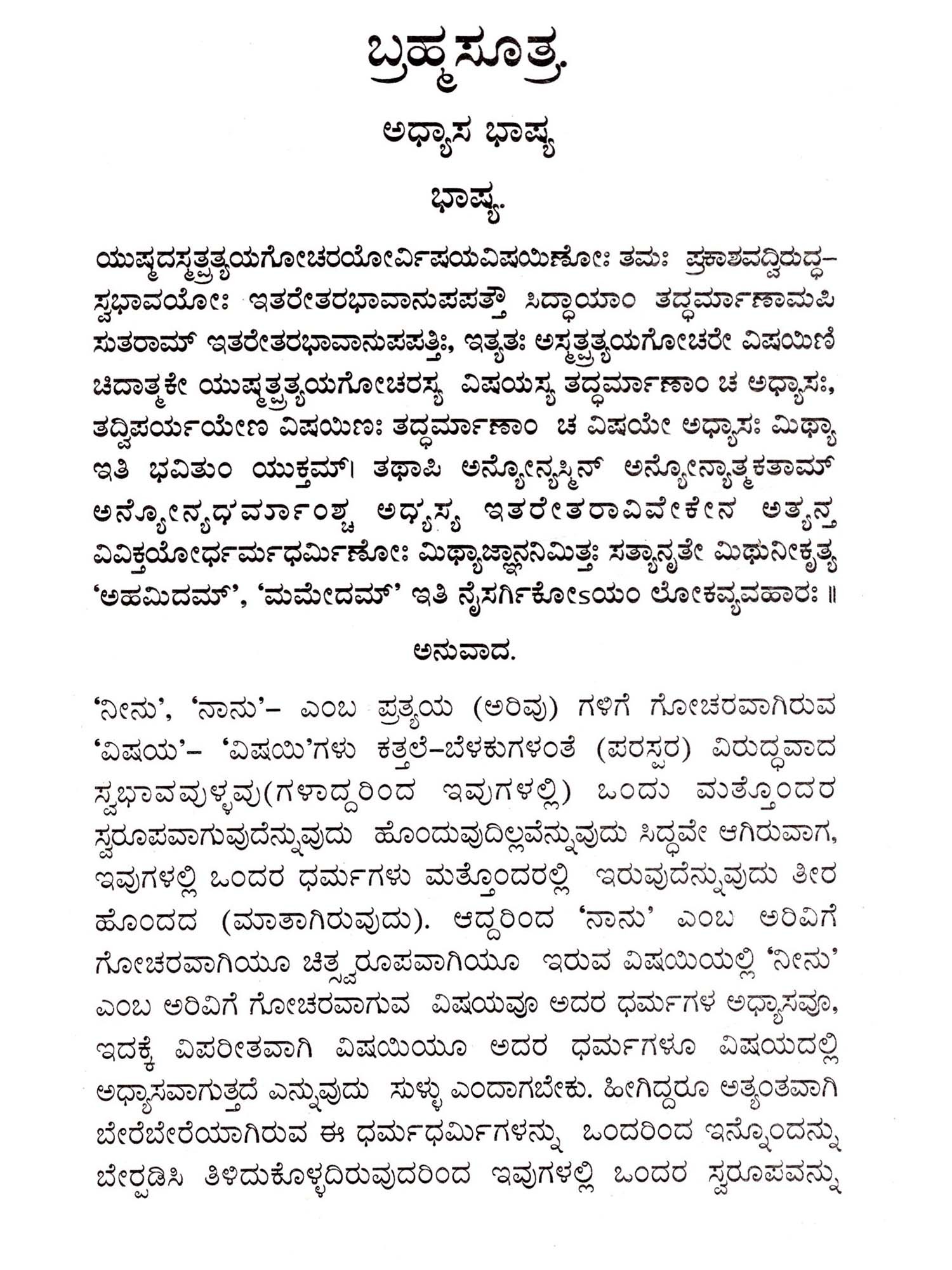 ಬ್ರಹ್ಮಸೂತ್ರಗಳು ಅರ್ಥ, ತತ್ಸ- Brahma Suthragalu: Artha, Tathwa (Kannada)