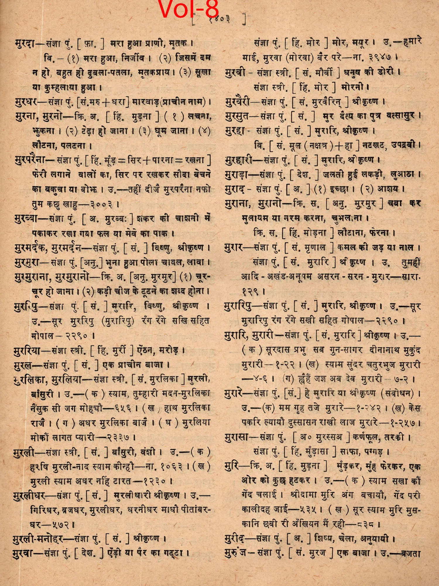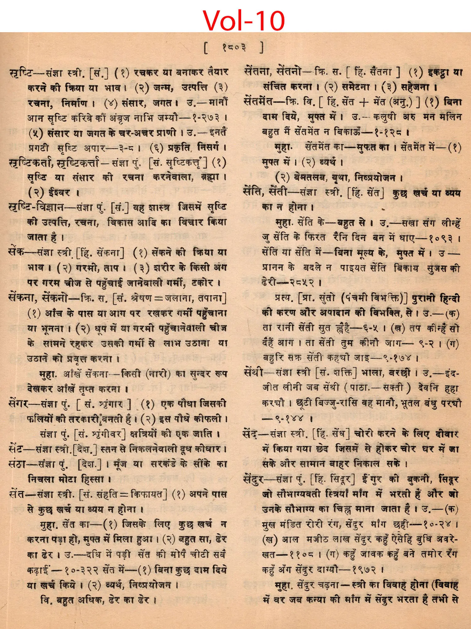 व्रजभाषा सूर-कोश: Brajbhasha Sur-Kosh (An Old and Rare Book in Set of 10 Volumes, 4th Volume is Missing)