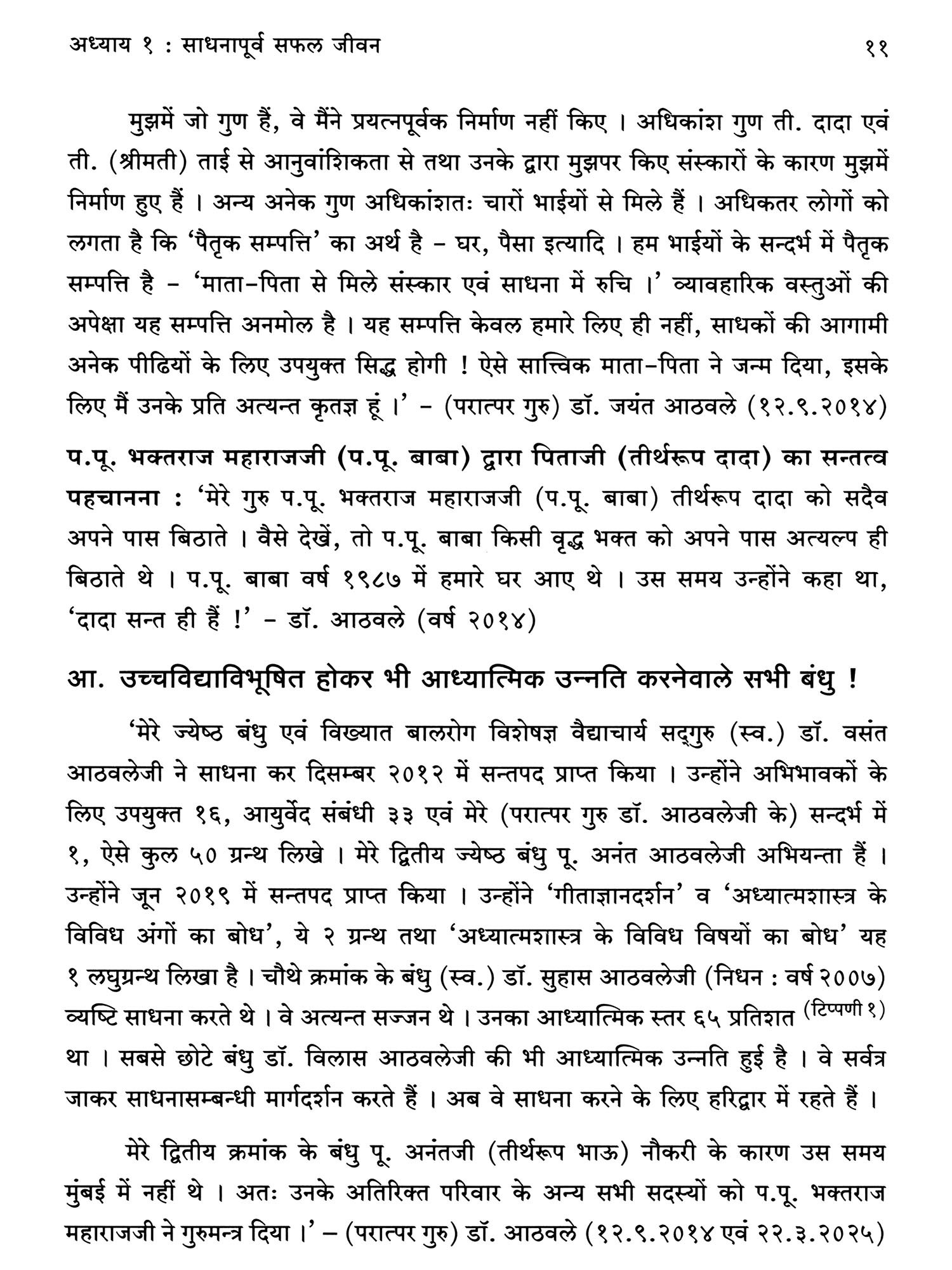 विख्यात सम्मोहन उपचार विशेषज्ञ रहे डॉ. आठवलेजी की आरम्भ में अध्यात्म में विशेष रुचि नहीं थी; किन्तु अध्यात्म का महत्त्व ज्ञात होने पर उन्होंने अध्यात्मशास्त्र का अध्ययन एवं साधना की। उनकी लगन के कारण उन्हें वर्ष १९८७ में इन्दौर के महान सन्त प.पू. भक्तराज महाराजजी के रूप में गुरुप्राप्ति हुई। उन्होंने गुरुचरणों में तन-मन-धन अर्पित कर परिपूर्ण सेवा की। गुरु ने उनका आध्यात्मिक अधिकार विविध प्रकार से दर्शाया, उदा. वर्ष १९९२ में गुरु ने कहा, '(साधको,) आपको डॉक्टरजी को सन्त एवं गुरु मानना चाहिए !' डॉ. आठवलेजी की 'साधक' से 'उत्तम शिष्य' तक की बोधप्रद यात्रा इस ग्रन्थ के माध्यम से ज्ञात होती है।