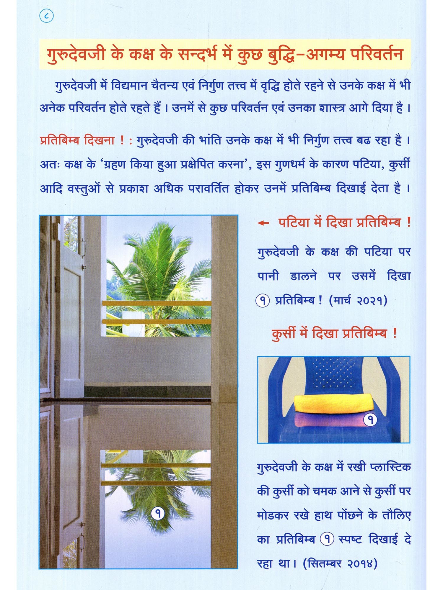 गुरुदेवजी की साधना के कारण उनमें बढा हुआ चैतन्य एवं निर्गुण तत्त्व के कारण उनकी देह, उनके उपयोग की वस्तुएं एवं वे जहां रहते हैं वह वास्तु, इनमें भी पंचतत्त्वों के स्तर पर बुद्धि-अगम्य परिवर्तन हो रहे हैं। ऐसे परिवर्तनों का शोधपरक अध्ययन करनेवाले गुरुदेवजी एकमात्र हैं! ये परिवर्तन व उसका अध्यात्मशास्त्र, यह भी इस ग्रन्थ की अद्वितीय विशेषता है।