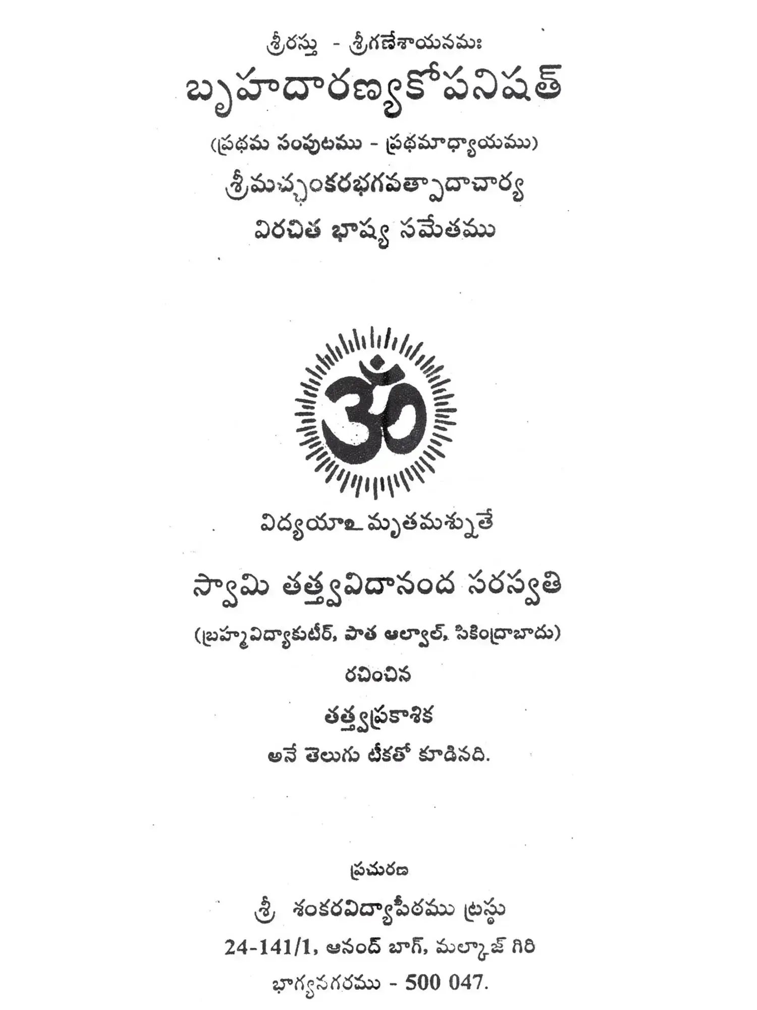 తైత్తిరీయోపనిషత్: Taittiriya Upanishad (With Commentary by Srimachankara Bhagavatpadacharya) Telugu