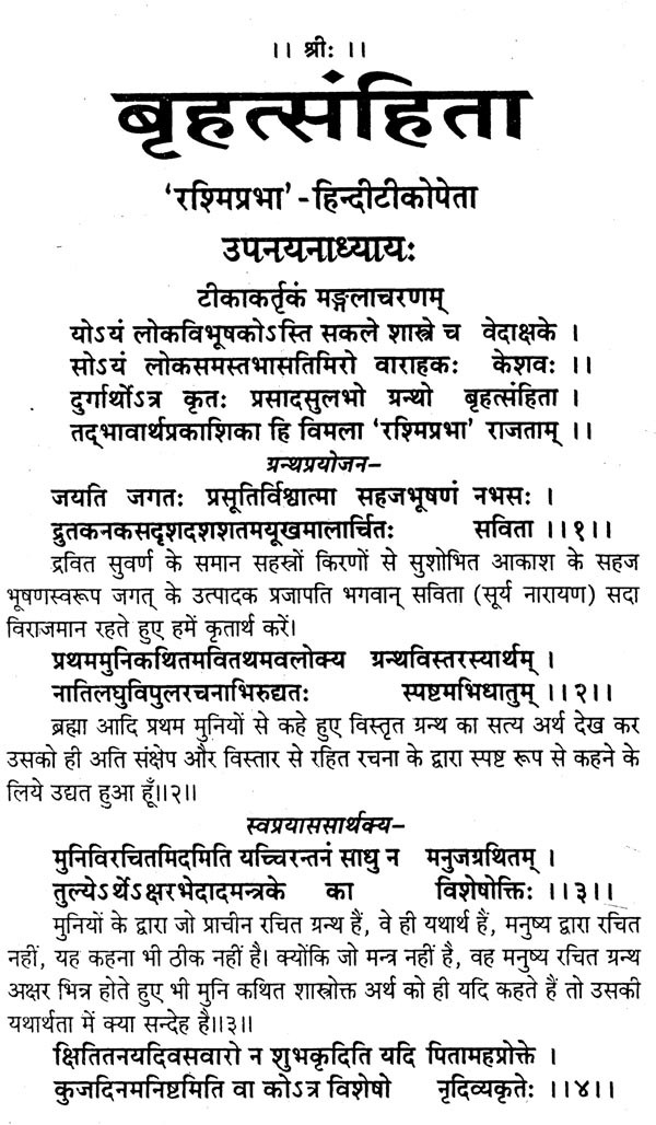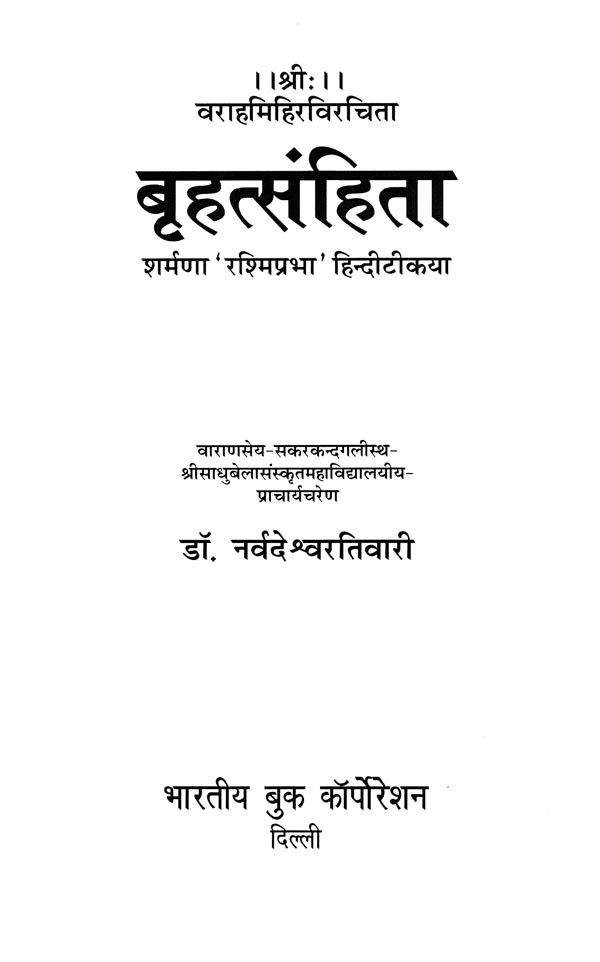 बृहत्संहिता- The Brihat Samhita: Sharma with 'Rashmiprabha' Hindi Commentary