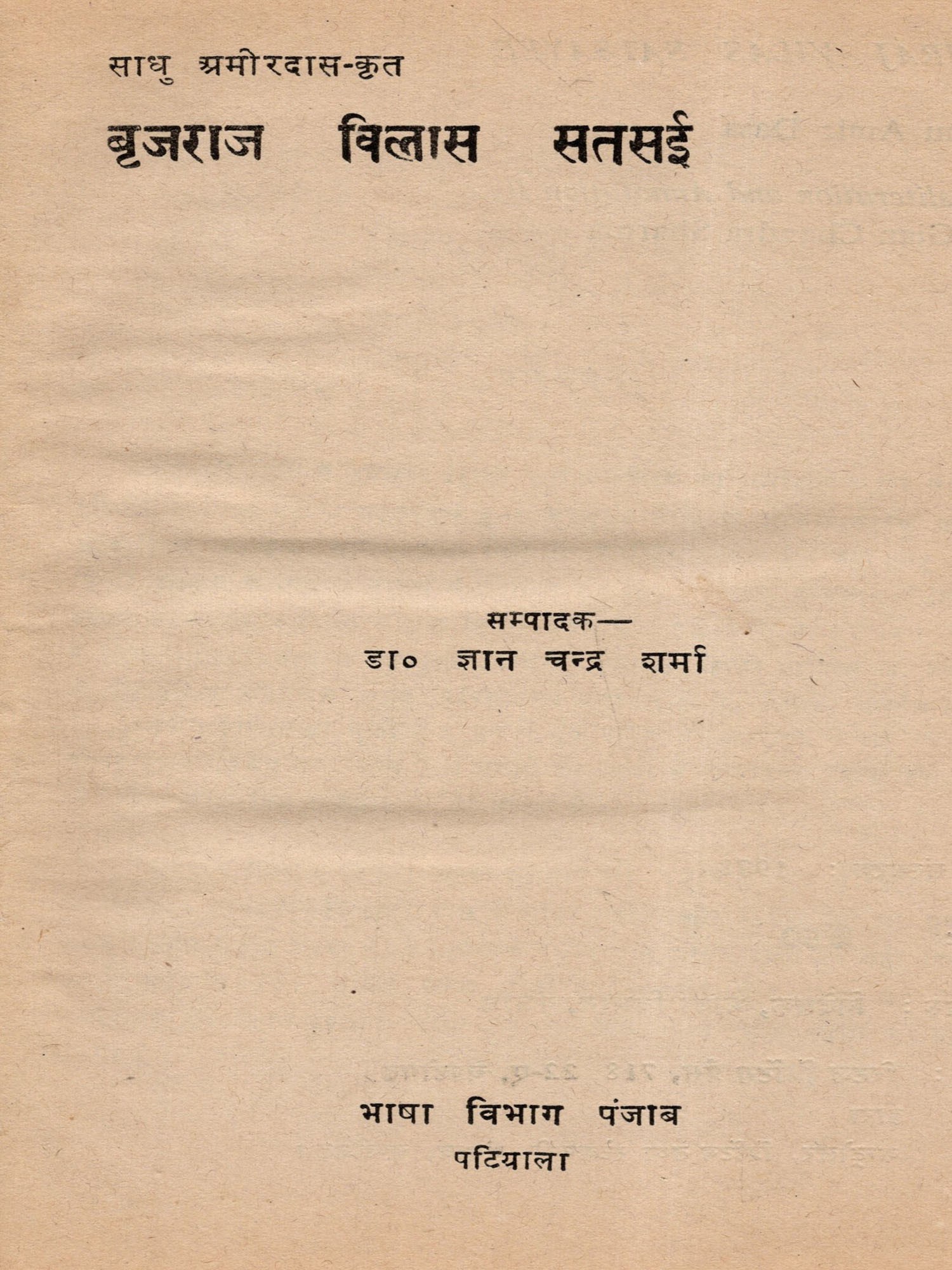 बृज राज विलास सतसई: Brijraj Vilas Satsayee (An Old and Rare Book)