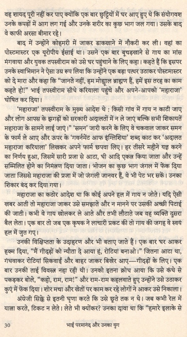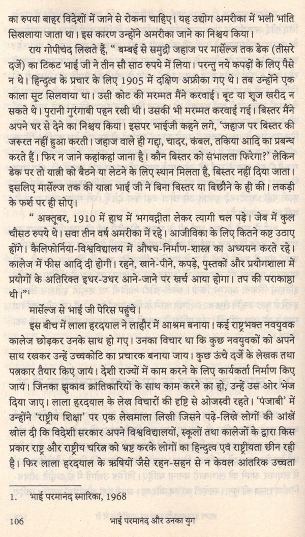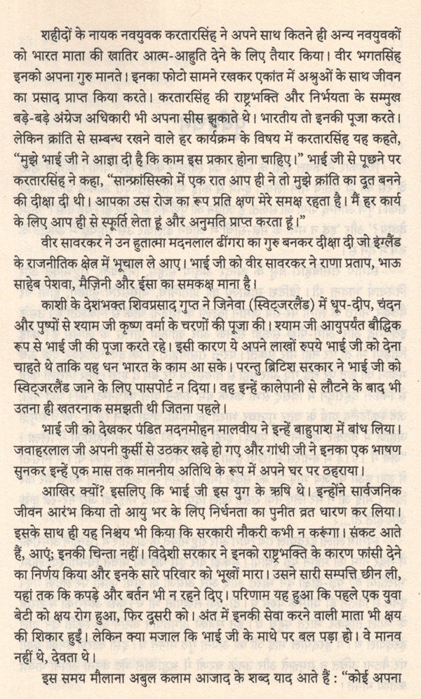 भाई परमानंद और उनका युग भाई जी का जीवन-चरित्र माल नहीं है, बलिदानी वीरों की शौर्य गाथा है। हिन्दू दृष्टि का यह एक प्रामाणिक दस्तावेज़ है, तथ्यमूलक जीवंत इतिहास है। 'भारतीय स्वतंत्रता की कहानी इस ग्रन्थ के बिना अधूरी है।