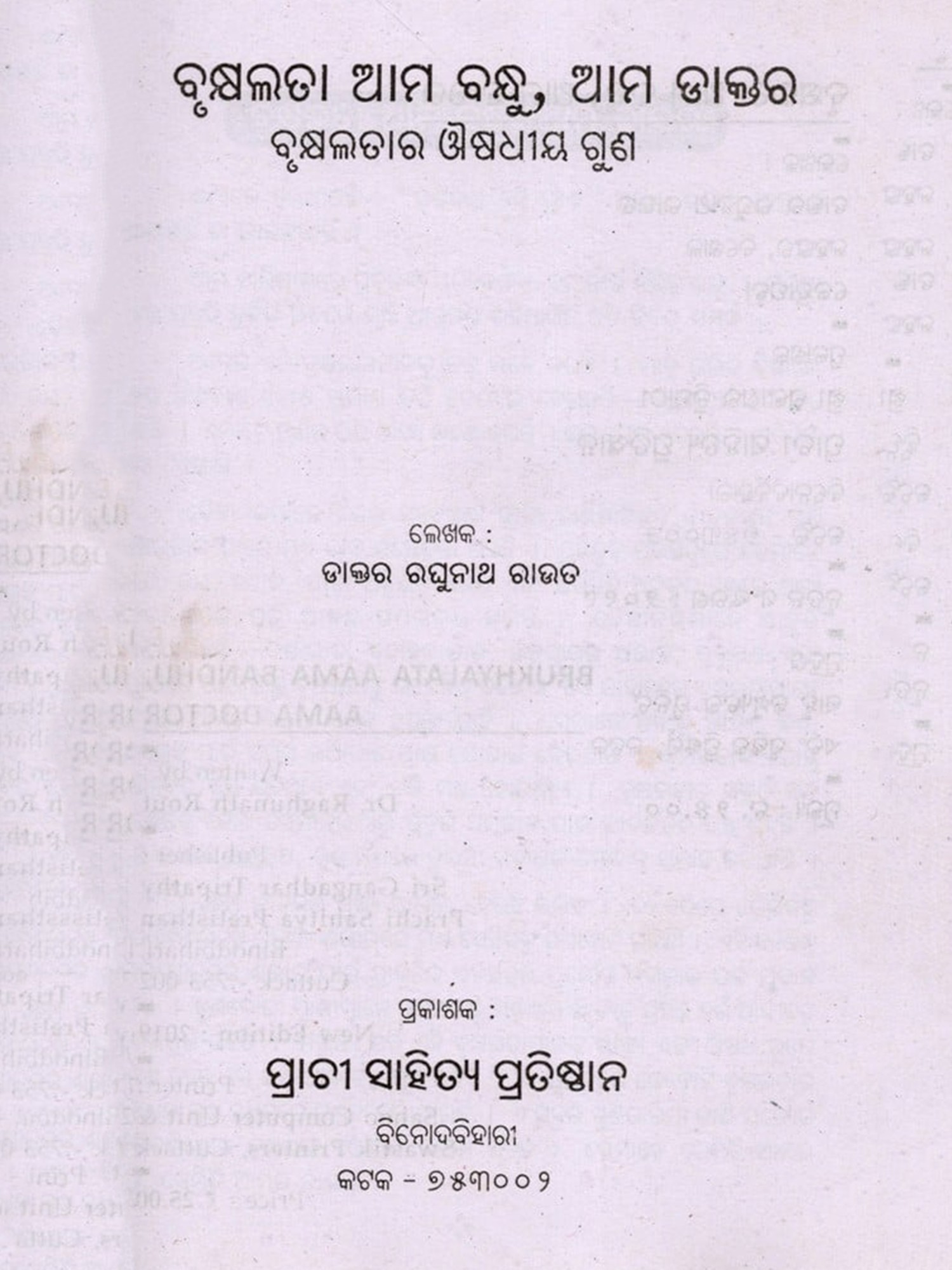 ଆମ ଓଡ଼ିଶାର ବୃକ୍ଷଲତା ও ଅନ୍ୟାନ୍ୟ ଦ୍ରବ୍ୟର ଔଷଧୀୟ ଗୁଣ ଓ ତା’ର ବ୍ୟବହାର: Aama Odishara Brhukhyalata O Anyanya Drabyara Ausodhiya Guna O Tara Byabahara (Oriya)