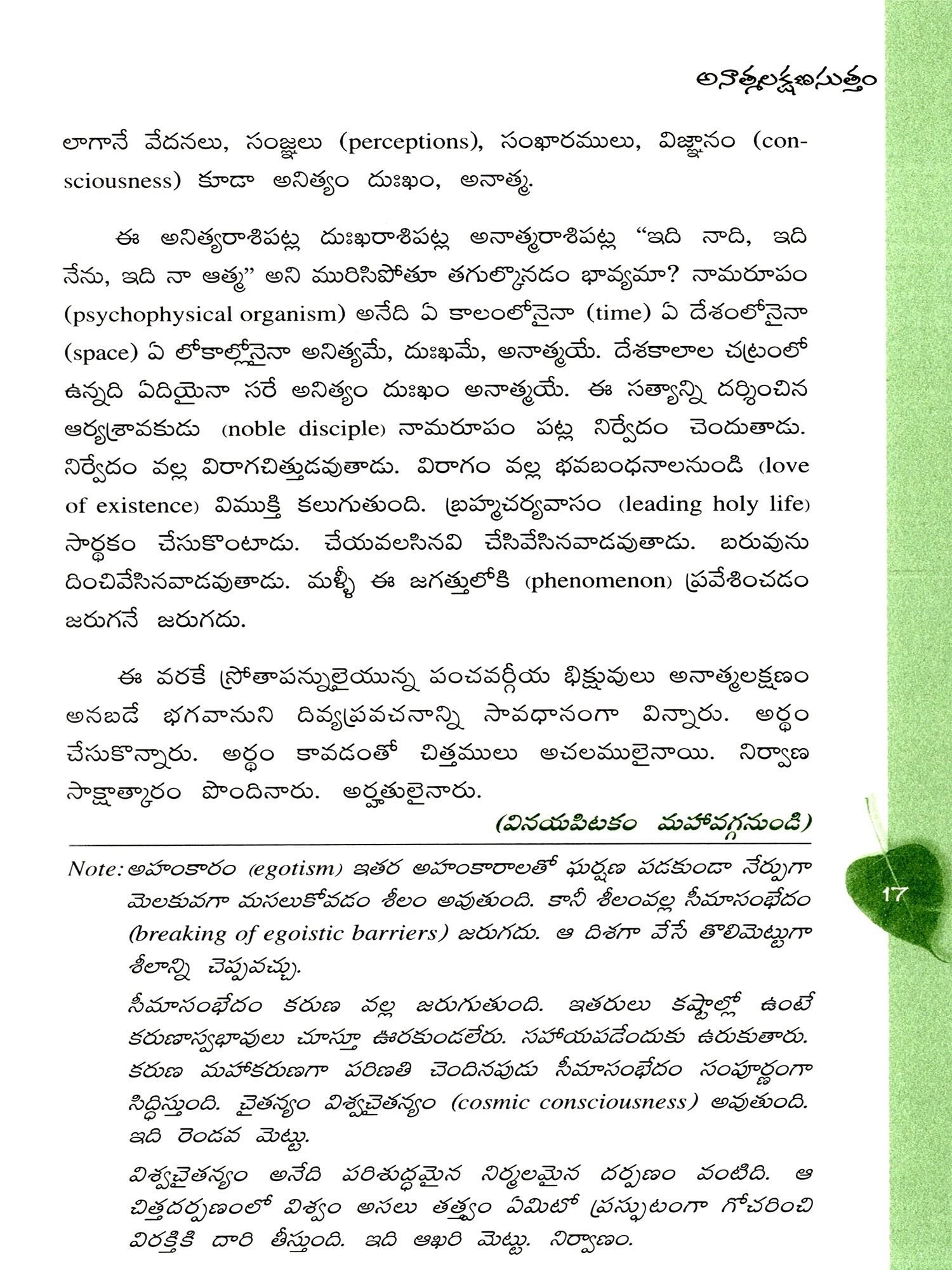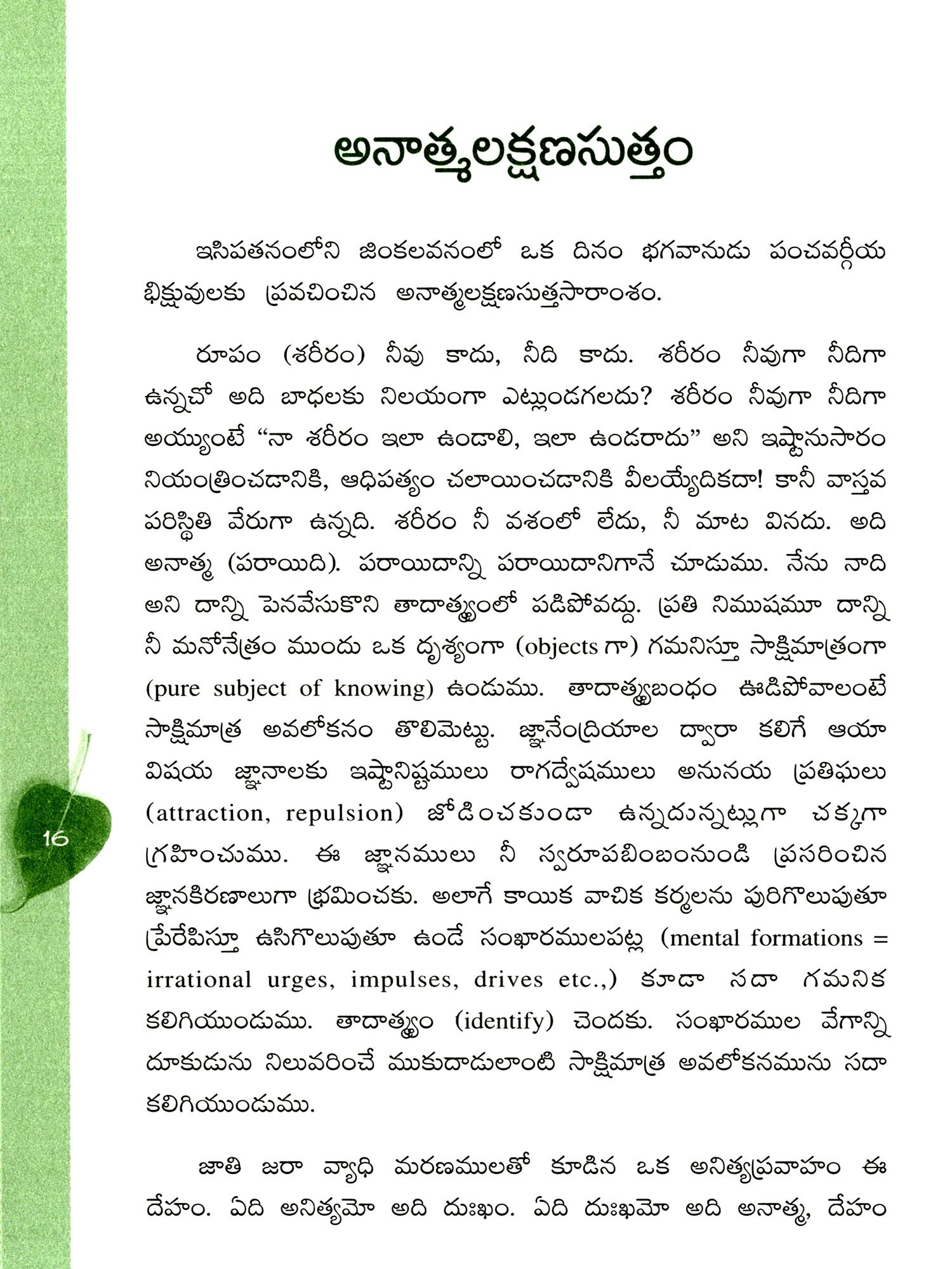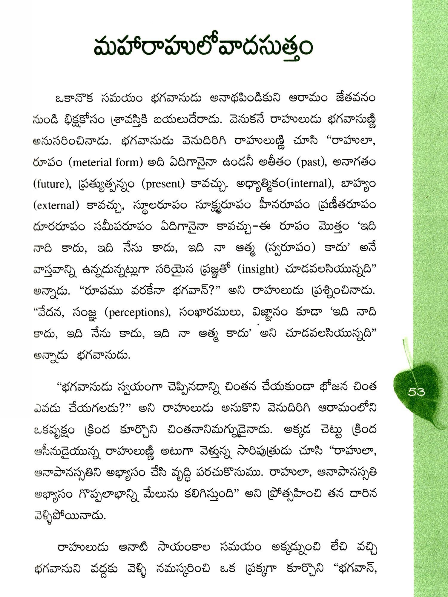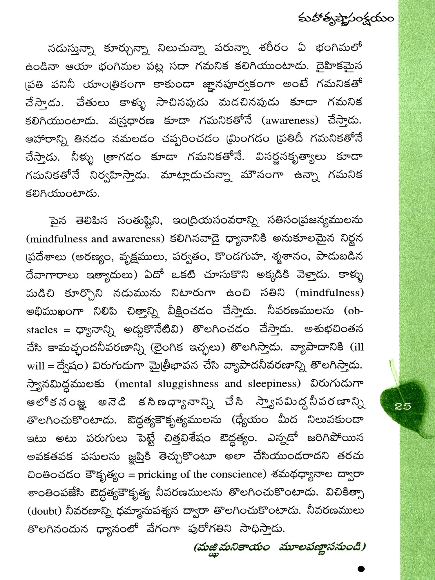 మహాస్మృతిప్రస్థాన సూత్రము: Mahasmritiprasthana Sutra (The Buddha's Great Discourse on Vipassana Meditation) Telugu