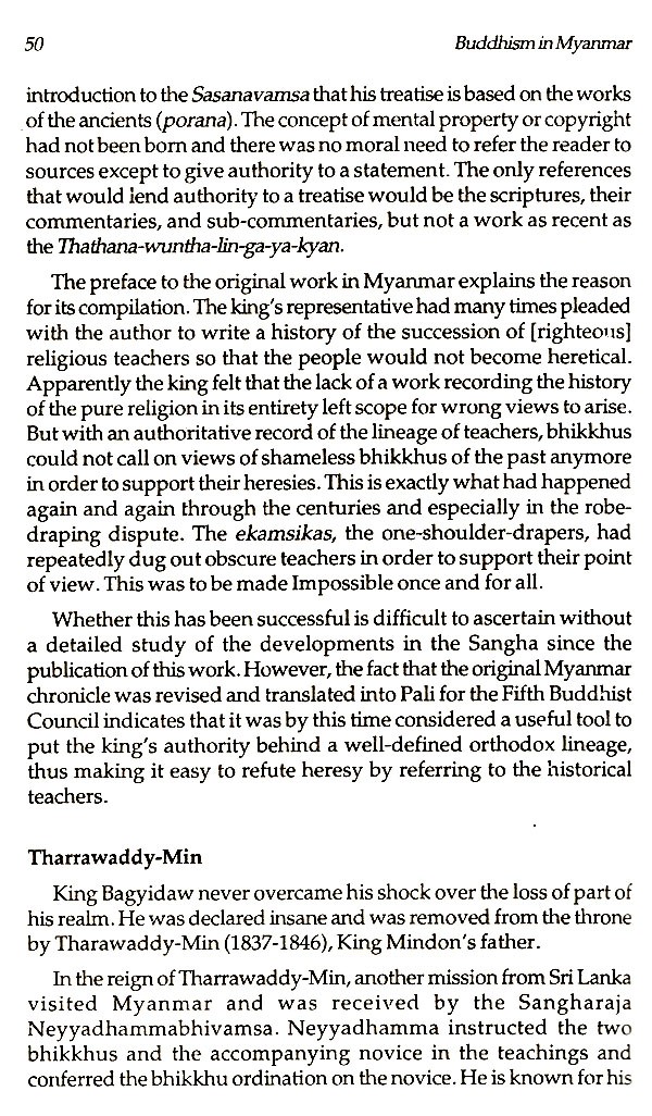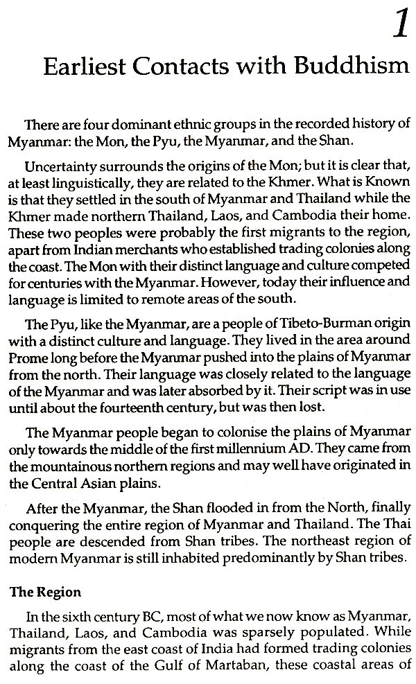 This book attempts to study the evolution of Buddhism in Myanmar, and its history through the age. It makes an accessment of the impact of Buddhist thought on different aspects of the life of the people of Myanmar.