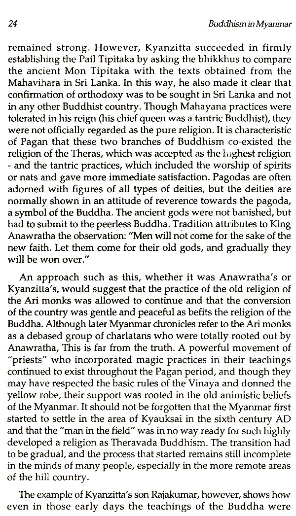 Researchers on Buddhism in Myanmar argue that the religion did not develop in Myanmar. Rather, the Myanmar people developed through the religion until the Thervada faith became embed- ded in their culture and Pali Buddhism became second nature to them. Buddha's teaching did not make a lasting impression on Myanmar immediately upon first arrival.