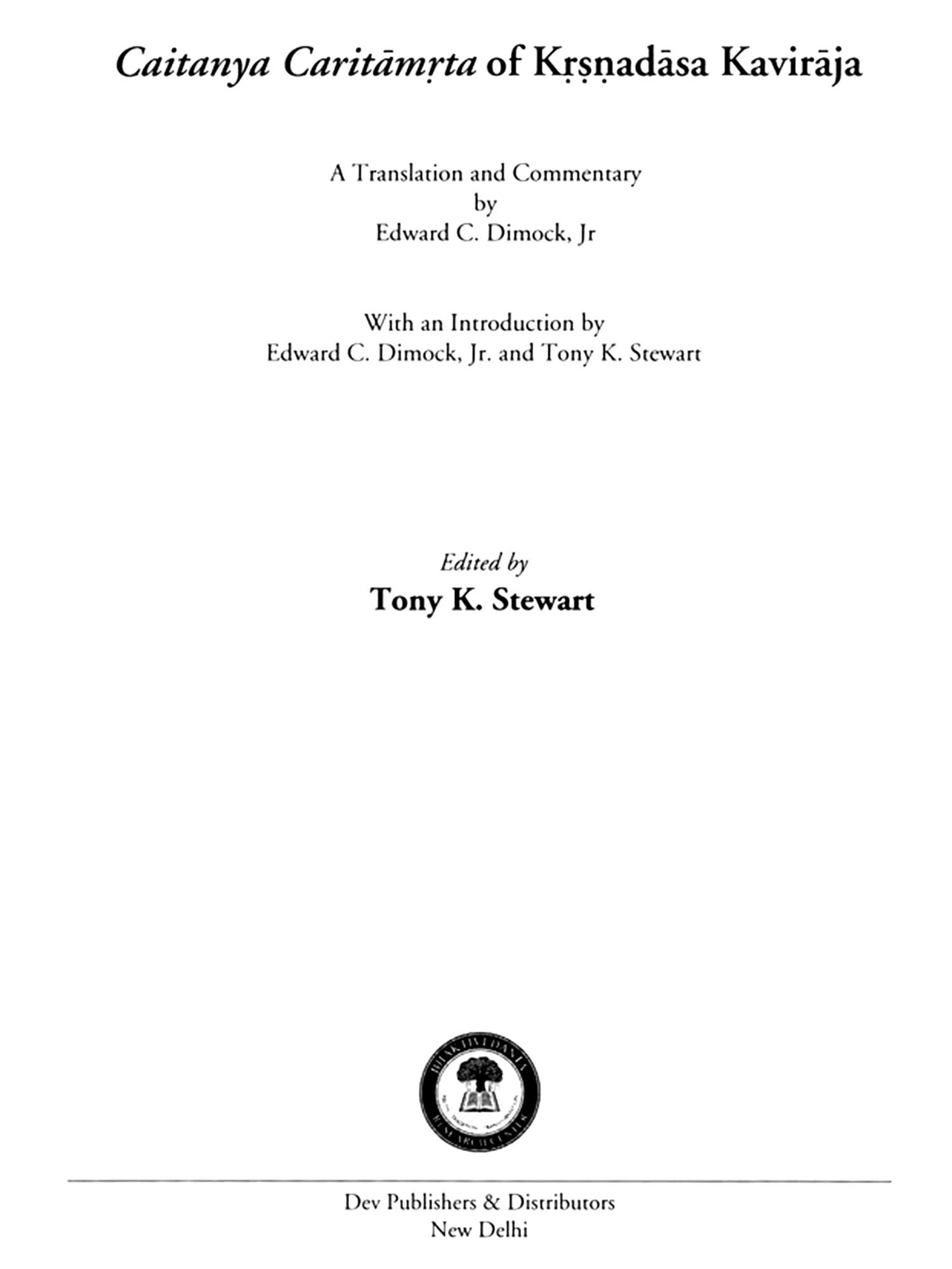 Caitanya Caritamrta of Krsnadasa Kaviraja (A Translation and Commentary)