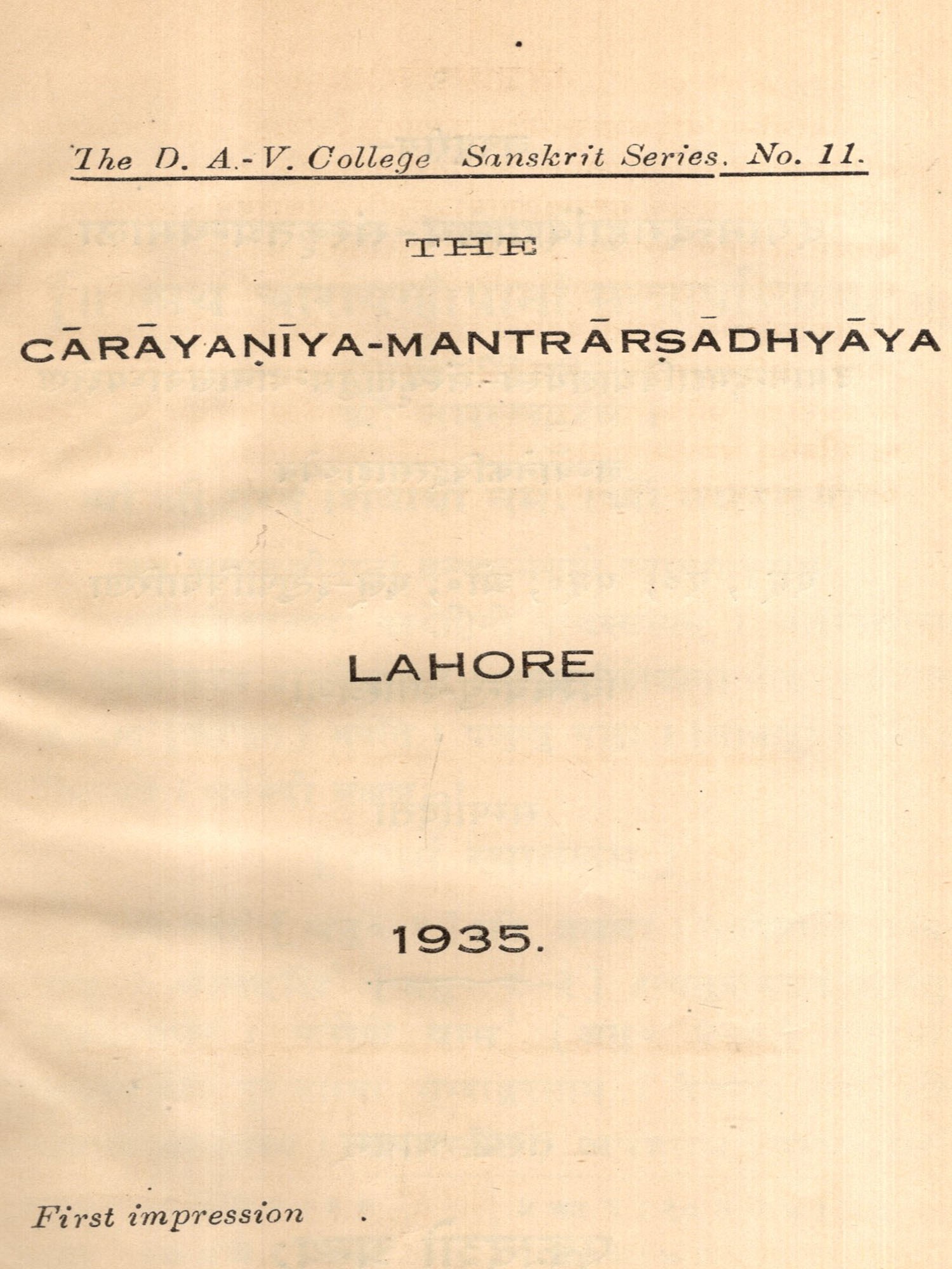 चारायणीयमन्त्राध्यिायः- The Carayaniya-Mantrarsadhyaya (An Old and Rare Book)