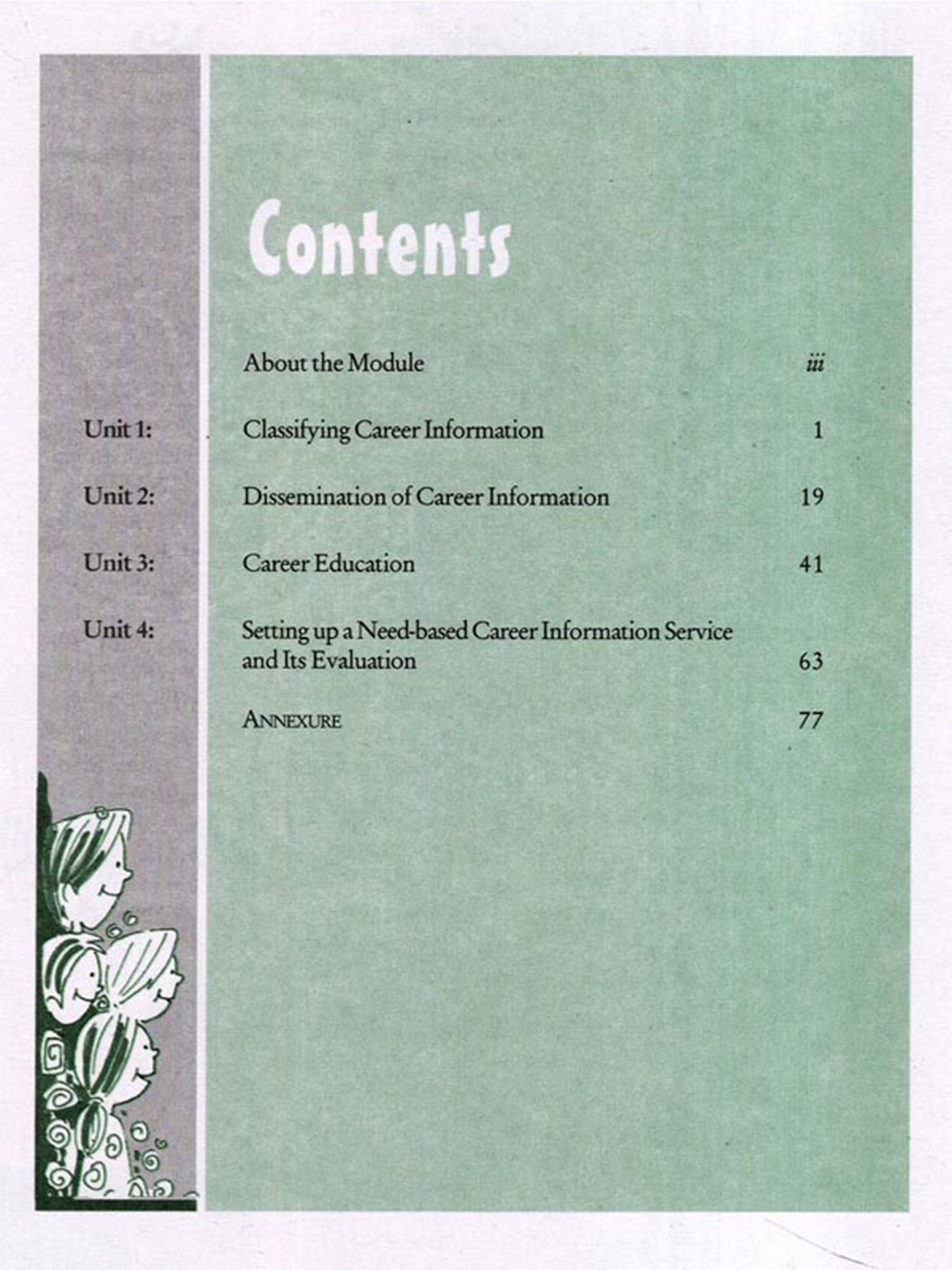 This module on Career Information in Guidance and Counselling-II is aimed to provide you an understanding of ways of organisation and dissemination of career information. The emphasis is also equipping you with the knowledge of setting up need based career information service and its evaluation which is the responsibility of the counsellor.