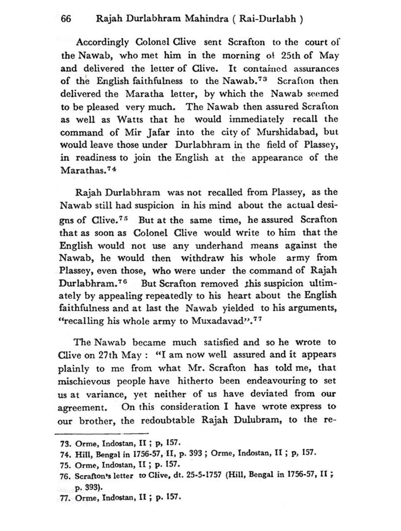 While carrying on research on the career of the Rajah, I had to face various difficulties and problems. Rajah Durlabhram was not a hero of our history like Alivardi, Siraju-ddaulah, Mir Jafar and Mir Qasim, about whom there are plenty of records both published and unpublished. Nor there was any chronicler or traveller who could supply us with the details of the Rajah. We come to know about him when he acquired prominence by becoming the Peshkar of Orissa, Int even such information was also not systematic. There were occasional references here and there to the activities of the Rajah and I had to collect all those information in order to make his career systematic. However, I have tried in my humble way to make a critical study of the career and achievements of the Rajah from the following sources: