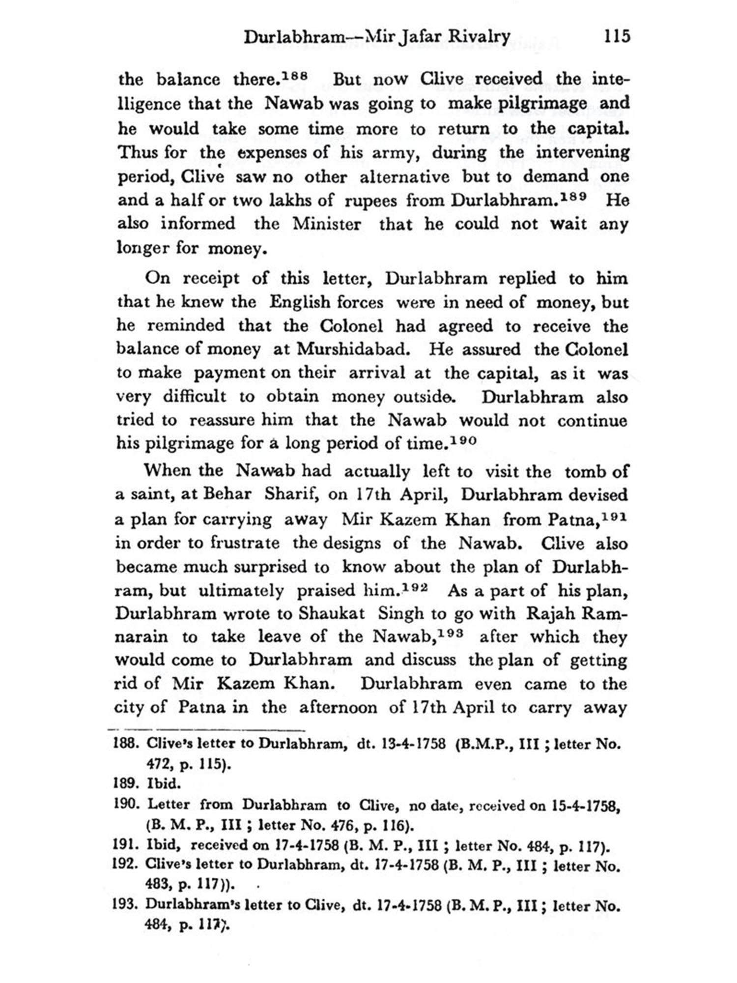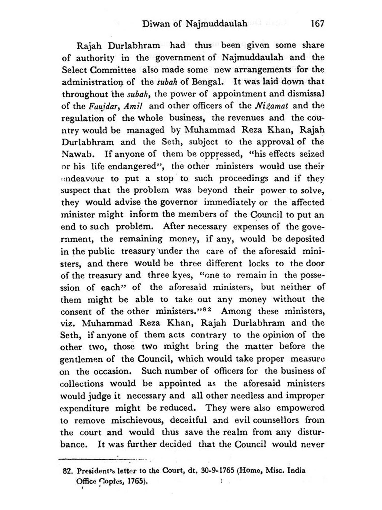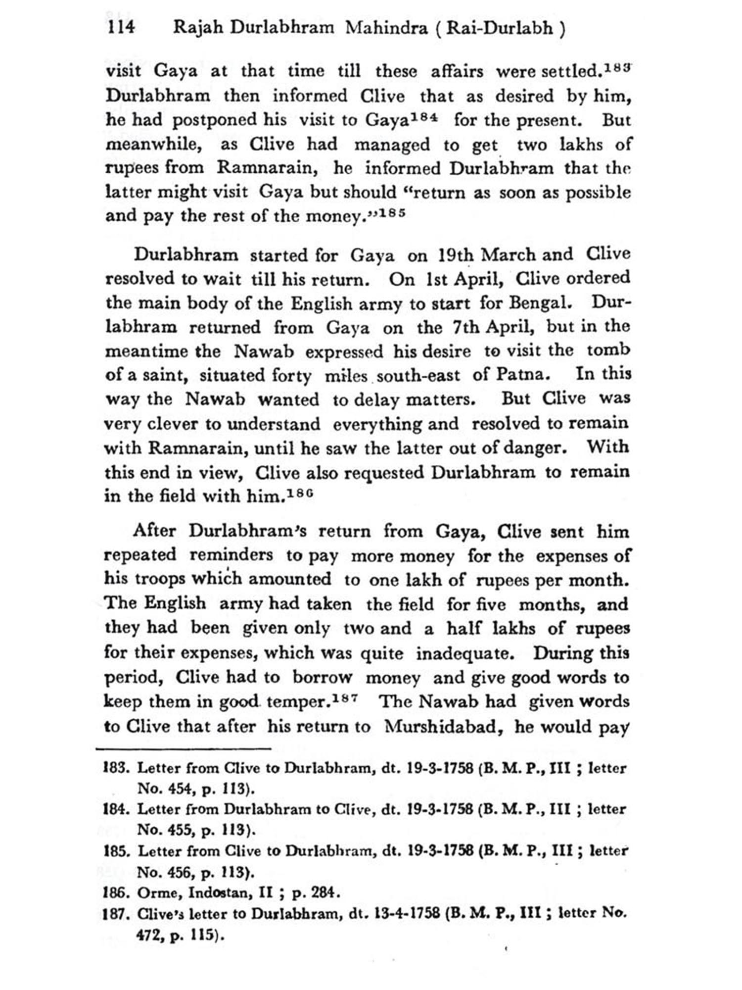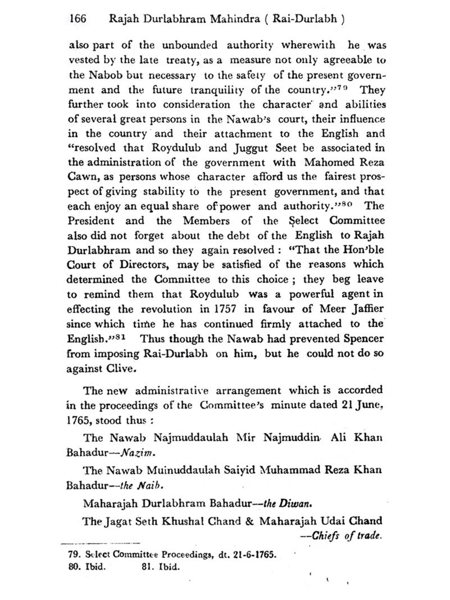As for the records of the English East India Company, some unpublished records have been brought to light by me for the first time and some published records which had been utilised by other scholars, have been used in a more systematic manner. The value of both these records is great, as they are mostly free from numerous defects. These became immensely helpful to me from the point of view of doing accurate assessment of the career of Rajah Durlabhram.