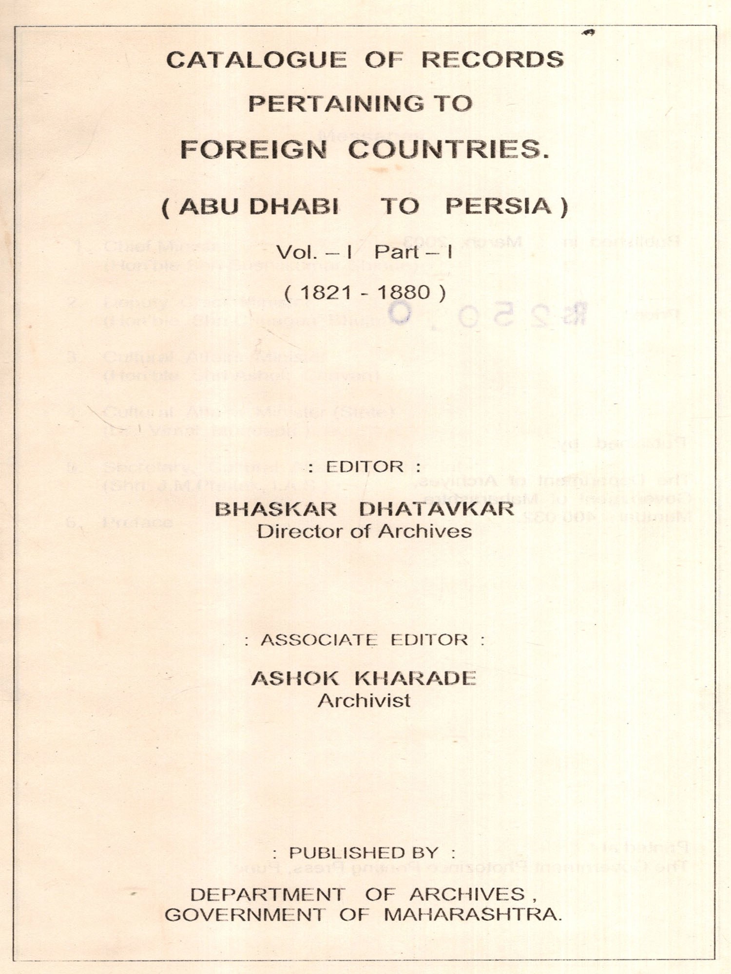 Publisher: Directorate Of Archives, Government Of Maharashtra