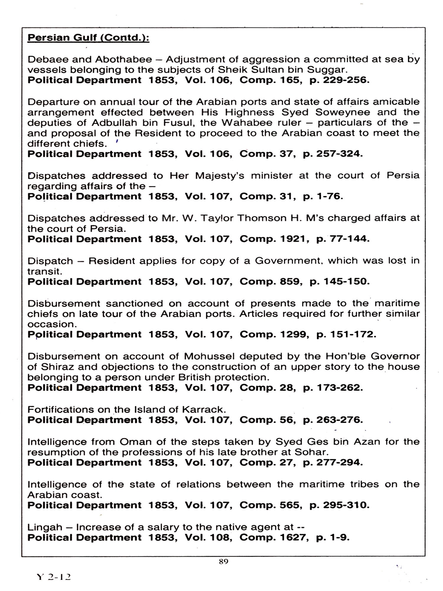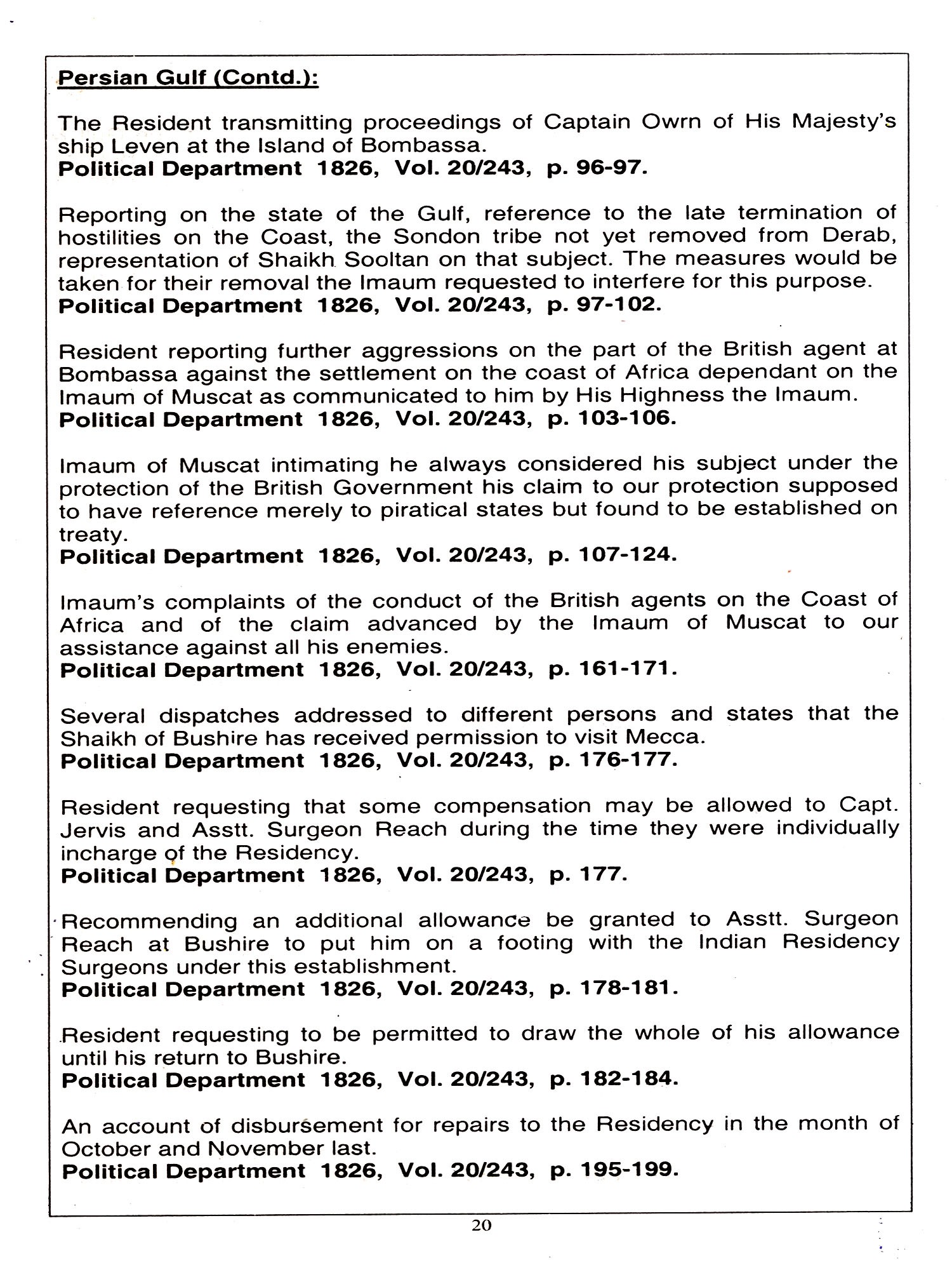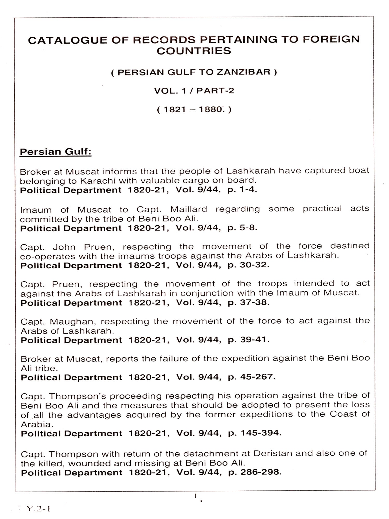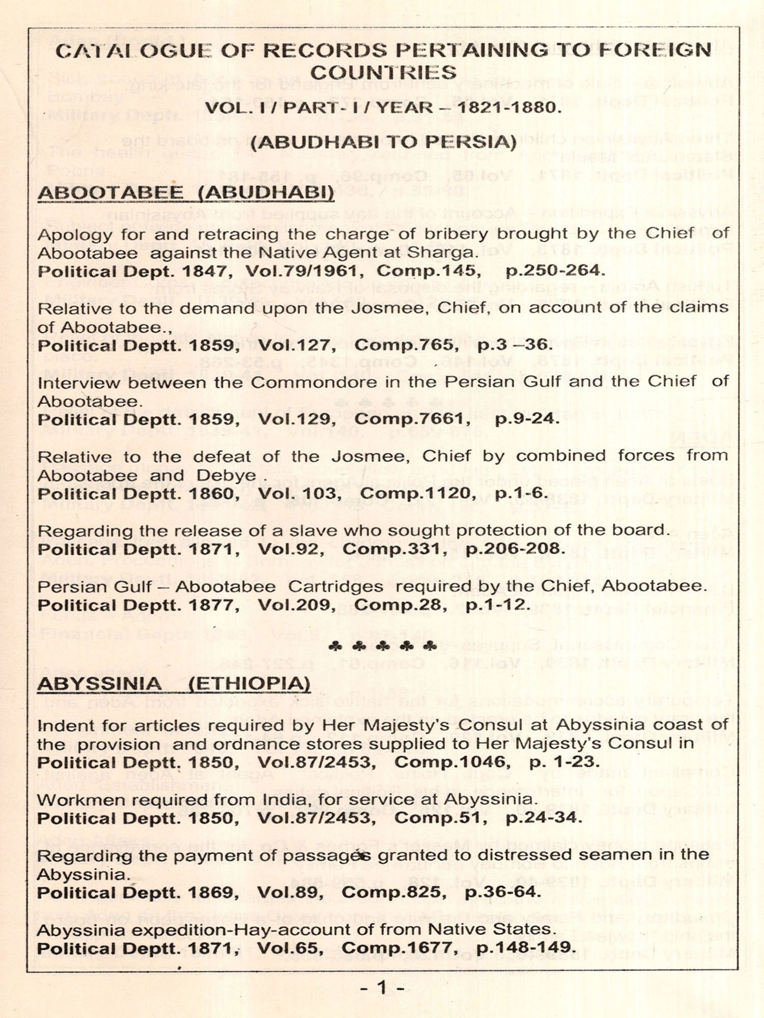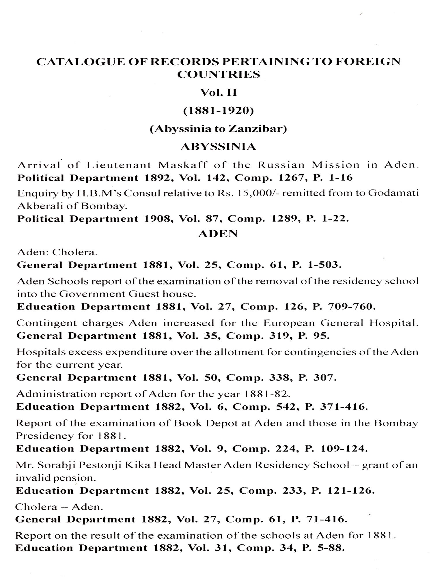 Vol-1 Part-1: Abu Dhabi to Persia Vol-1 Part-2: Persian Gulf to Zanzibar Vol-2: Abyssinia to Zanzibar