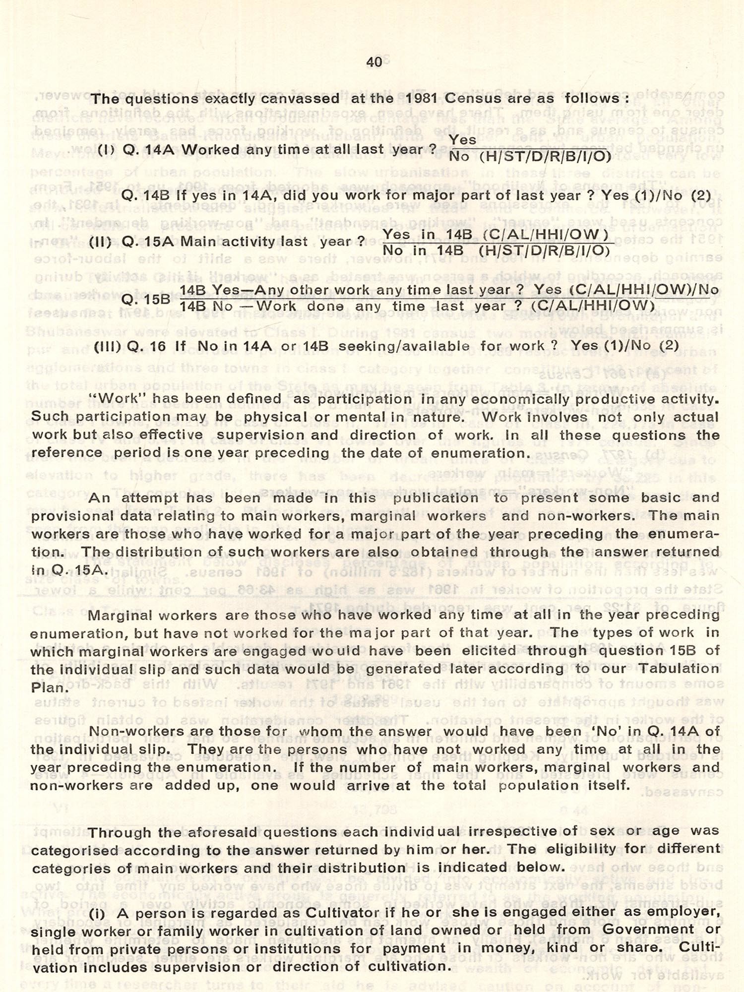 The 1981 Census enumeration was conducted during the period from 9th February to 28th February 1981, followed by a revisional round from 1st March to 5th March, 1981 with the sunrise of 1st March, 1981 as the reference moment. The enumerators counted the houseless population on the night of 28th February, 1981.
