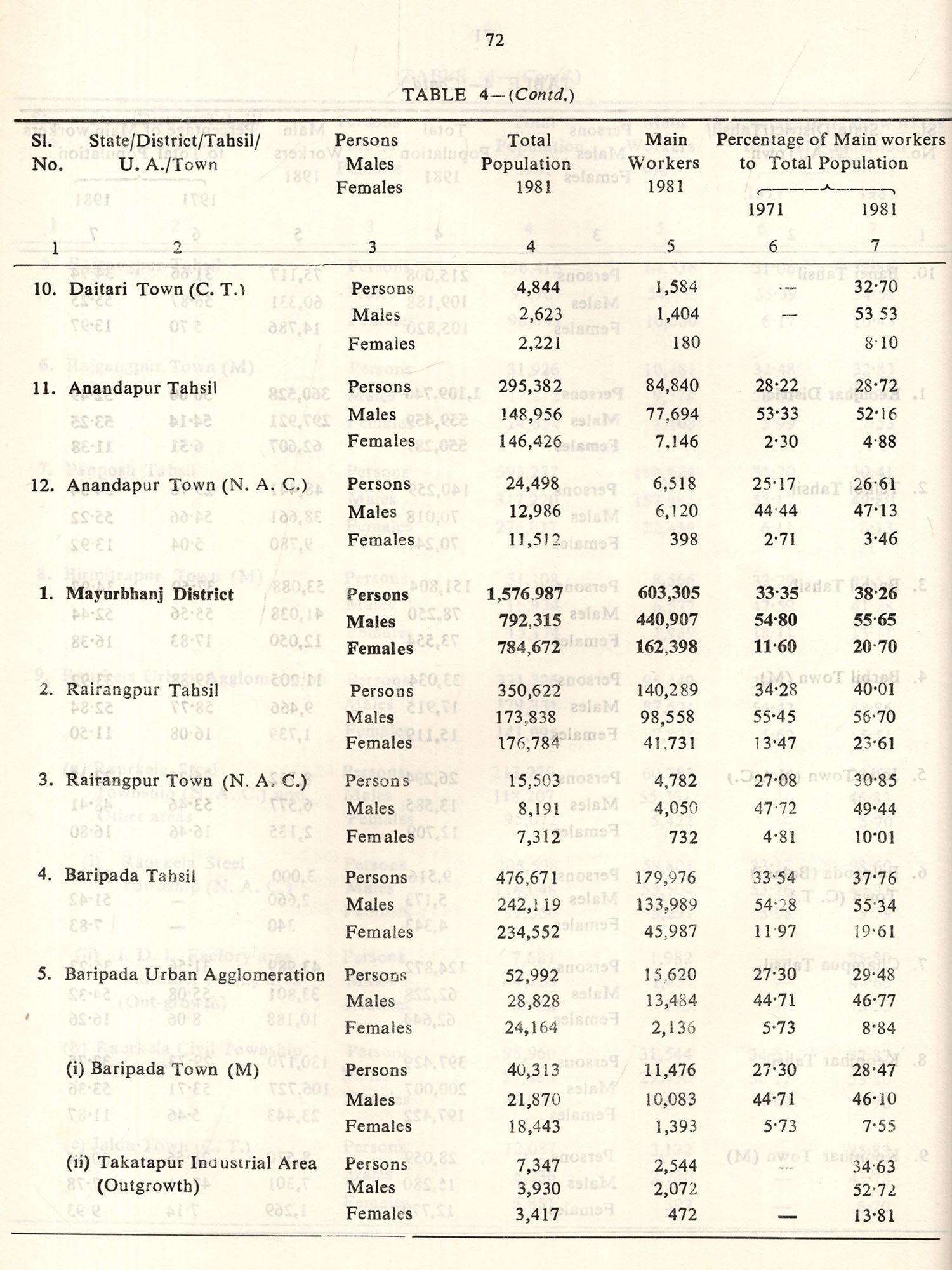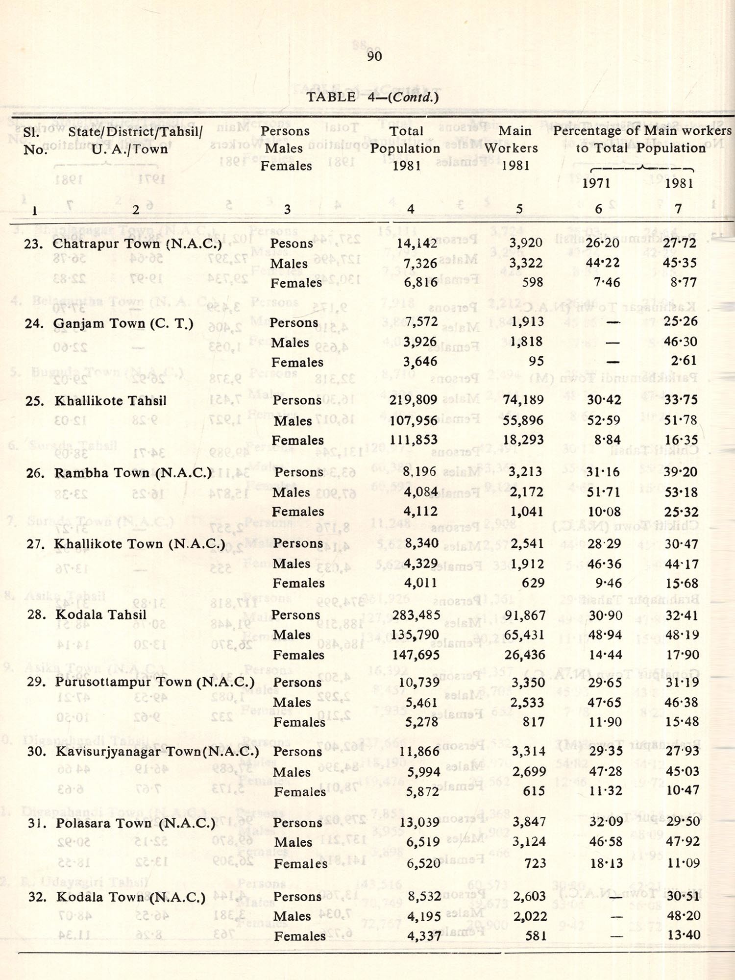 Soon after the retrieval of voluminous records from the field level functionaries available in the entire length and breadth of the State, the same were scrutinised at five Regional Tabulation Offices set up at Sambalpur, Keonjhar, Cuttack, Bhubaneswar and Berhampur round the clock. It is needless to reiterate that in a work of such colossal dimension, detailed scrutiny requires considerable length of time. However, with an anxiety to present the readers a few more details on Census up to the tahsil and town level in the state, the present publication which is a supplement to Paper-1 has been attempted. After a preliminary scrutiny in the Regional Tabulation offices, necessary data have been compiled for preparation of the next set of five tables as Indicated below: