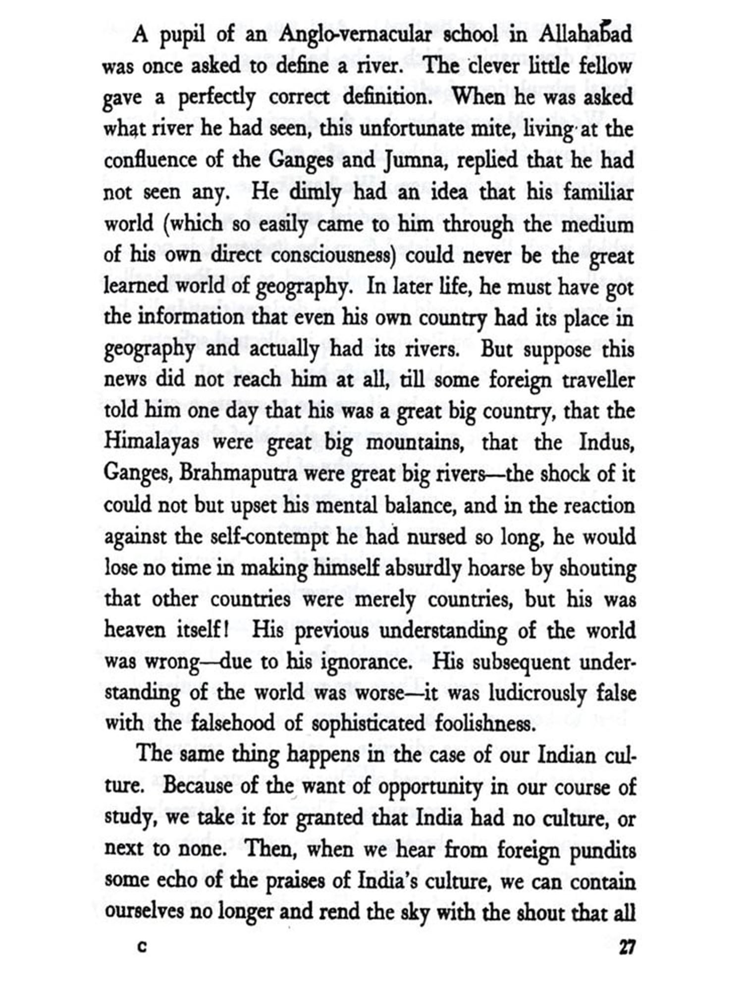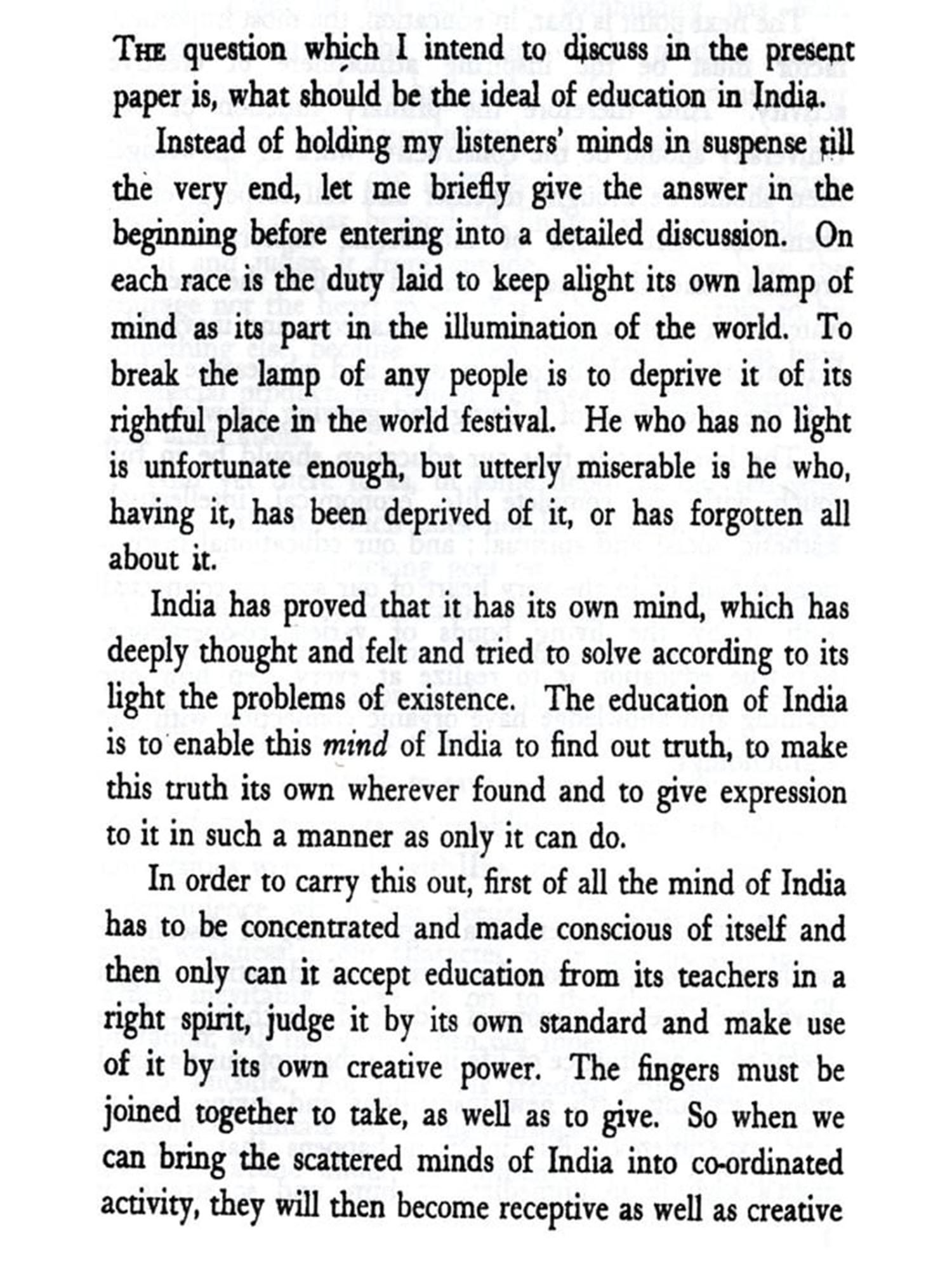 In The Centre of Indian Culture Rabindranath Tagore explores the essence of Indian civilization. emphasizing its spiritual and intellectual roots. He critiques Western materialism and its impact on India, advocating for a cultural renaissance that connects India's rich heritage with modernity. Tagore highlights the significance of inner wisdom, creativity, and unity in Indian culture, suggesting that the true center of Indian civilization lies in the pursuit of knowledge and moral integrity rather than external power or wealth. His essay calls for a balanced, self-aware approach to modernity, grounded in the timeless values of India's cultural and spiritual traditions.