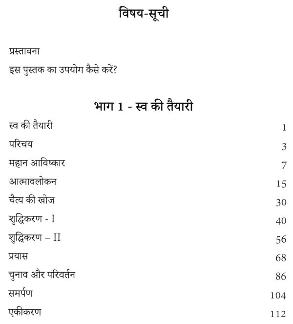 इस पुस्तक का पहला भाग उन सभी लोगों की मदद करने के लिए लिखा गया है, जो अपने दैनिक जीवन को आध्यात्मिकता से जोड़ने के लिए पहला कदम उठाना चाहते हैं। यह उन लोगों के लिए भी कुछ मददगार हो सकता है जो पहले से ही इस रास्ते पर हैं।