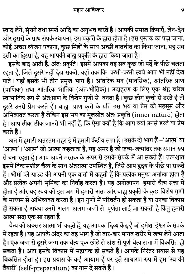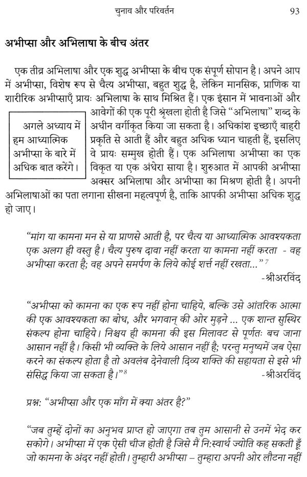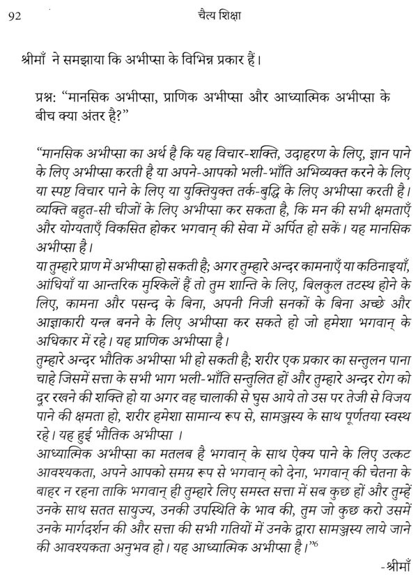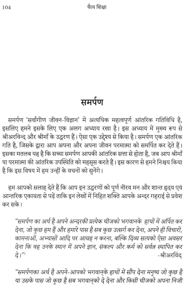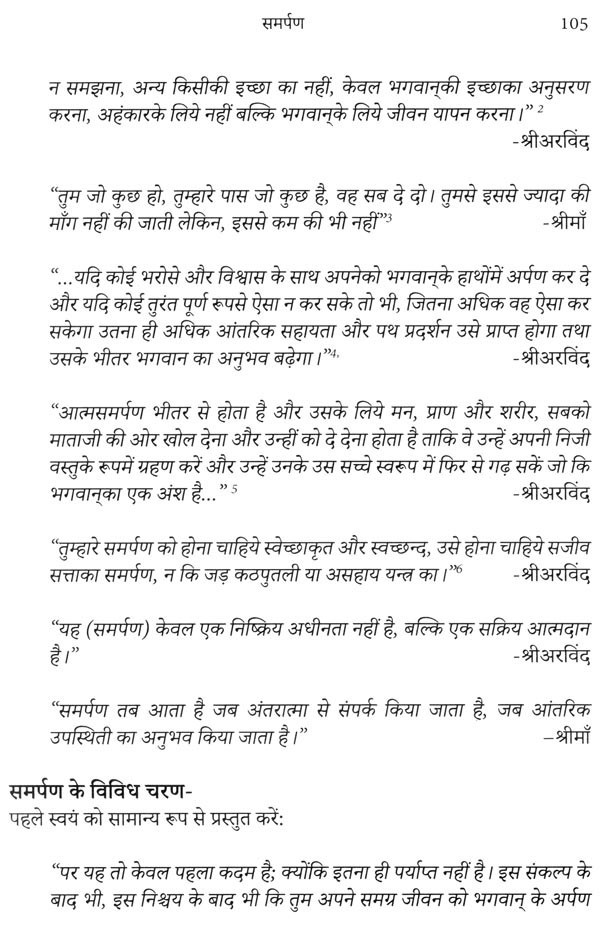 श्रीअरविन्द और श्रीमाँ के मूल लेखन में एक समृद्धि है जिसे इस तरह की एक सरल अभ्यास पुस्तिका में लाना मुश्किल है। मैं इस तथ्य से पूरी तरह परिचित हूँ कि कोई भी संकलन उनके शब्दों को संदर्भ से बाहर ले जाता है, तथा उनकी मूल गहनता और अर्थ से परे हट जाता है। इस पुस्तक को सामने लाने में यह मेरी झिझक का मुख्य कारण रहा। लेकिन अगर यह पुस्तक मील का पत्थर (stepping stone) के रूप में काम कर पाए तो इन मूल लेखनों के लिए इसका उद्देश्य पूरा हो जाएगा।