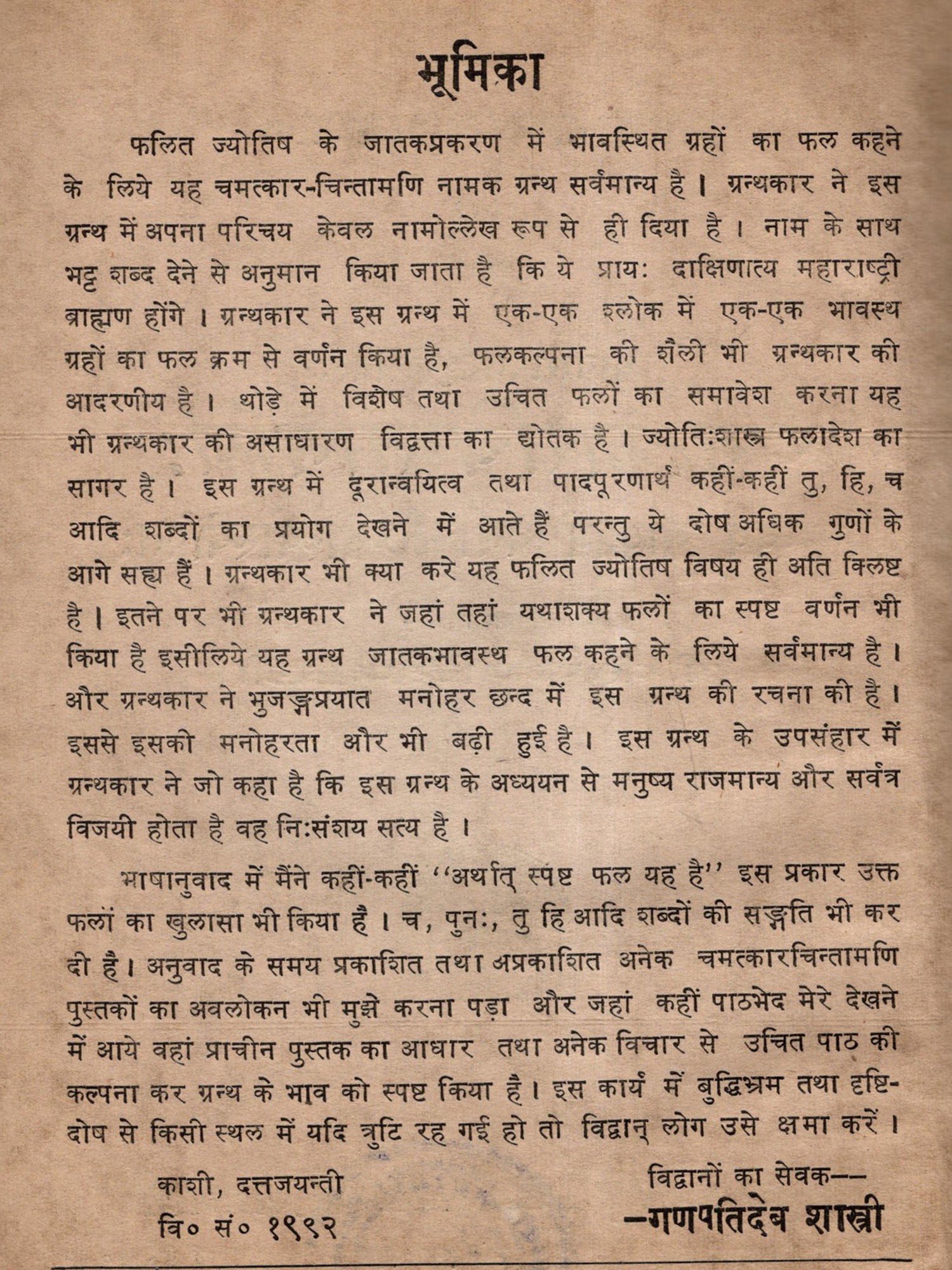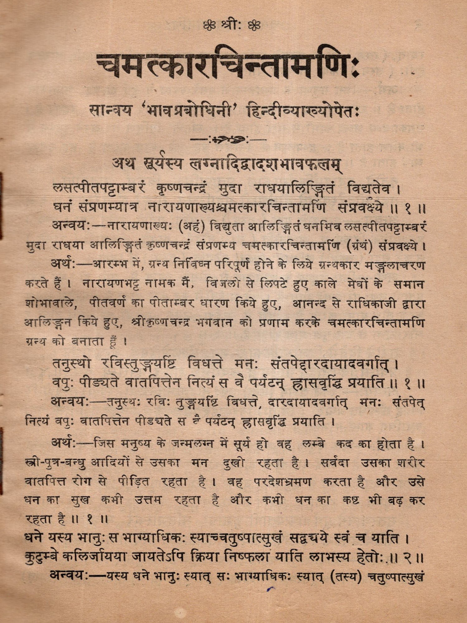 चमत्कारचिन्तामणिः: Chamatkar Chintamani- Sanvaya 'Bhavaprabodhini' with Hindi Explanation (An Old and Rare Book) Astrology Book