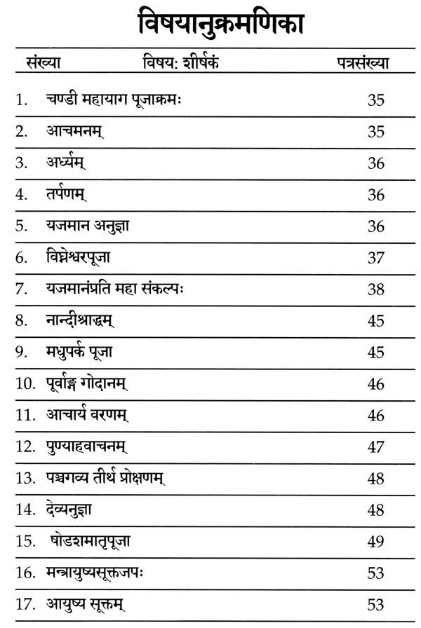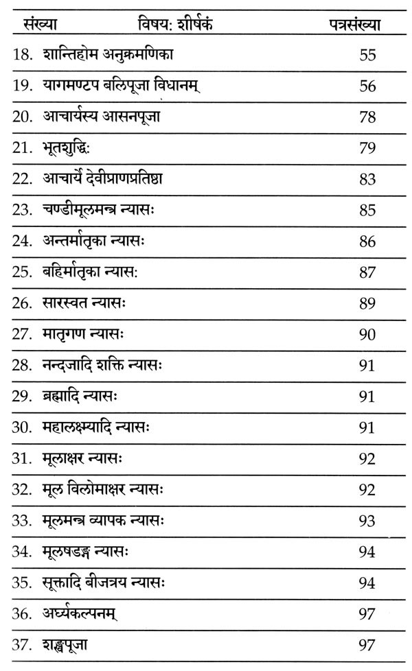 Chandi Yaga Maha Sankalpa Sixteen Mother Worship-Mantapadeva Balidan-11 Nyayas Chandi Pooja-Navavarana Pooja-Agni Karya-13 Chapter Homas- Katha Summary - Yagangavali Prakshepa-Kanyadi Preetikara Poojas Chandi Parayana Krama-with Navanga Saptashati Root-Yantrasaparya-Nine-Syllable Trishati-Five-Fold 108 Nama-Archanas-20 with Shields and Other Stotrarals