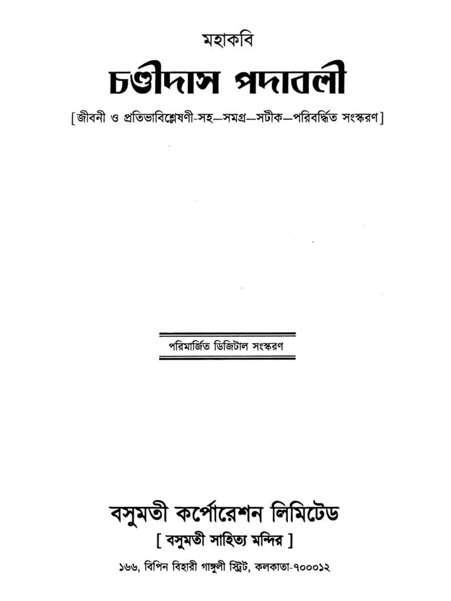 Vaishnava Padavali (An Anthology of Vaishnava Verses in Bengali)