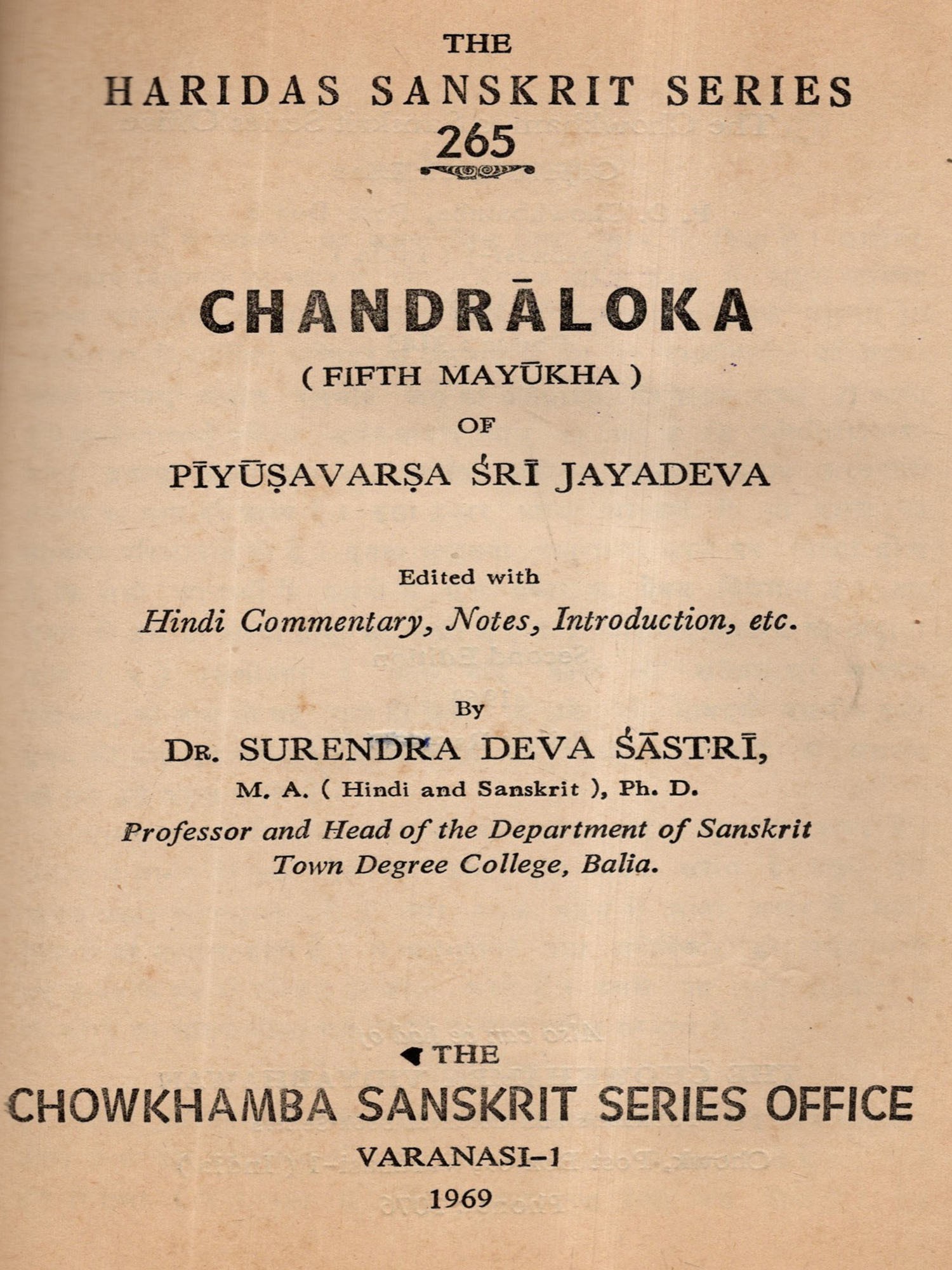 चन्द्रालोकः: Chandraloka (Fifth Maykha) of Piyusavarsa Sri Jayadeva (An Old and Rare Book)