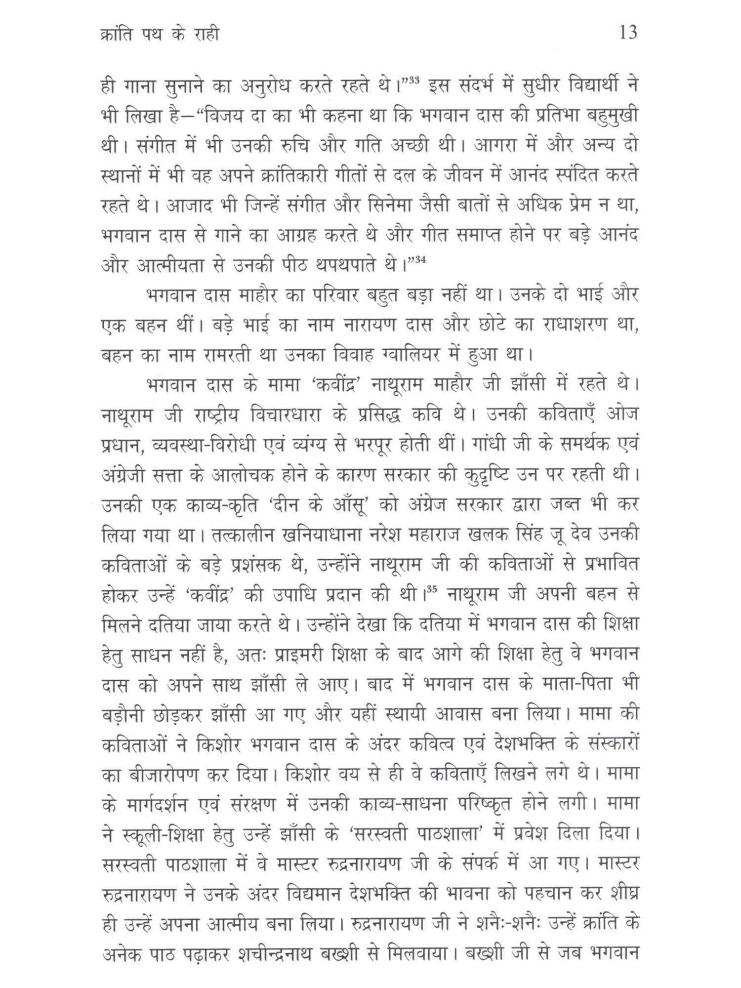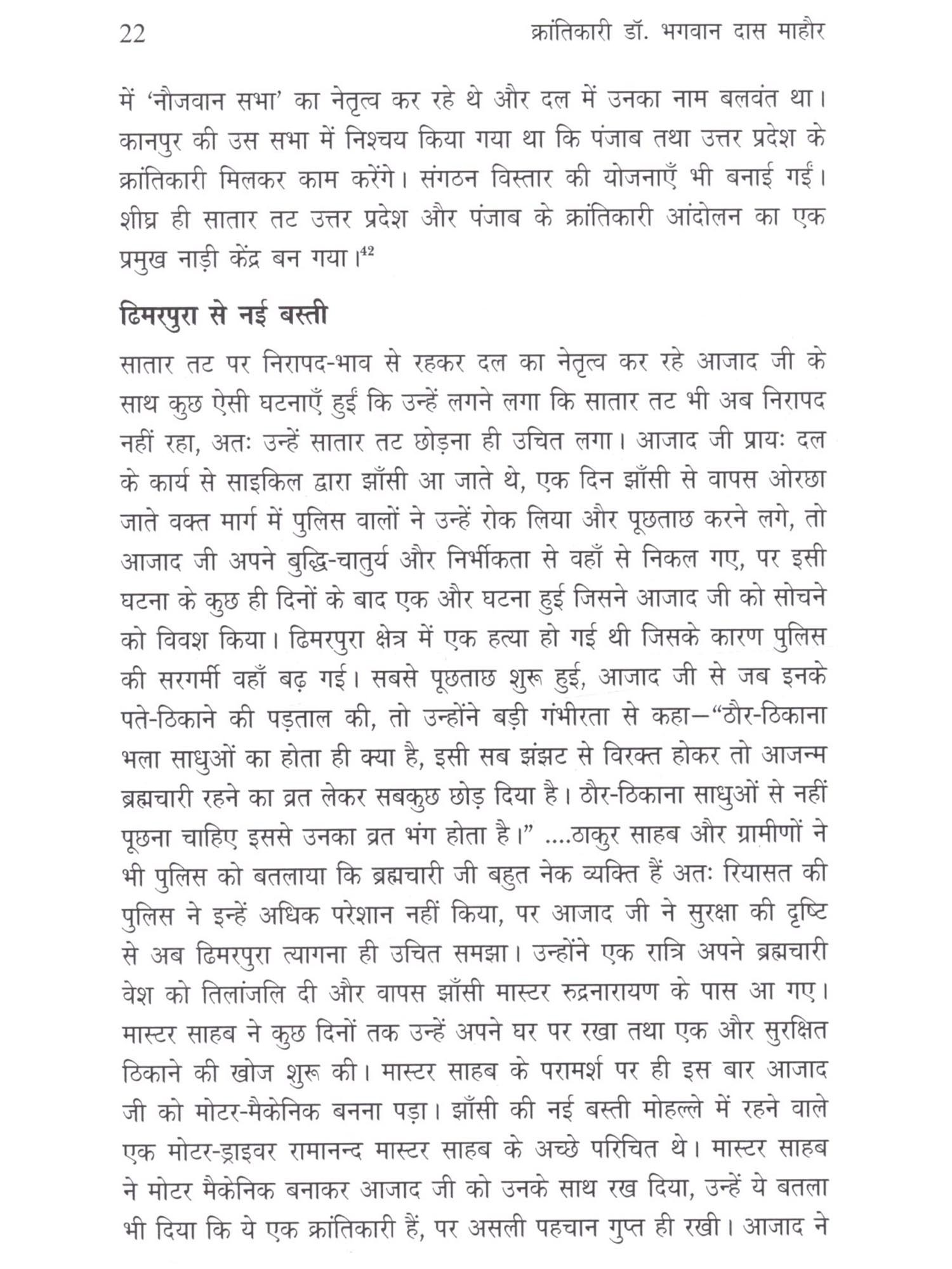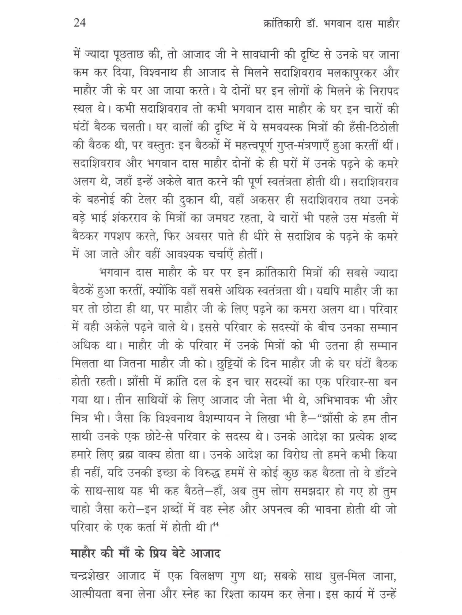 भारत के क्रांतिकारी आंदोलन में जिन नौजवानों की सक्रिय सहभागिता रही उनमें डॉ. भगवानदास माहौर का नाम भी महत्त्वपूर्ण है। क्रांतिकारी संगठन 'हिंदुस्तान रिपब्लिकन आर्मी' के अनुशासित और जुझारू सैनिक तथा चन्द्रशेखर आजाद के अत्यंत प्रिय एवं विश्वस्त साथी रहे डॉ. भगवान दास माहीर एक जुझारू क्रांतिकारी होने के साथ ही प्रगतिशील चिंतक, श्रेष्ठ साहित्यकार और अच्छे संगीतविद भी थे। अपनी किशोरावस्था में ही वे क्रांतिकारी संगठन से जुड़कर चन्द्रशेखर आजाद जी के संपर्क में आ गए और अंत तक उनके प्रिय एवं विश्वस्त सहयोगी बने रहे। अपने जीवन के लगभग 15 वर्ष उन्होंने जेल में व्यतीत किए। जेल जीवन के बाद माहौर जी ने रुकी हुई पढ़ाई जारी की और पीएच.डी. तक की उपाधि प्राप्त की।