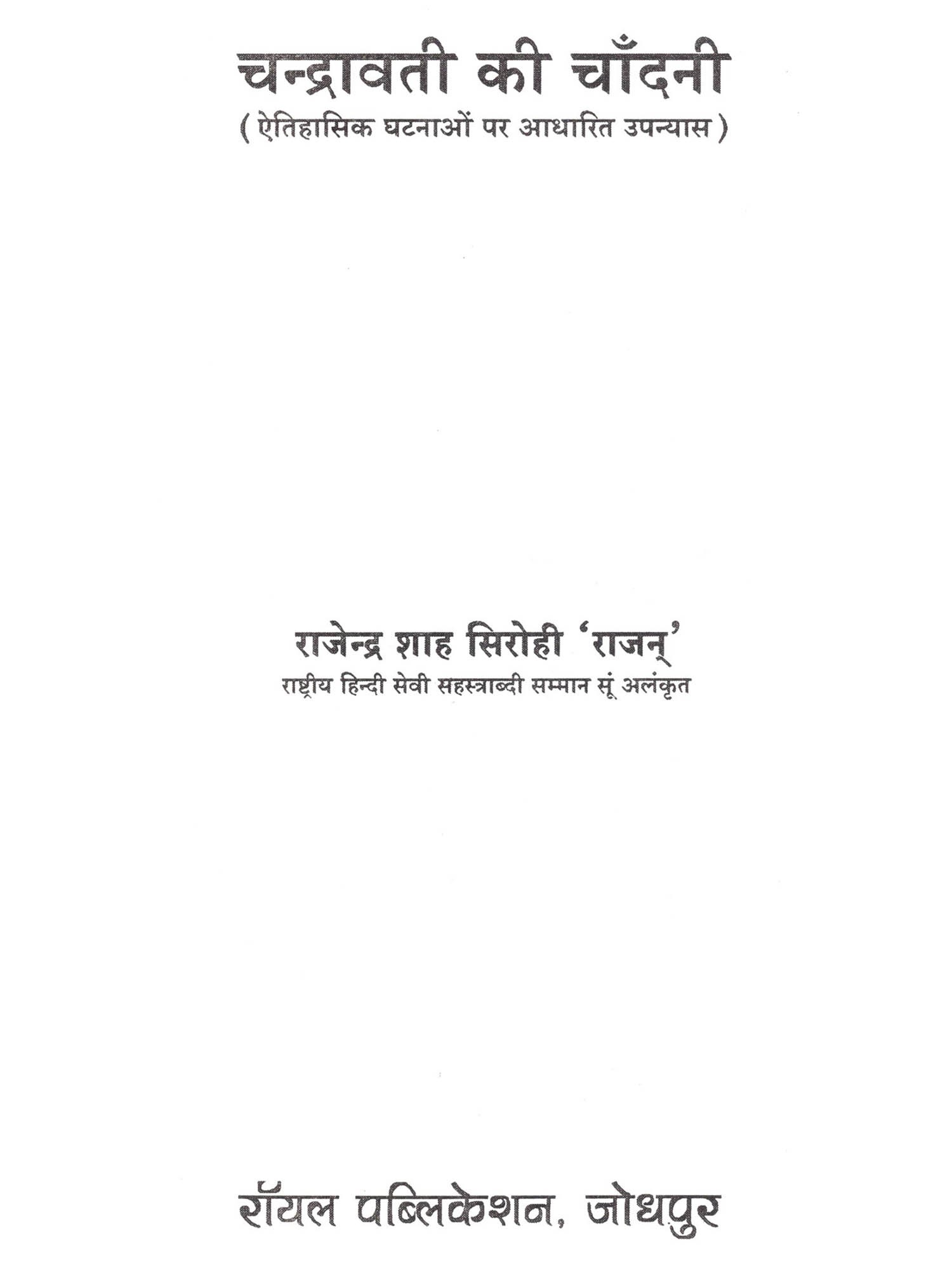 चन्द्रावती की चाँदनी (ऐतिहासिक घटनाओं पर आधारित उपन्यास): Chandravati ki Chandni (Aitihasik Ghatnaon Par Aadharit Upanyas)