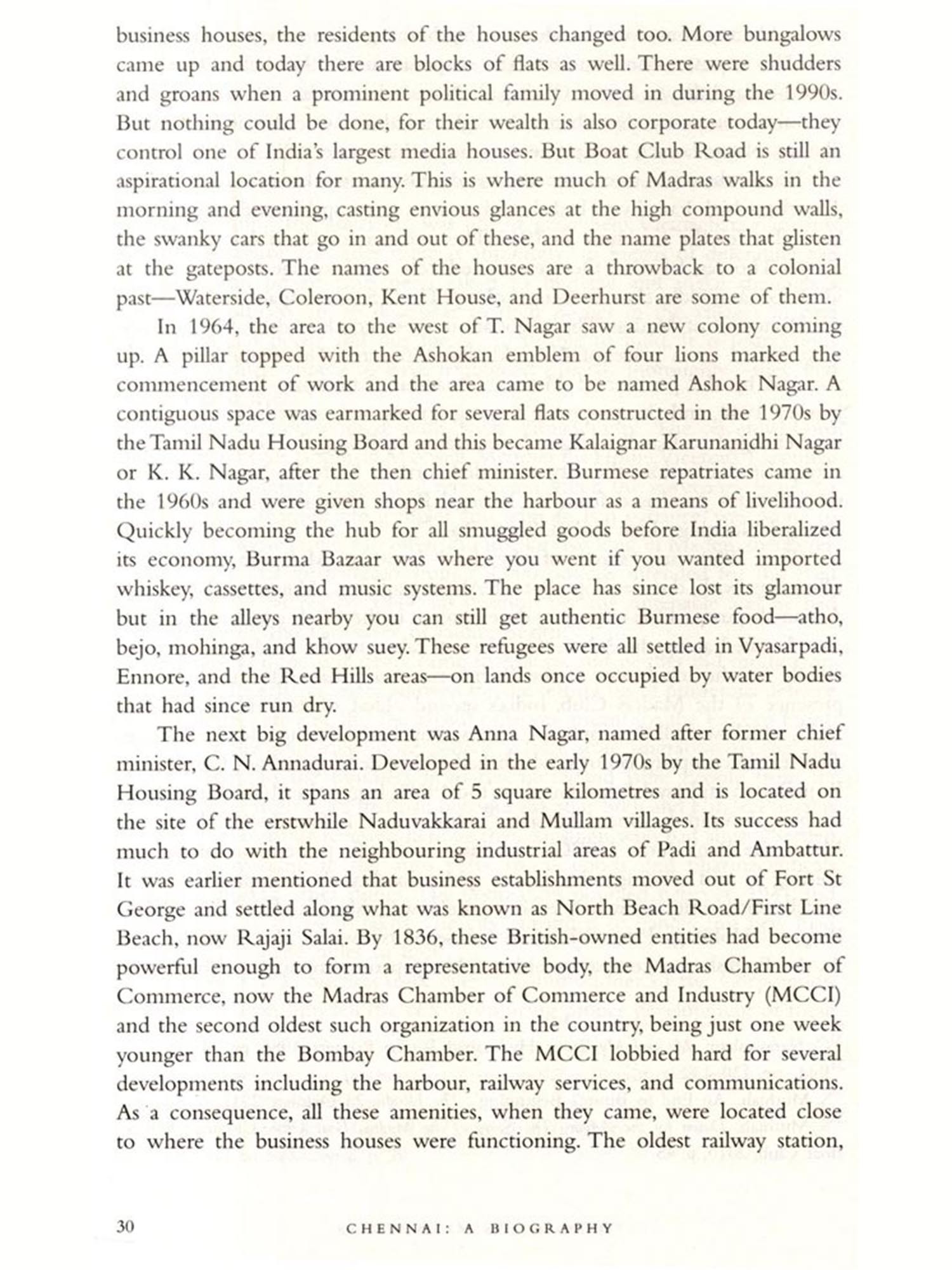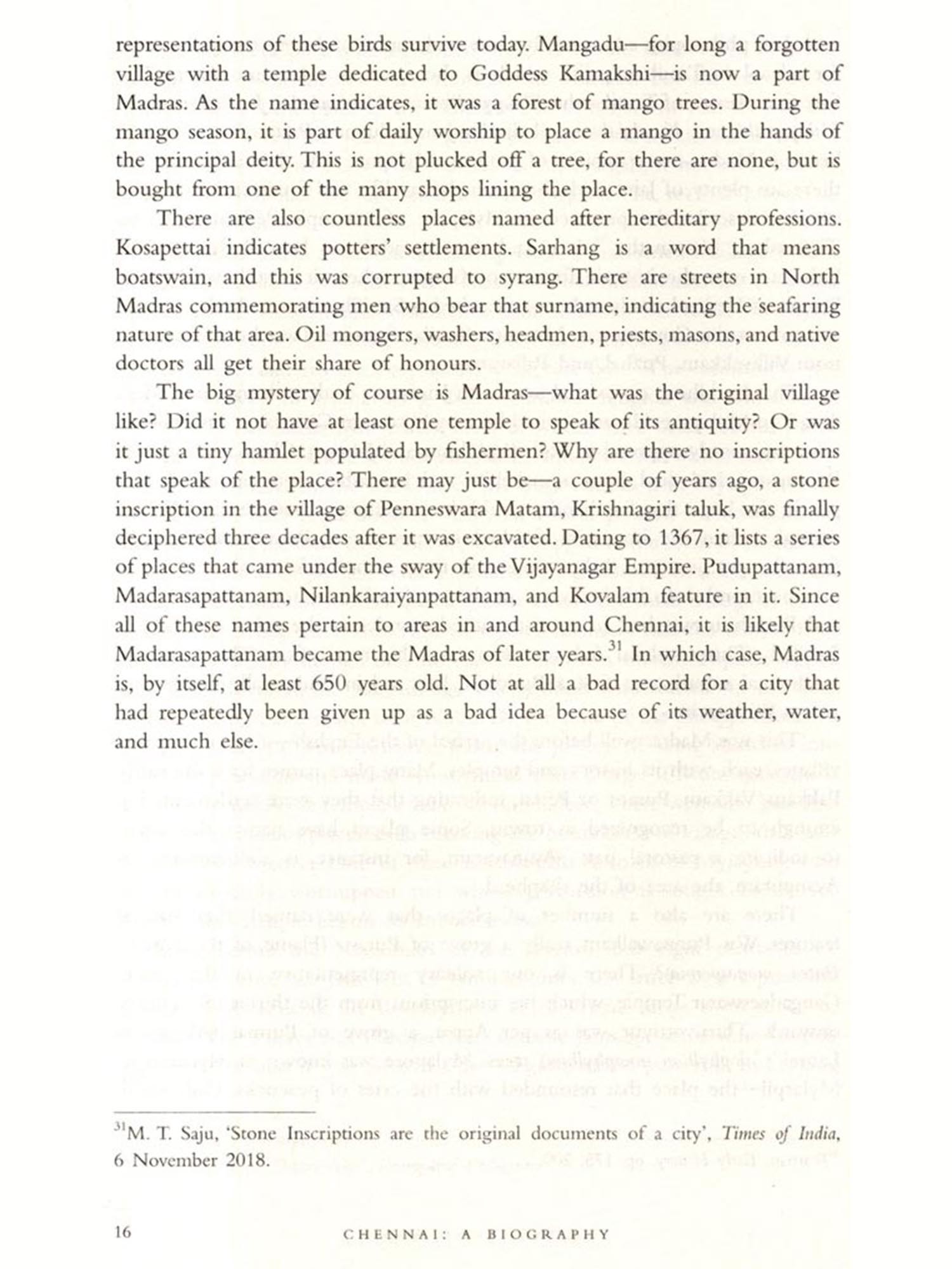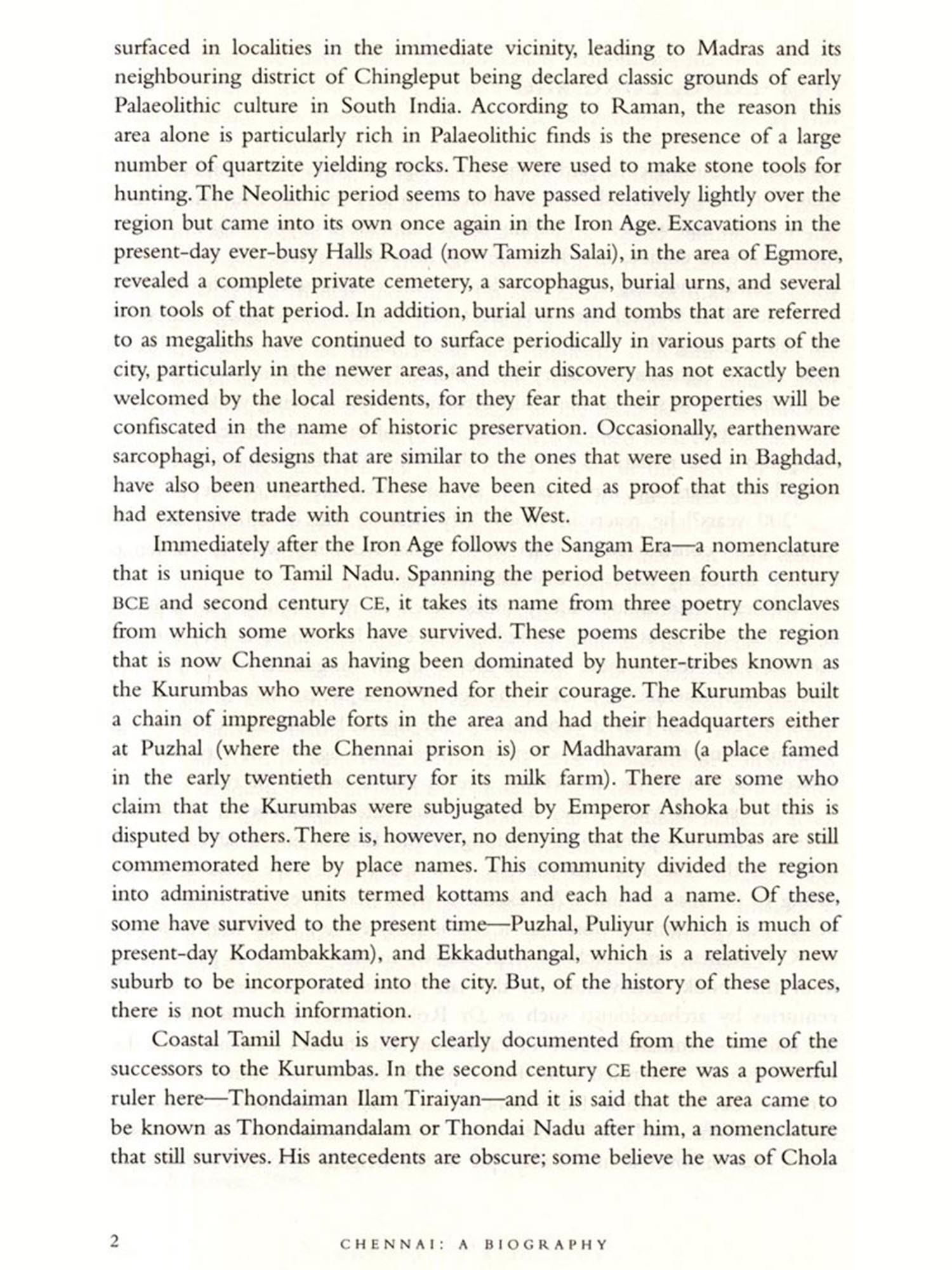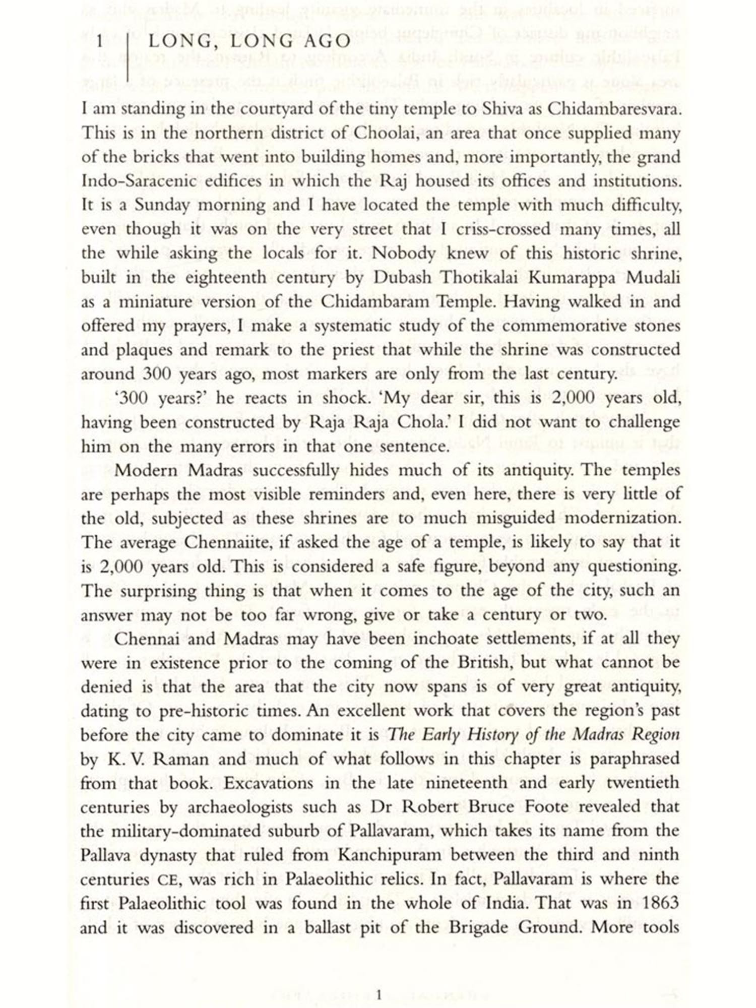Chennai that was Madras is India's southern metropolis and is considered by many to be synonymous with South India, It has the reputation of being conservative, rigid, and unexciting. Chennai too plays along, preferring to hide its history and heritage and downplaying its manifold achievements. To set the record straight, Madras has a strong claim to being the first proper city of modern India and boasts many debuts in that regard the first regiment of the Indian Army was founded here, the city saw the formation of the first urban corporation in the country, it is home to India's oldest bookshop, railway station, and lots more. It is also the city where social reformers fought for representation and equality for the most depressed classes much before such movements gained ground elsewhere in India. In short, Chennai is a city of flair, colour, creativity, and numerous distinctions. V. Sriram takes us through various aspects of the city's history from the time when it was just a set of scattered villages, through the years of the Portuguese, Dutch, and British, to the (disputed) date of founding of the modern city, the debates surrounding its two names. the institutions, systems, and structures that were built by its rulers (from the Cholas to the Vijayanagar kings to the nawabs of Arcot and the British), the Dravidian politics that came out of the Self-Respect Movement, arguments and riots over the imposition of Hindi, and a lot else besides. In addition to its history, he delves into the city's delectable food, culture, music, dance, and cinema. Rounding off this portrait, he looks at the city as a powerhouse of education, medicare, heavy engineering, automobiles, leather goods, and software. He shows us what makes Chennai a thriving city, one that effortlessly combines the old and the new, and pulses with life, energy, and opportunities-all attributes of a grand city.