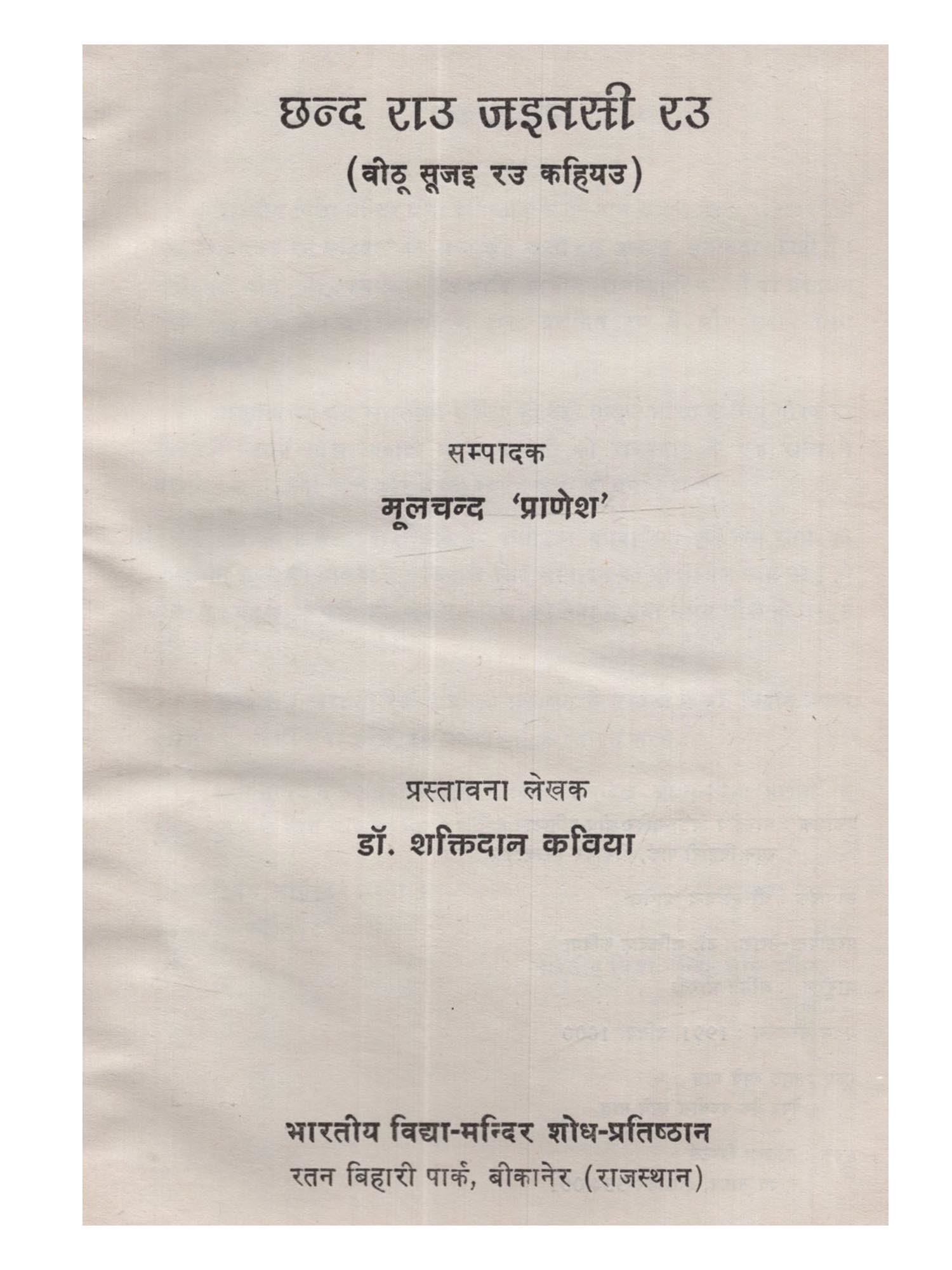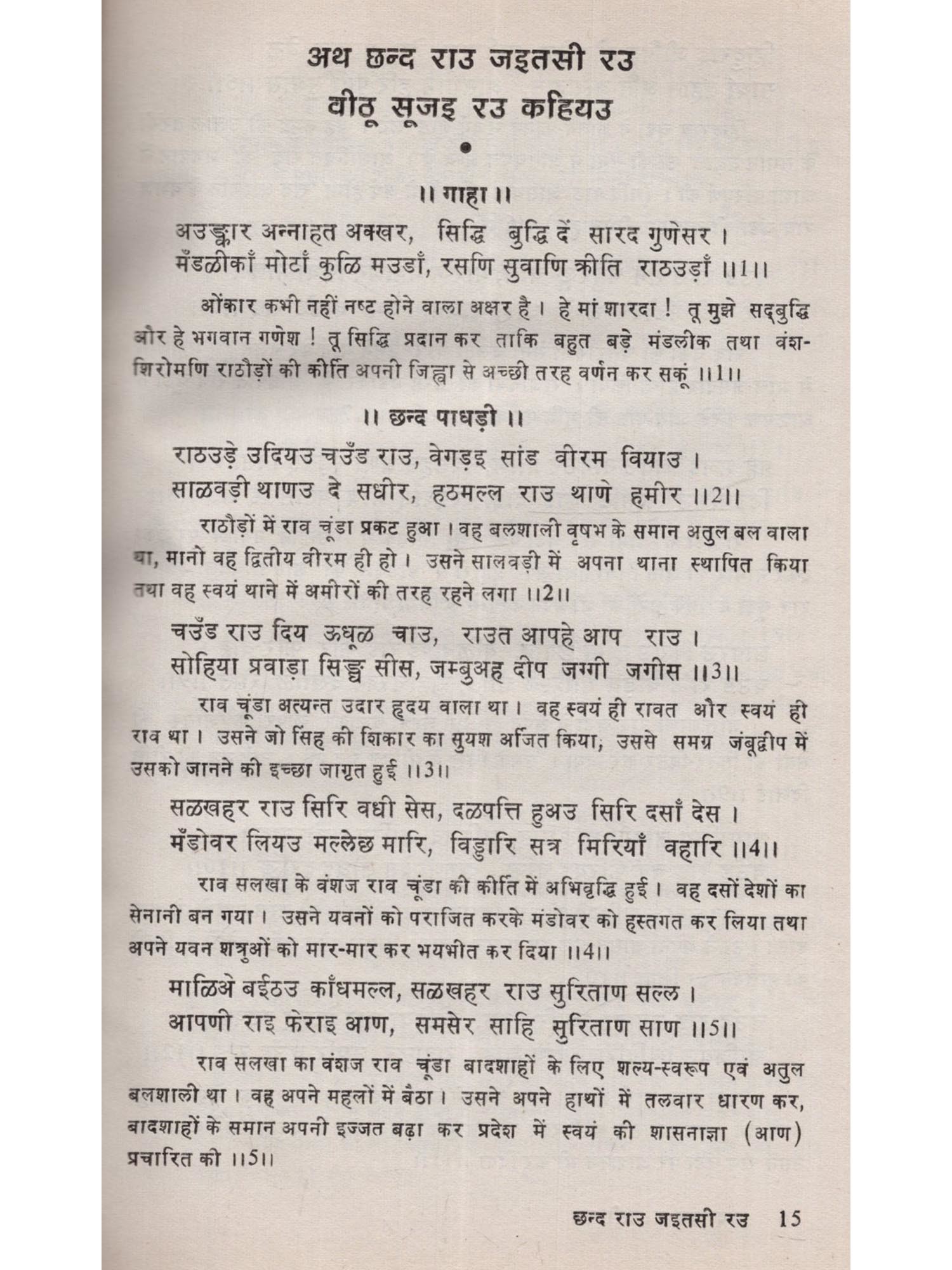 छन्द राउ जइतसी रउ (वीठू सूजइ रउ कहियउ): Chhand Rau Jaitasee Rau (Veethoo Sooji Rau Kahiyu in Rajasthani)