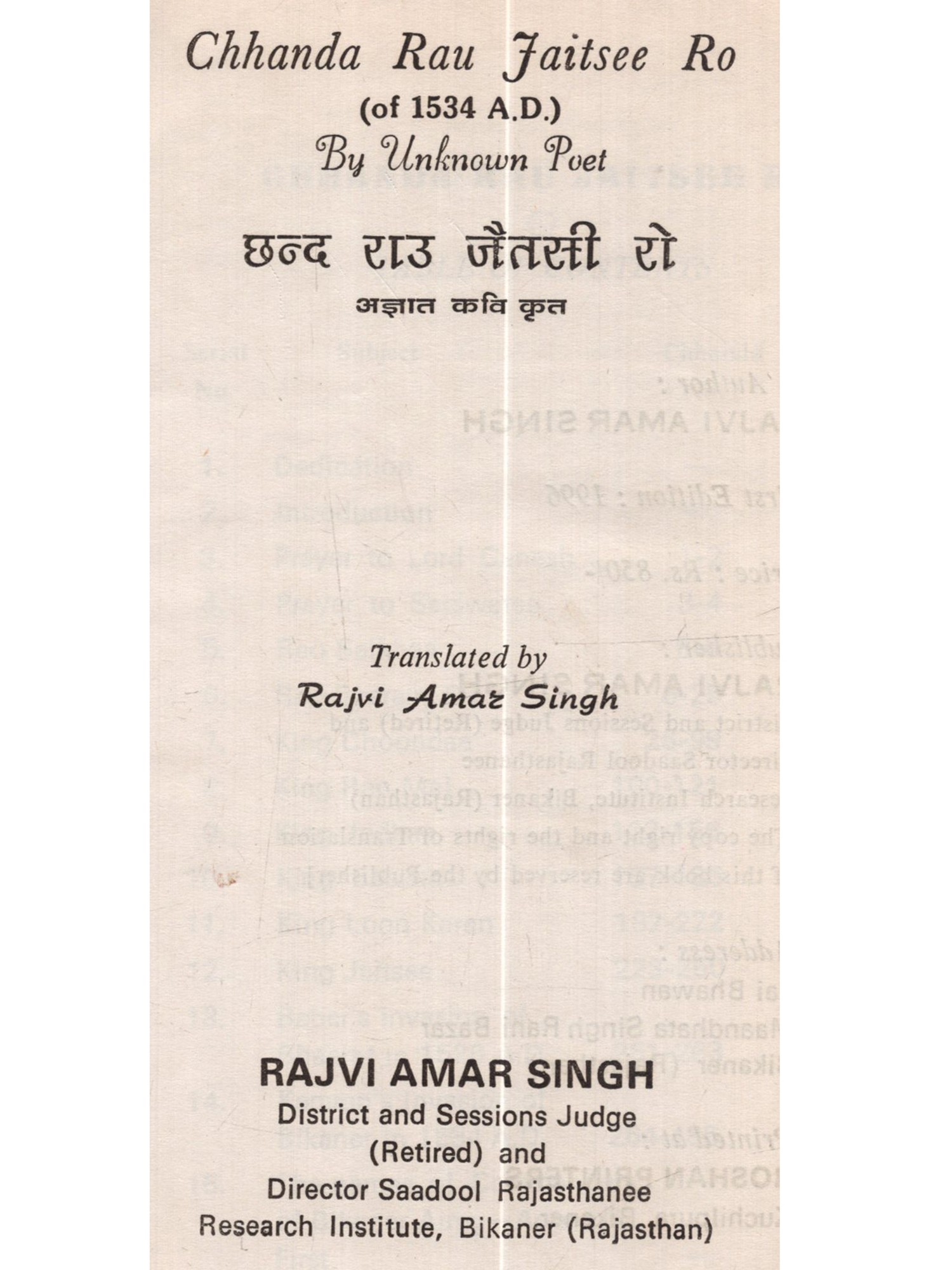 Publisher: Rajvi Amar Singh, Bikaner