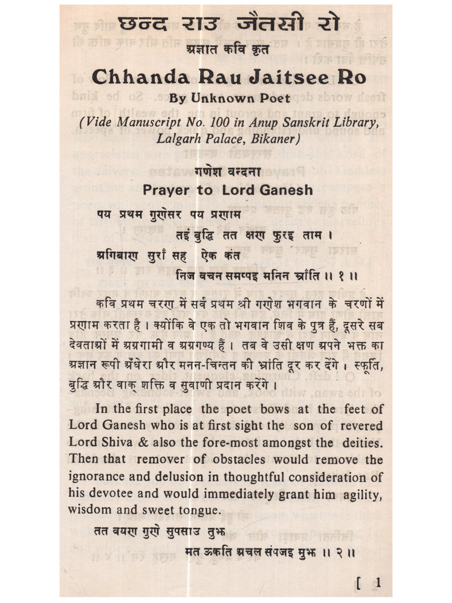 छन्द राउ जैतसी रो अज्ञात कवि कृत: Chhanda Rau Jaitsee Ro (of 1534 A.D.) By Unknown Poet (An Old and Rare Book)