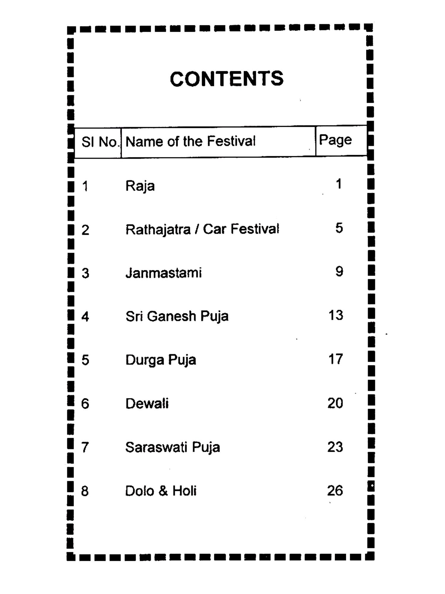 IIWBS The writer has given introduction to the topic how the ceremony is practised, the value of the function and conclusion. Its of much use for one and all. The author has chosen a limited 'festivals of Odisha' for the First hand knowledge of children.