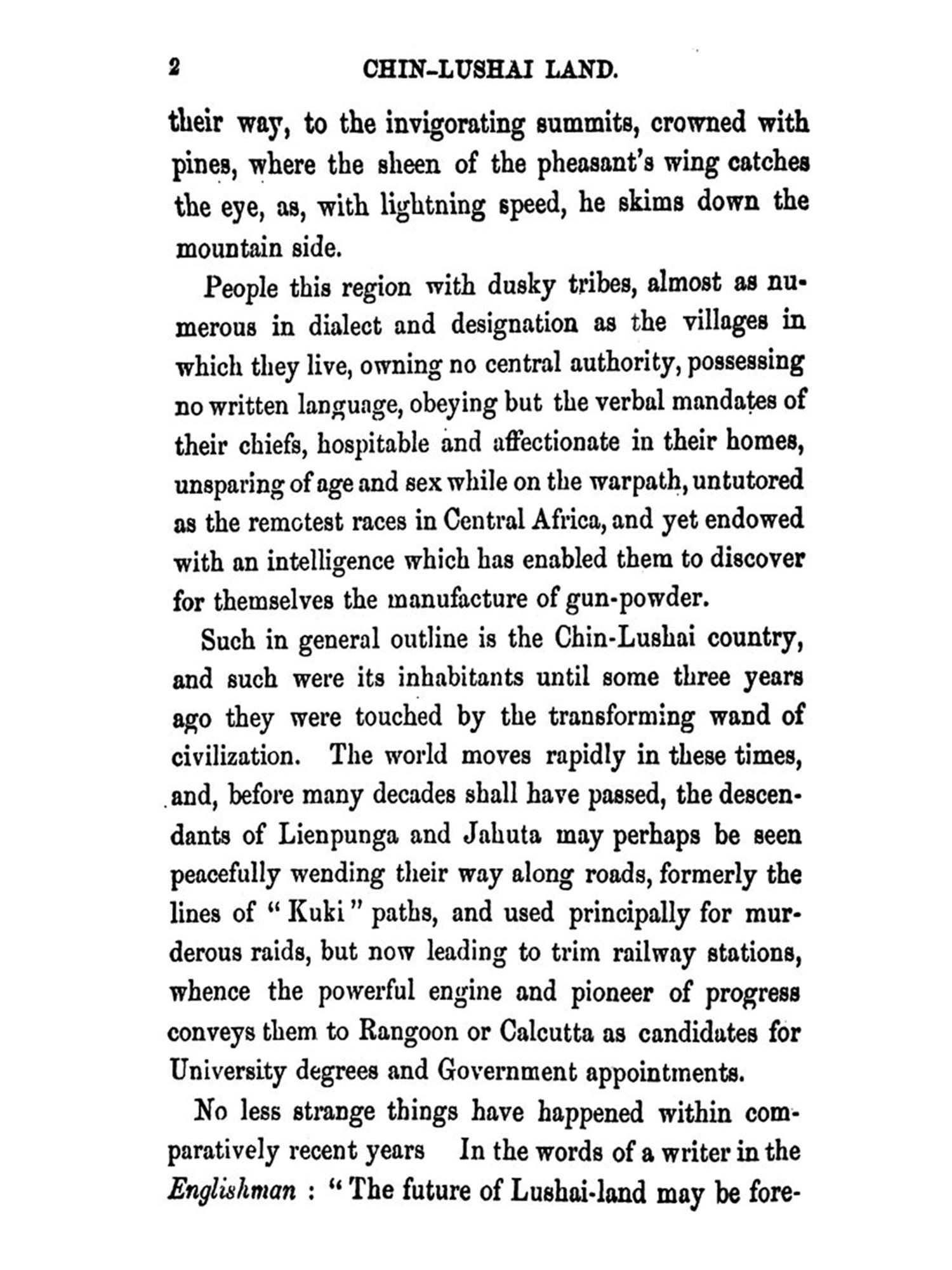 The book is a detailed account of the author's travels and experiences in the Chin-Lushai region of Northeast India. The book offers a comprehensive description of the geography, topography, and climate of the region, as well as the customs, traditions, and culture of the people who live there. The author provides an in-depth analysis of the various tribes that inhabit the region, including the Kukis, Lushais, and Nagas. He also describes their religious beliefs, social organization, and political systems. The book covers a range of topics, including hunting, agriculture, and the natural resources of the region. Chin-Lushai Land is a valuable historical document that sheds light on the colonial period in India and the interactions between the British and the indigenous tribes of the region.
