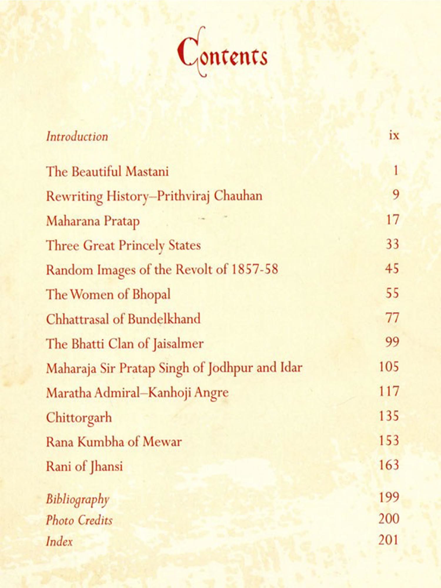 These stories of chivalry and romance that cover several centuries are based both on history and the epic poetry of the great bards. Great literature enhances the appeal of history and the bards gave complete freedom to their fervid, imaginative verse about war, bravery, love, great deeds, glory, sacrifice and death. The historical events and bardic legends in these vignettes relate generally to Rajasthan, central and western India, but some cover a larger geographical canvas of the country. In this saga of the heroic men of history and legends, which often converge, you also meet fascinating women like the Rani of Jhansi, the beautiful Mastani and the Ranis and Begums of Bhopal. The author's approach in this book makes us revisit the turning points in Indian history that add to our rich heritage and culture.