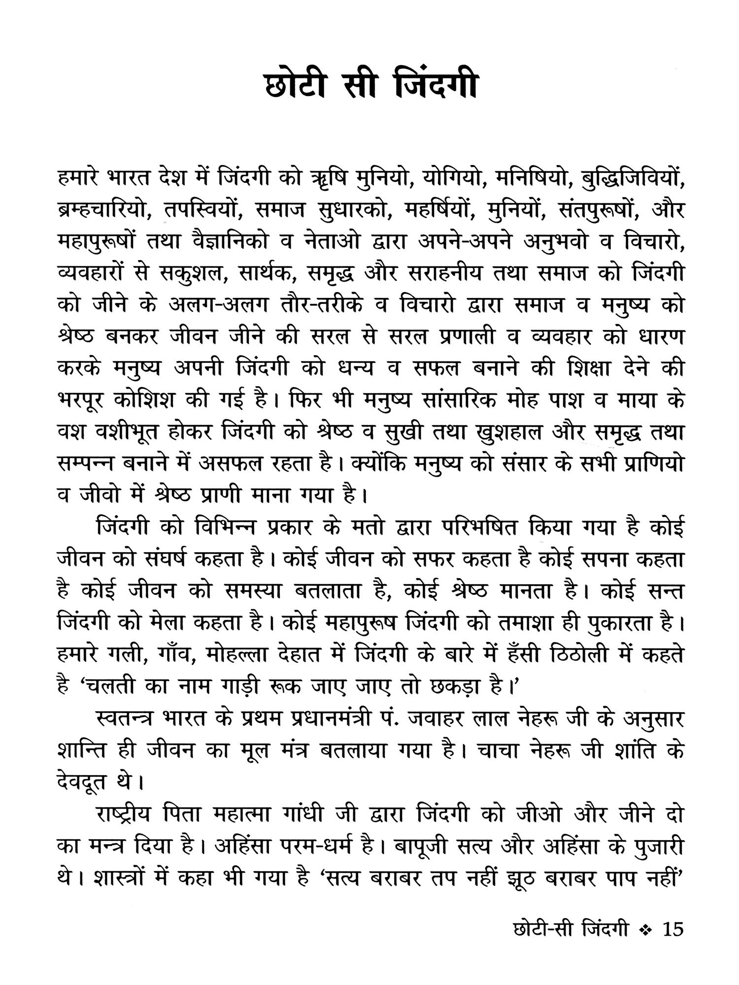 श्रेष्ठ मनुष्य को दुर्व्यसनों का त्यागकर शील गुणों को अपने जीवन में धारण करके इस "छोटी सी जिंदगी” को बड़े ही स्नेह व प्यार से सहयोग व मेल-मिलाप तथा आपस में भाई-चारे के साथ जीना चाहिये।