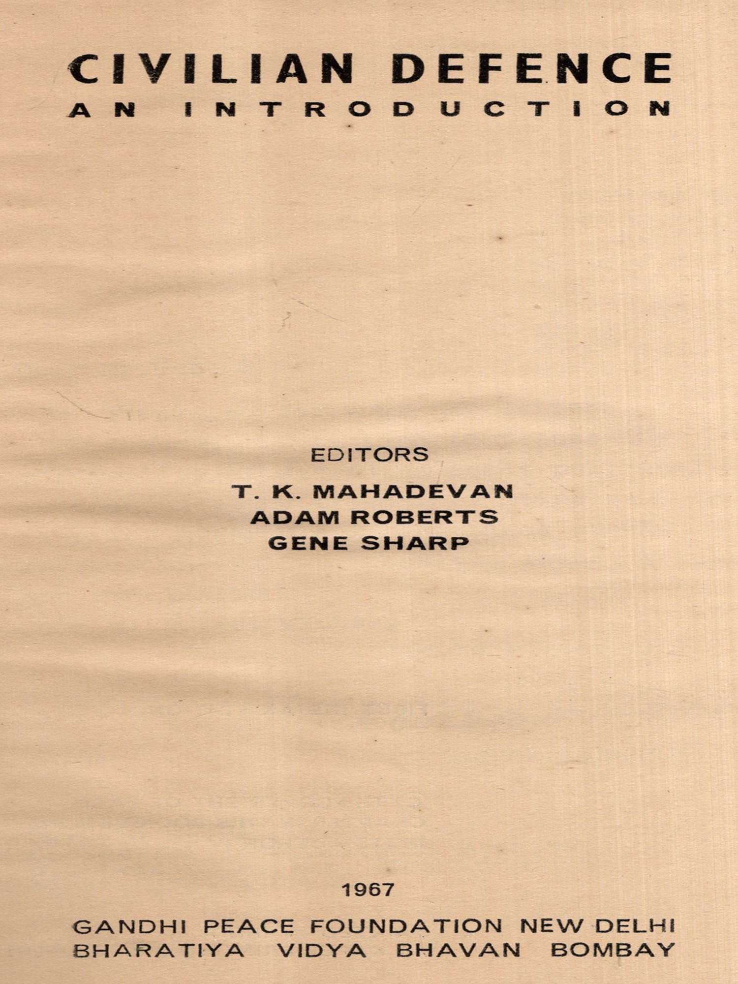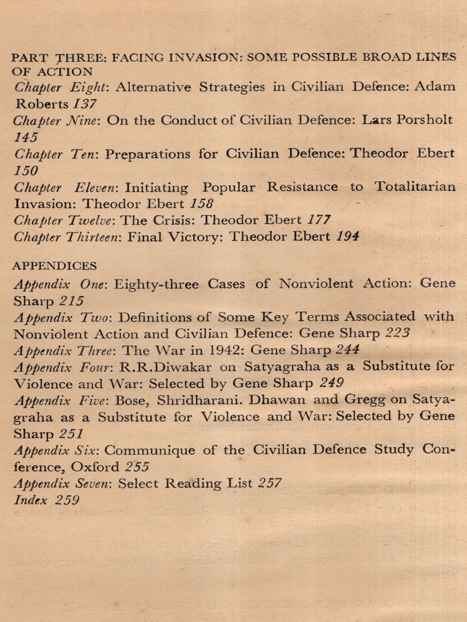 I am indebted to President Radhakrishnan for his brief words of commendation, to co-editors Gene Sharp and Adam Roberts for their infinite patience with the delays that overtook this book at almost every stage, to the Bharatiya Vidya Bhavan, Bombay for collaborating with us in its publication, and to Smt. Meera Mahadevan for reading the proofs and compiling the index.