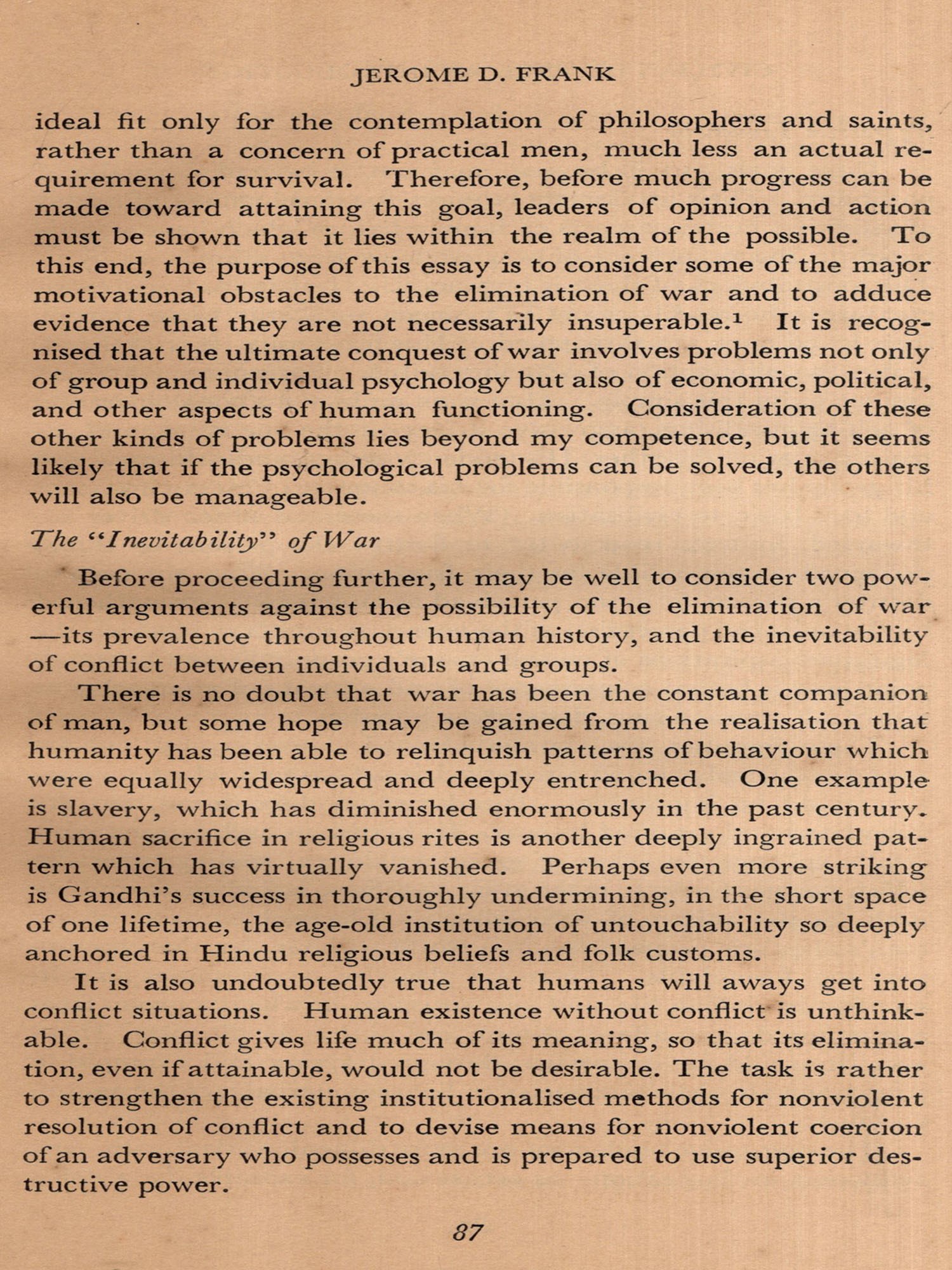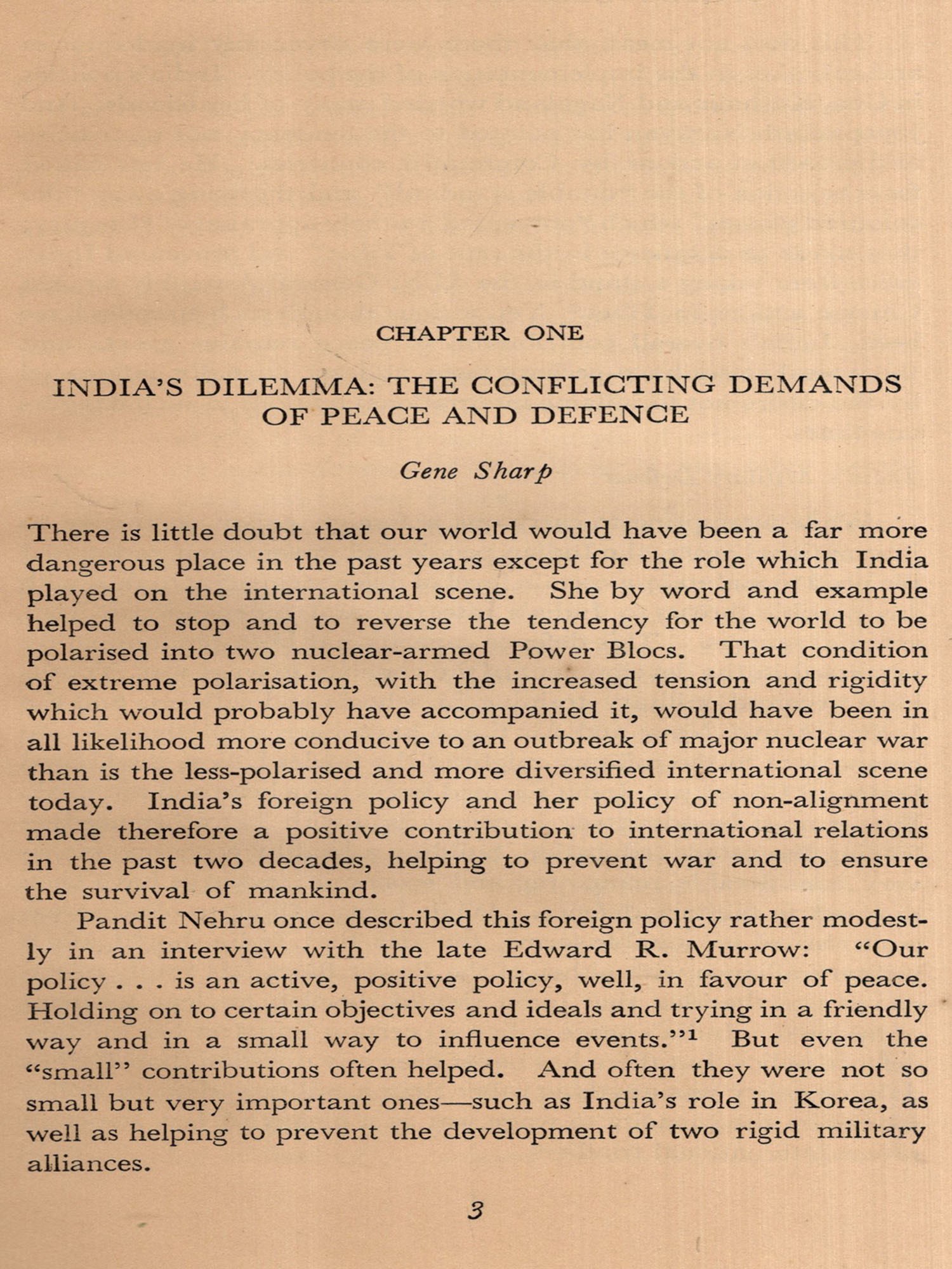 The book grew out of a pamphlet which Peace News, Lon-don published in 1964. Although we made many attempts, in the process of enlarging its contents and in other ways making it as useful and relevant as possible, to include contributions from one or two authoritative Indian sources they proved to be unavailing, partly because of the difficult nature of the subject, but mainly as we must ruefully admit-on account of a continuing reluctance in India to accept a commitment to non-violence or even to explore its possibilities in a rational manner.