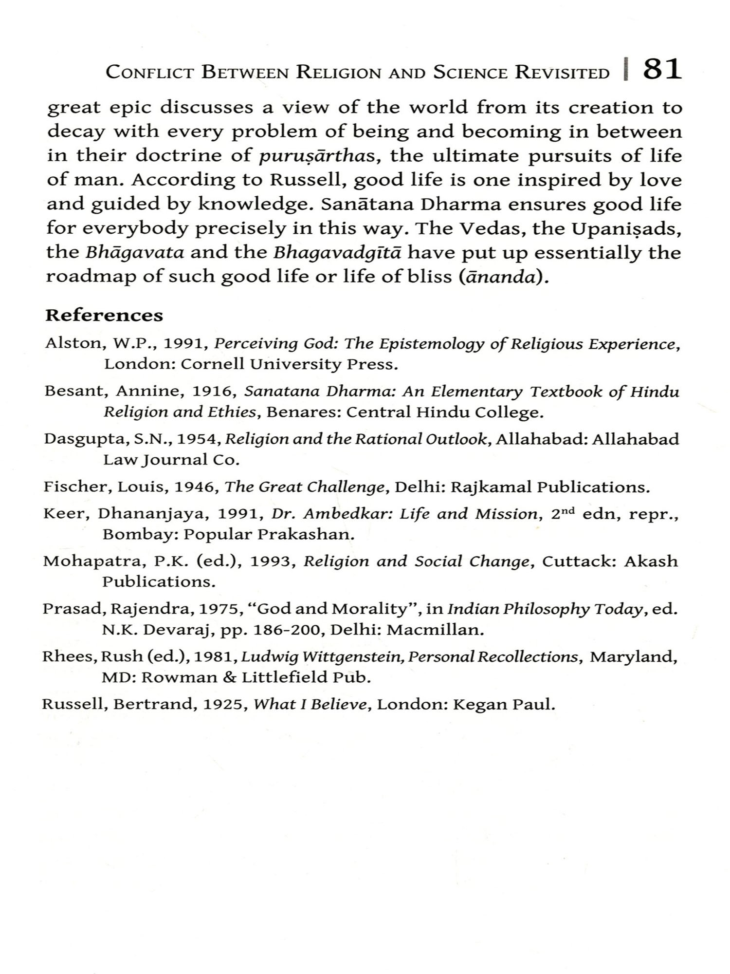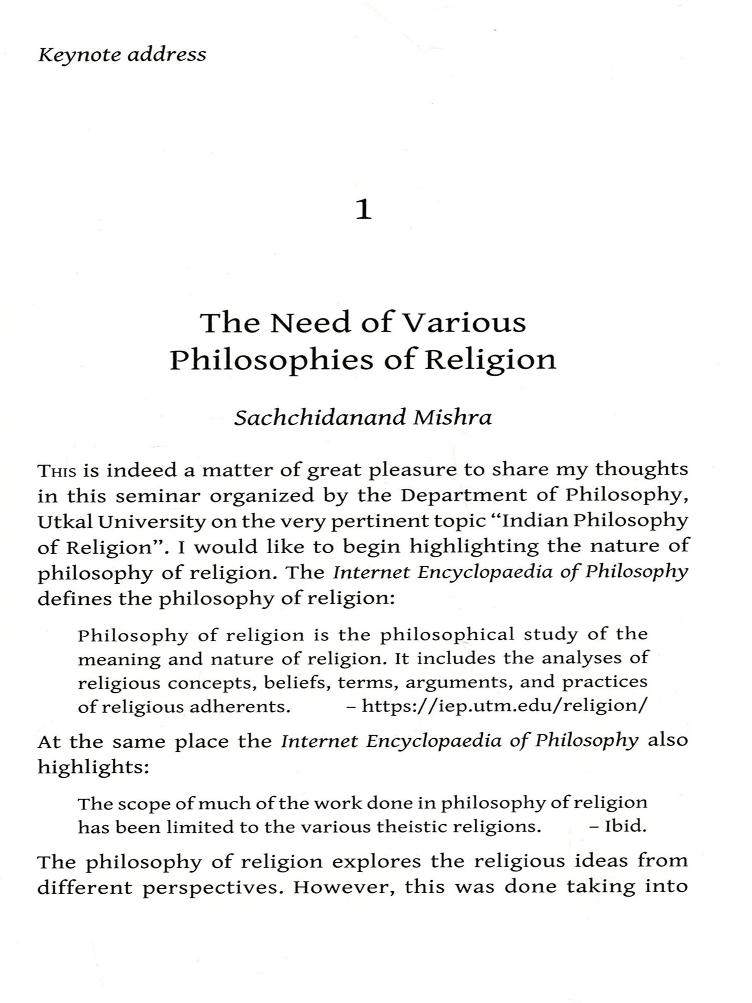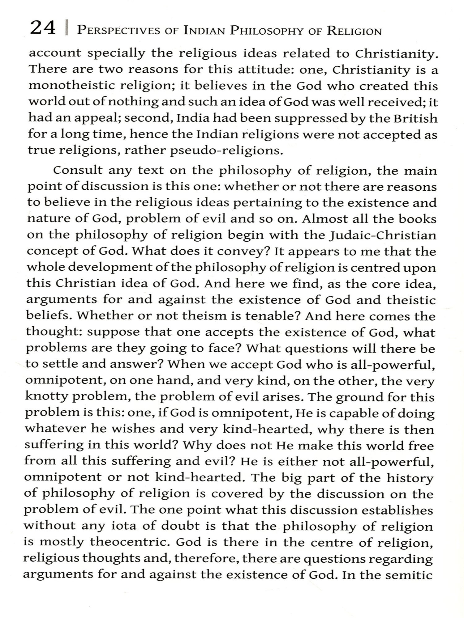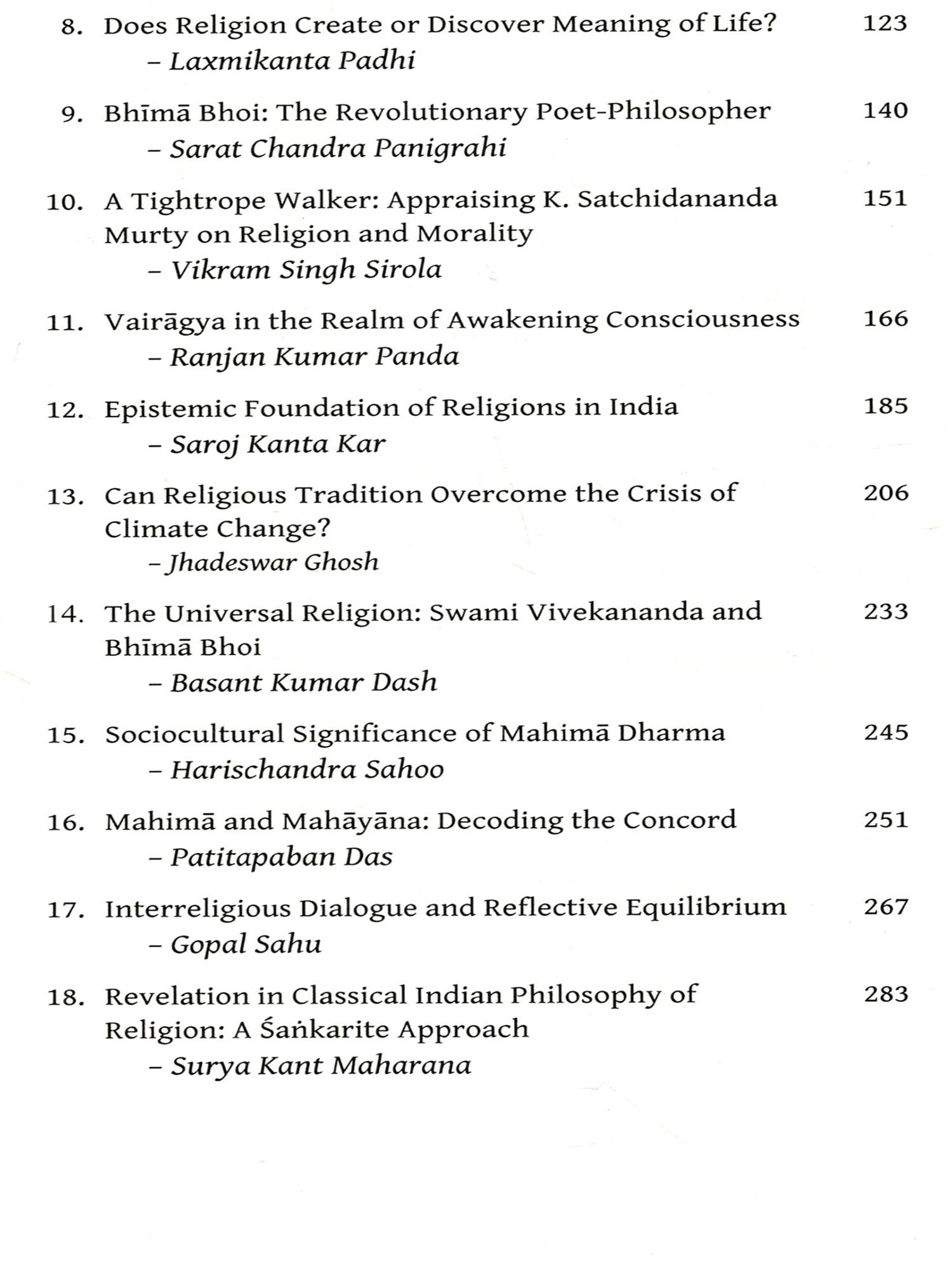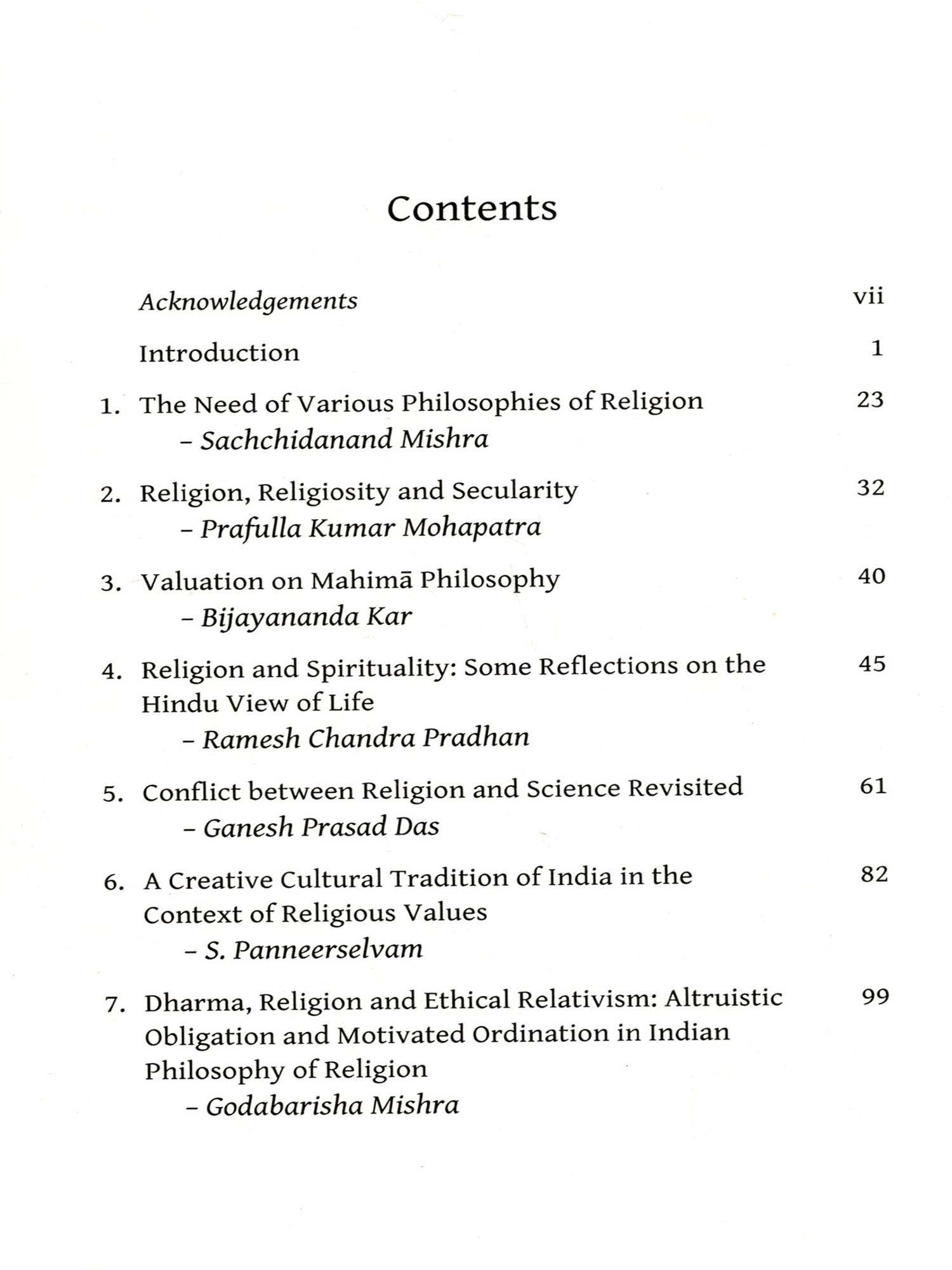 Indian philosophy of religion critically examines the religious traditions and practices that originated in the Indian subcontinent. It appreciates Hinduism, Buddhism, Jainism and Sikhism, including their subsects and similar traditions while reviewing certain aspects therein. In Indian tradition, philosophy and religion are not poles apart. Instead, they are related in theory and also to some extent in practice. Every Indic religion has a certain philosophy in its background and most of them assure the ultimate destiny of man, the fulfilment of human life, by the accomplishment of puruşārthas (dharma, artha, kāma, and mokşa). There have been vibrant, argumentative religious traditions, lived experiences and foundational institutions in all Indic religions explaining life and ultimate human destiny. There is no closed compartment for religious views. One may encounter absolutely new viewpoints and methodologies to explore fundamental questions concerning the meaning of life, or the ultimate human destiny. One of the important elements of Indian philosophy of religion is that it investigates the nature of religion that underlines the essential human duties by upholding moral and spiritual values for life by transforming the material to spiritual, profane to sacred, and natural to supernatural. It also explains the inexplicable and attempts to access the inaccessible in the paths of reason, devotion and action in symbiosis. This serves as the foundation of religions in India. Indian philosophy of religion moves on with an objective to resolve the doubts in the ideal plane, which seem more fundamental than any other material needs. In this context, this anthology aims to bring together the different views in Indian philosophy of religion as reflected in the Vedas, the Upaniṣads, the Purāņas, and the modern perspectives thereof.