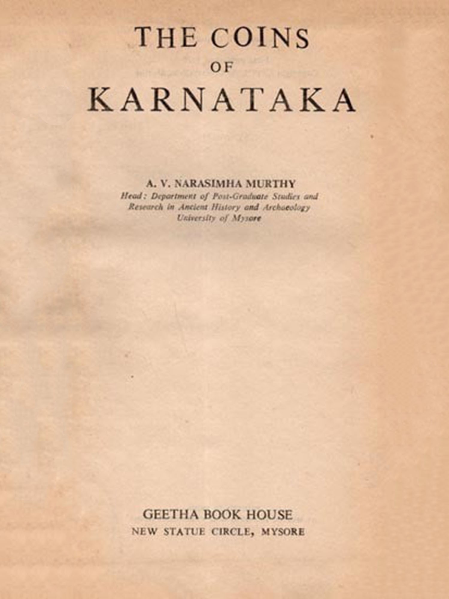 Though Mysore was one of the earliest among the States to establish a department of archaeology on a sound basis, numismatics does not seem to have received enough attention. Epigraphy was the main concern of the Department of Archaeology in Mysore State till we come to the period of M. H. Krishna, who initiated a systematic study of the coins of Karnataka. One of the early books on the coins of Karnataka was A Brief Sketch of Gold, Silver and Copper Coinage of Mysore written by Hawkes in 1855.