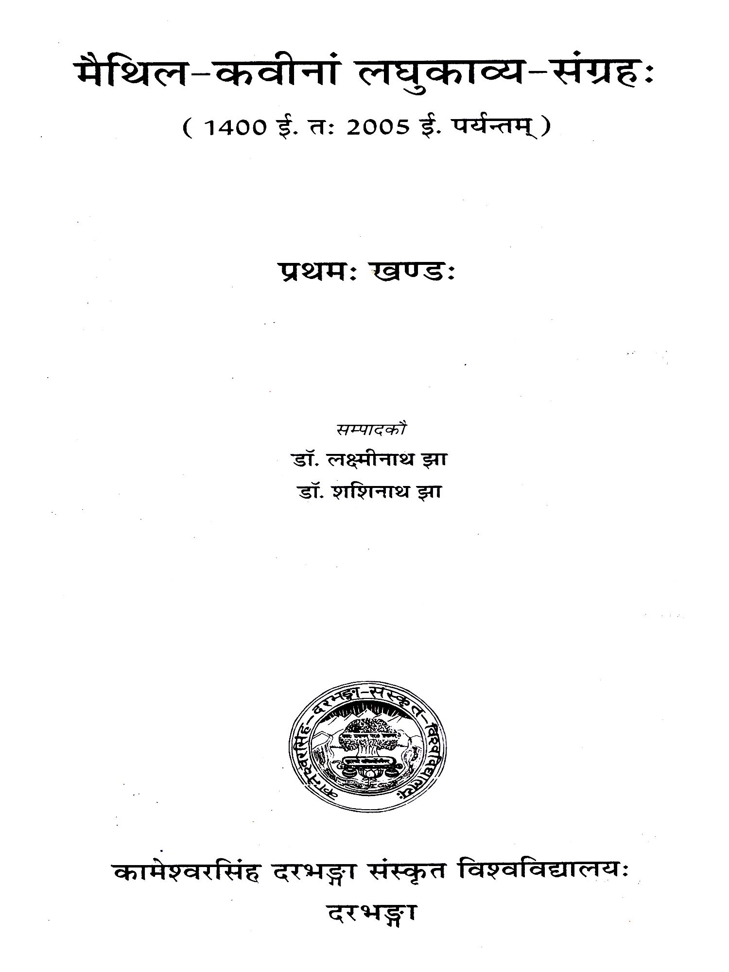 मैथिल-कवीनां-लघुकाव्य-संग्रहः- A Collection of Short Poems by Maithili Poets- 1400 AD To 2005 AD. Up to the Present (Set of 2 Volumes)