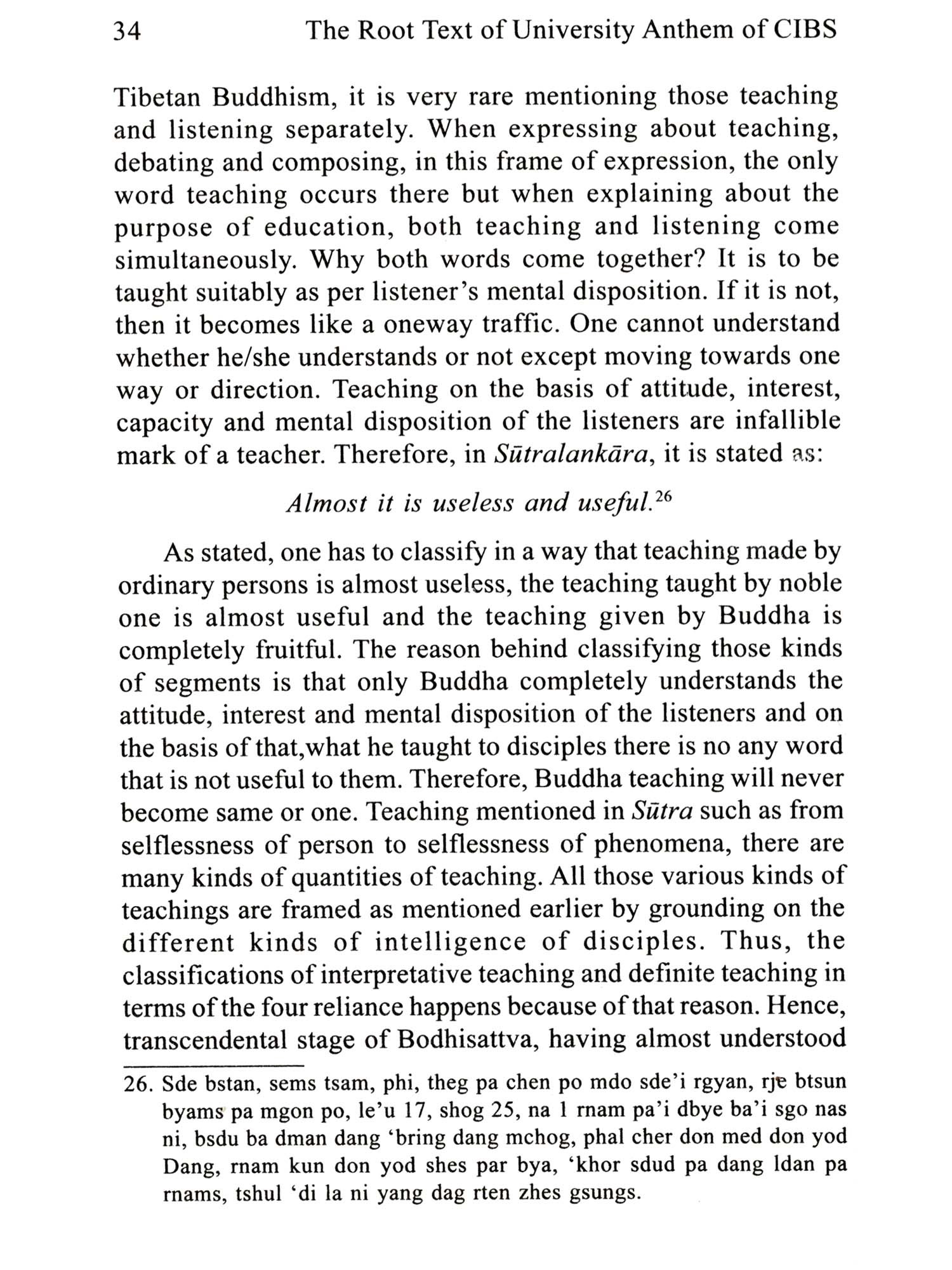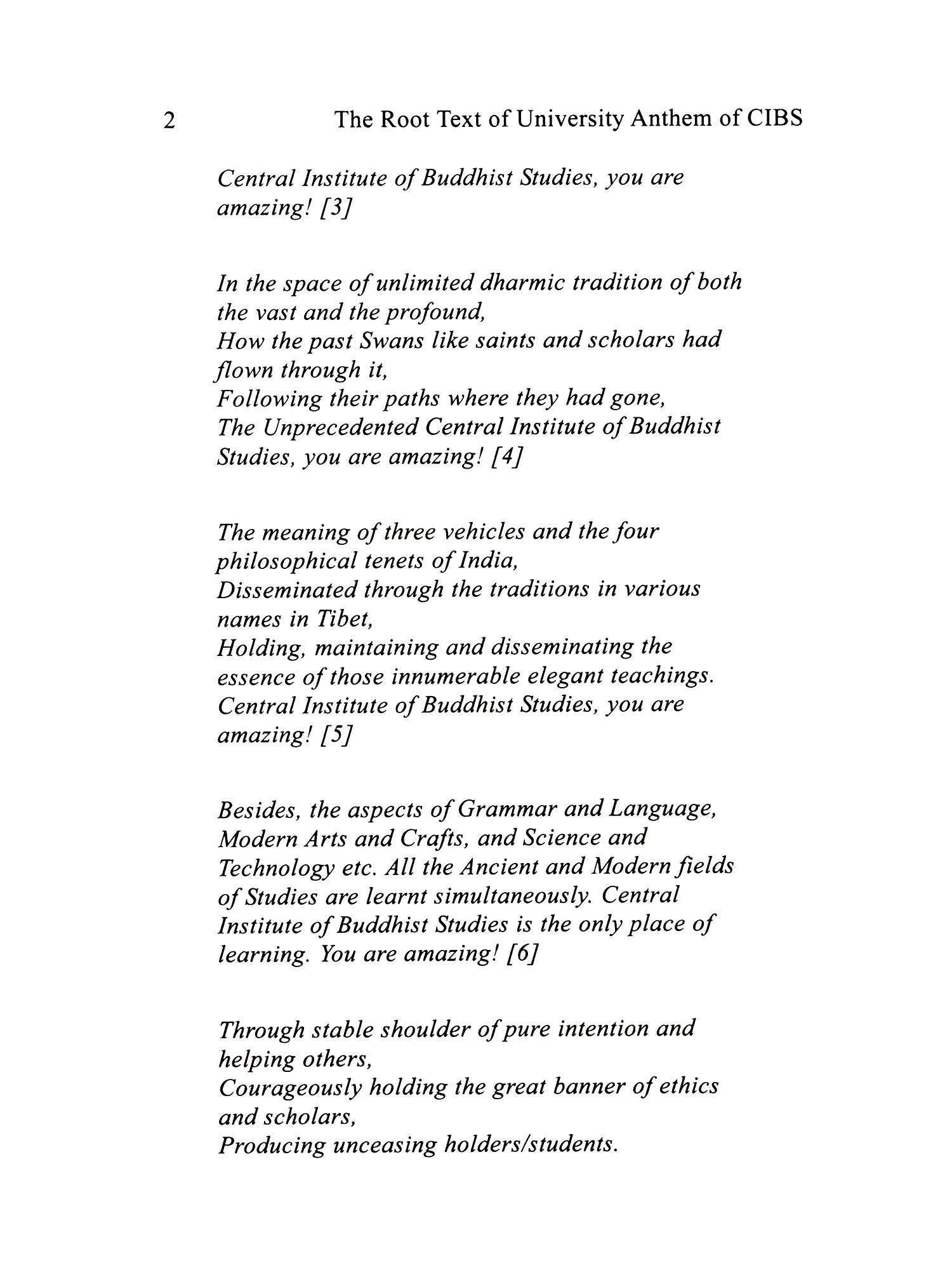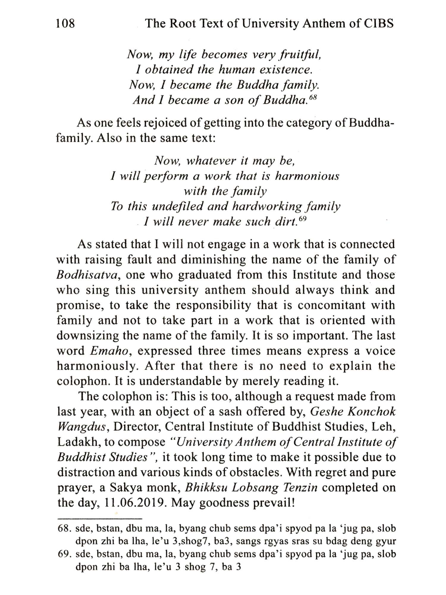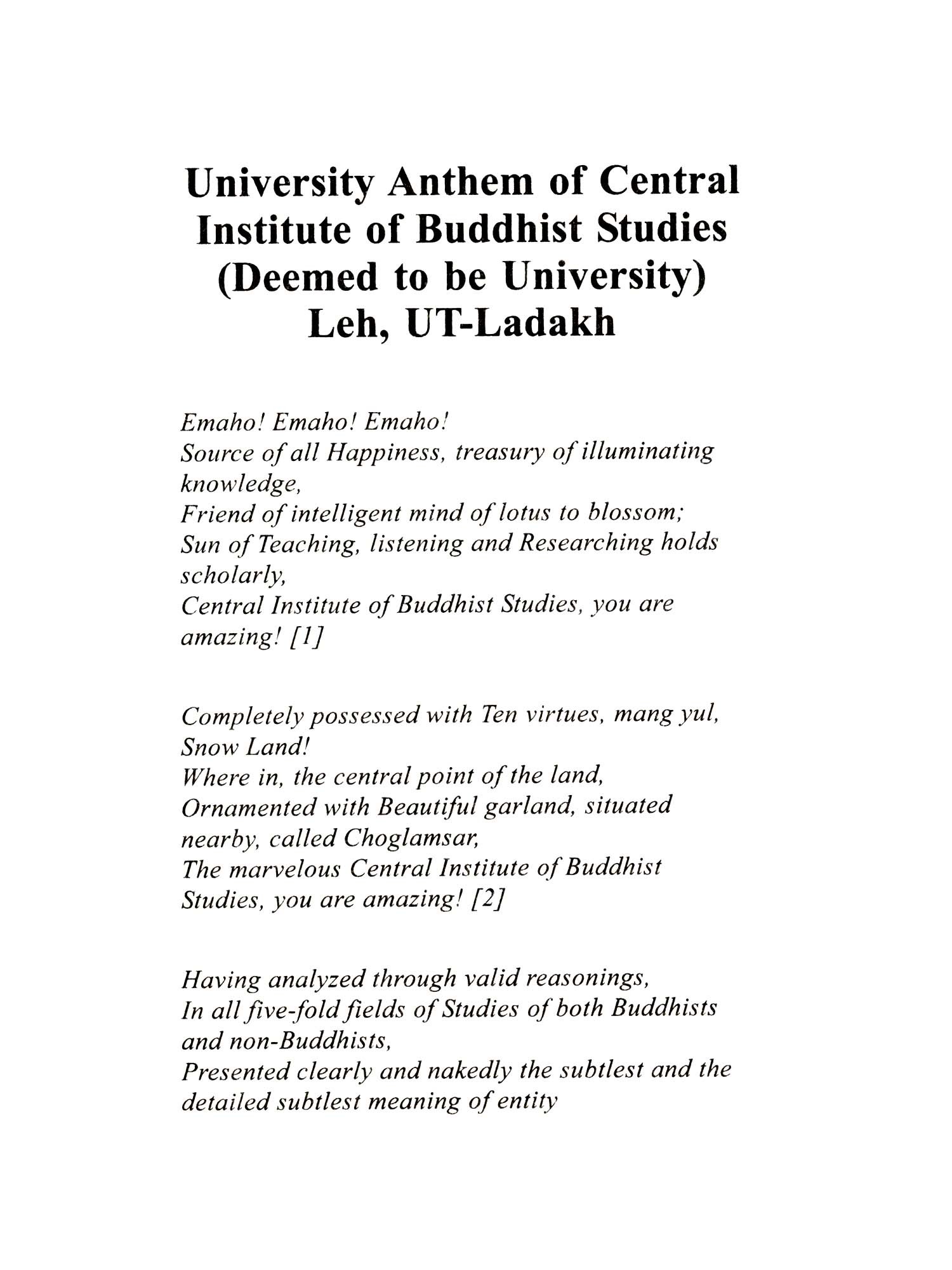 A Commentary Upon the Root Text of Univeristy Anthem of Central Institute of Buddhist Studies