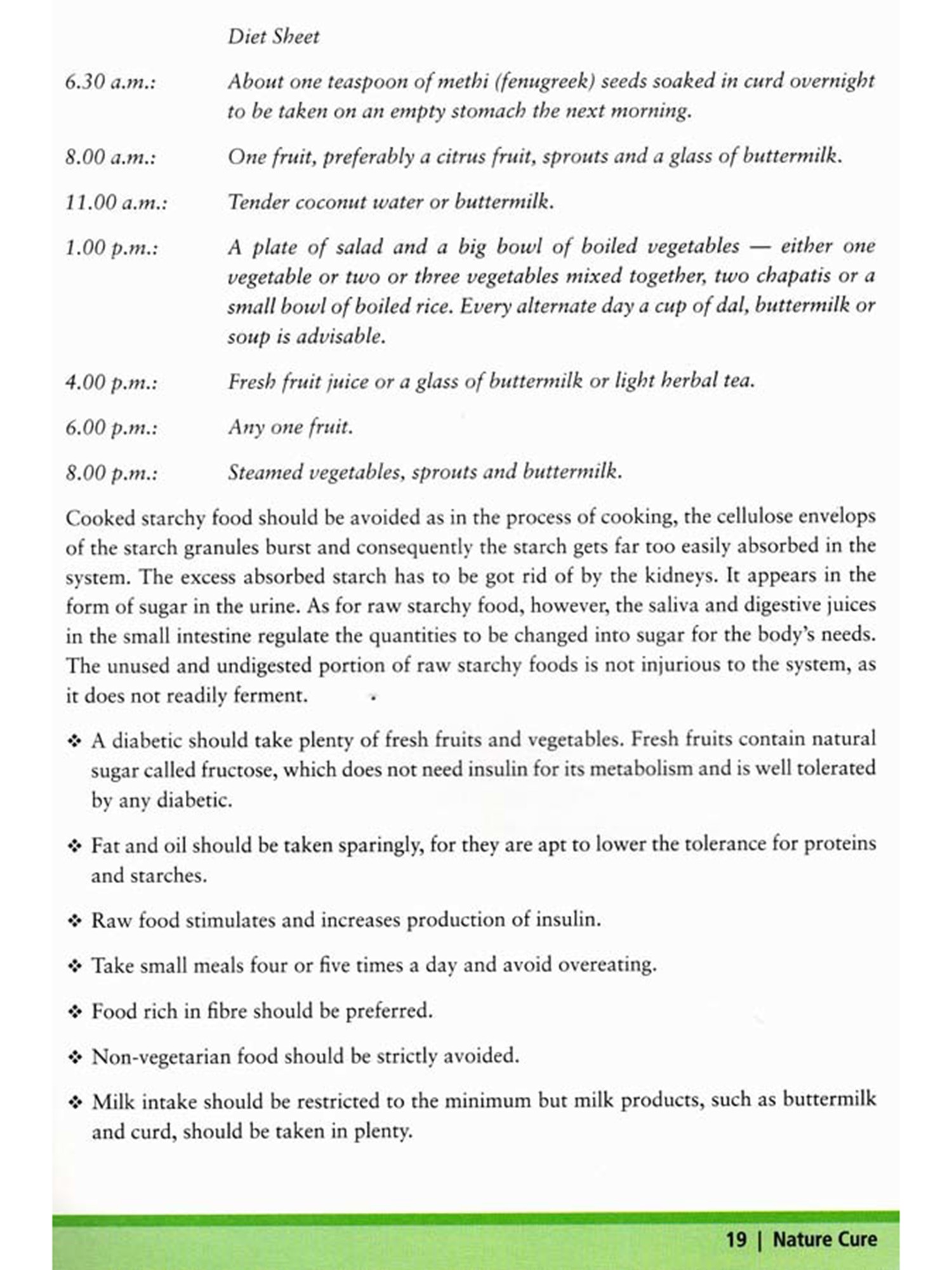Most of the treatment methods are very simple. They can be adopted by anyone at home, or after learning at a clinic or by reading books on Nature cure. The chapter on daily routine provides the guidelines, which help in keeping the physical problems away or in keeping them under control.