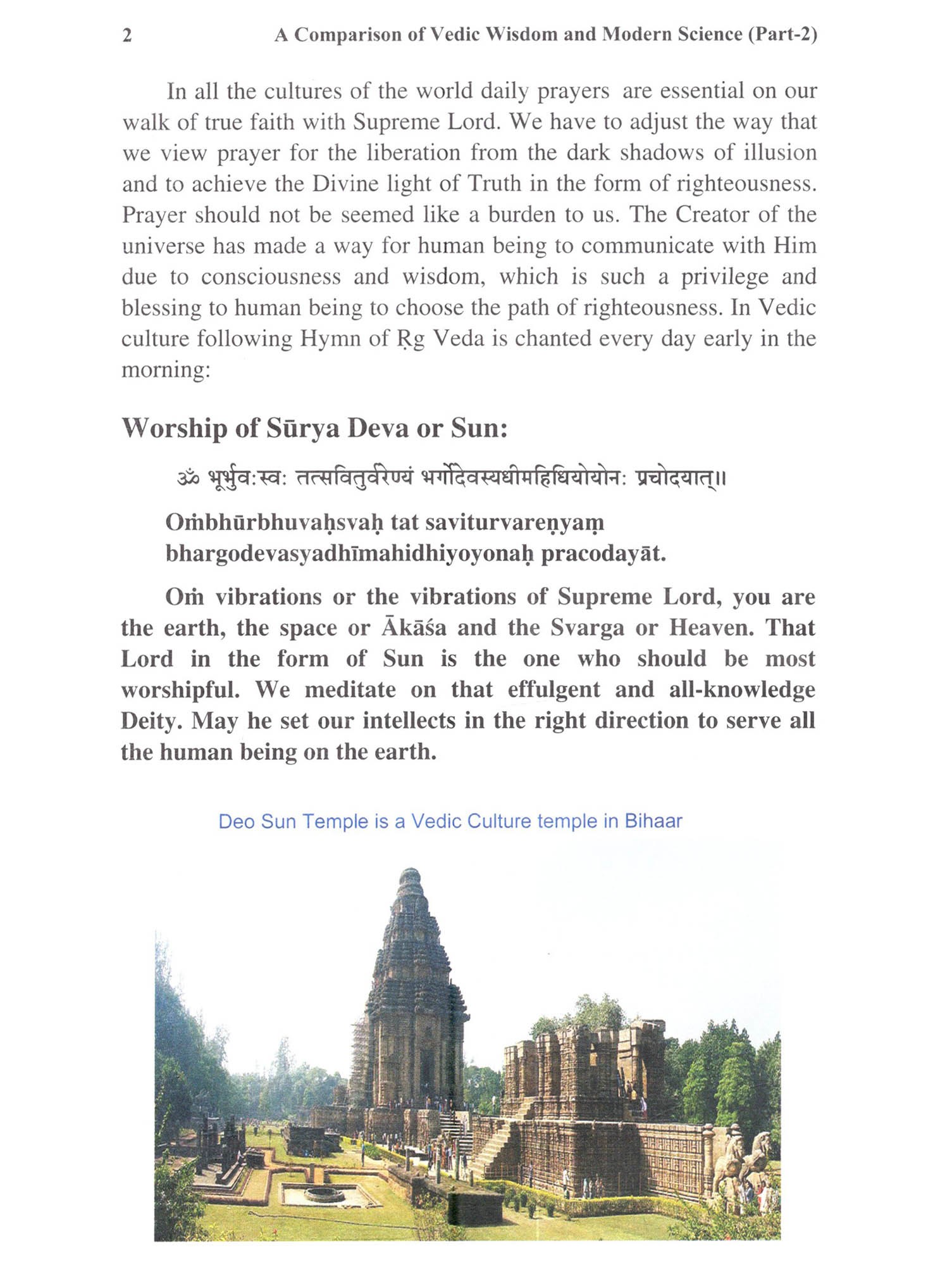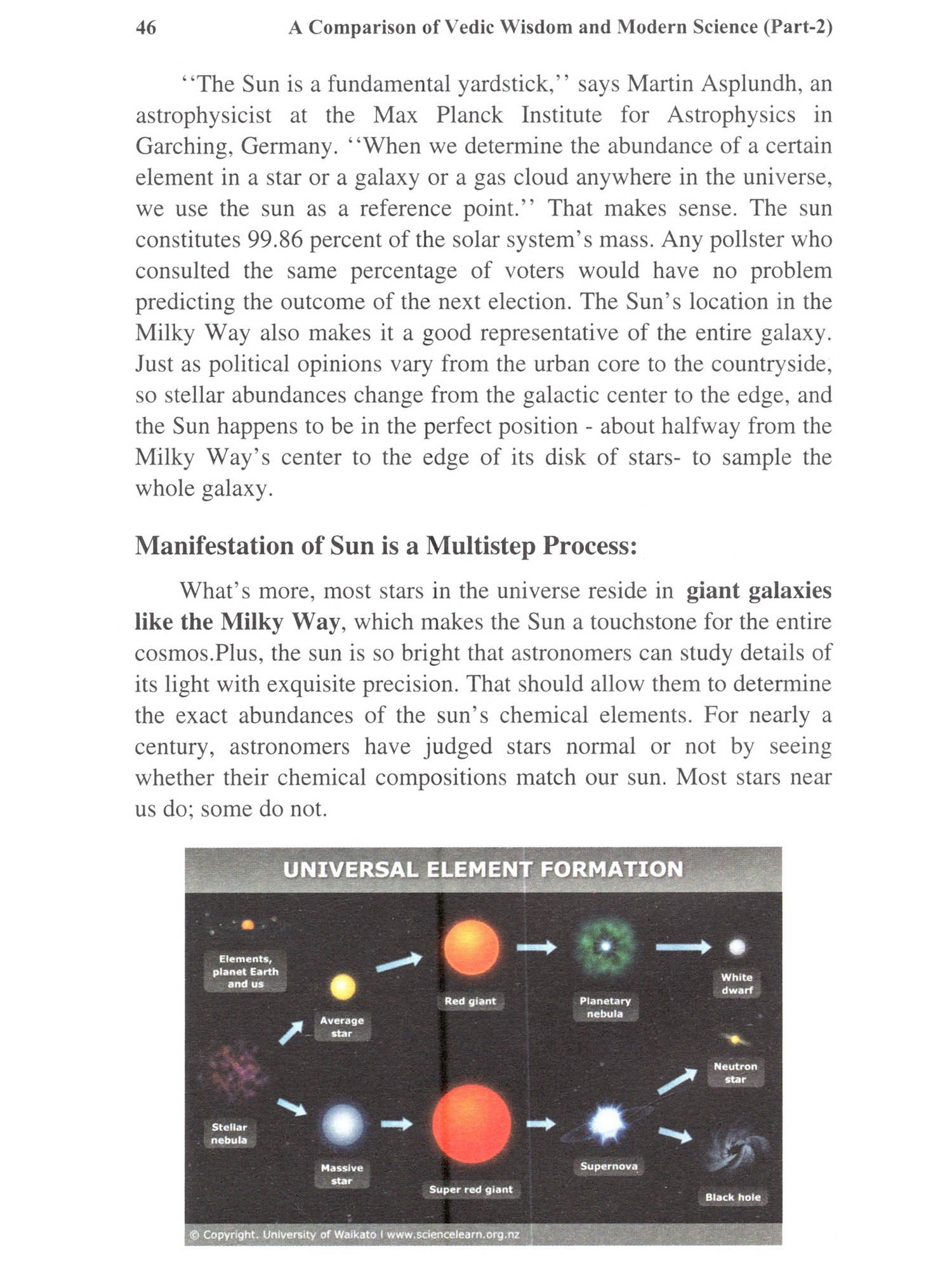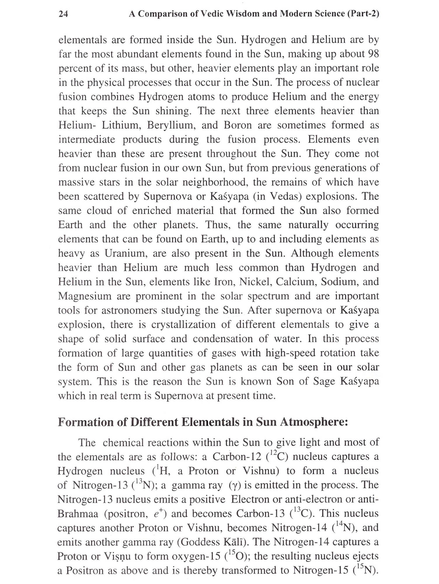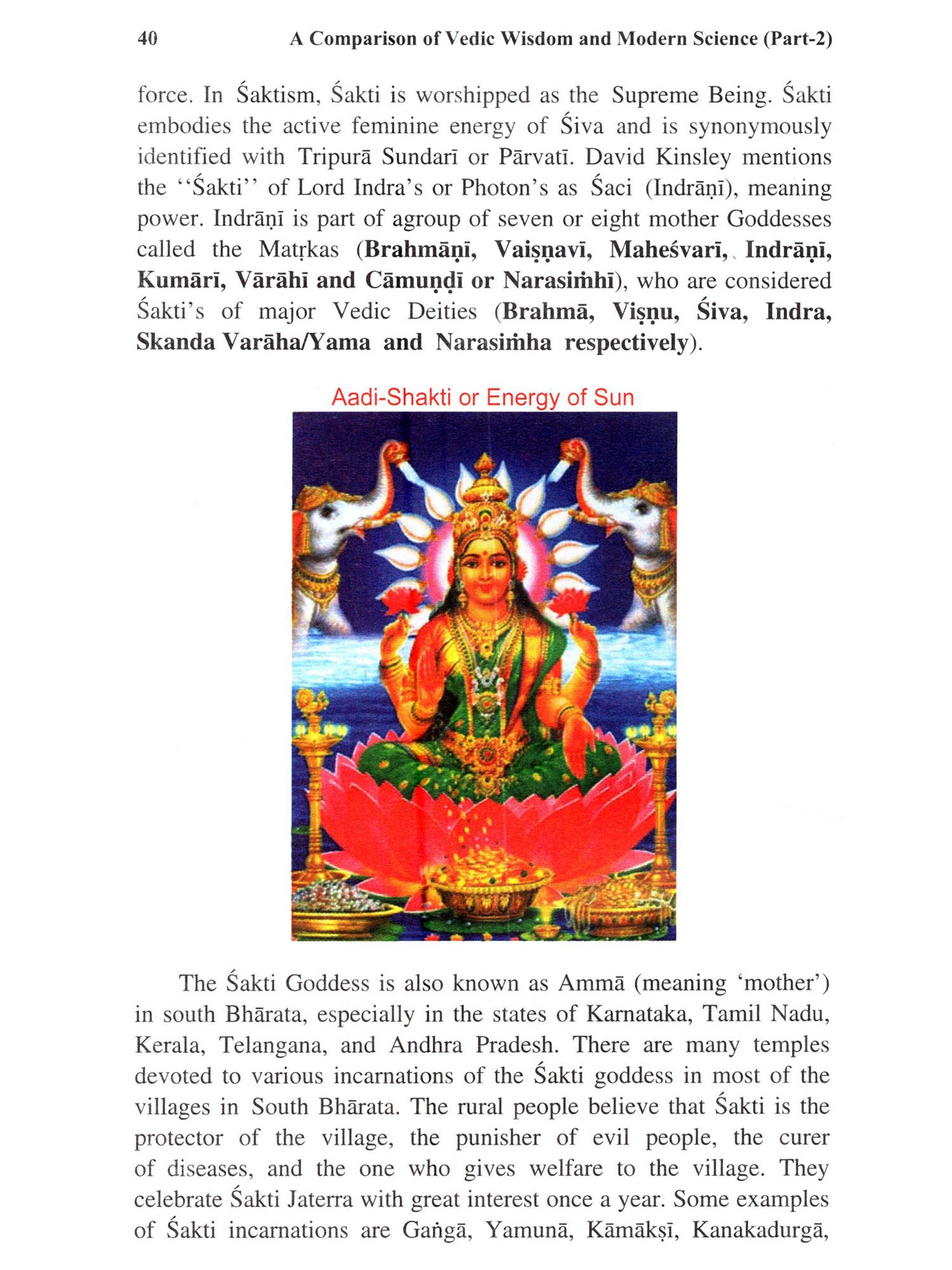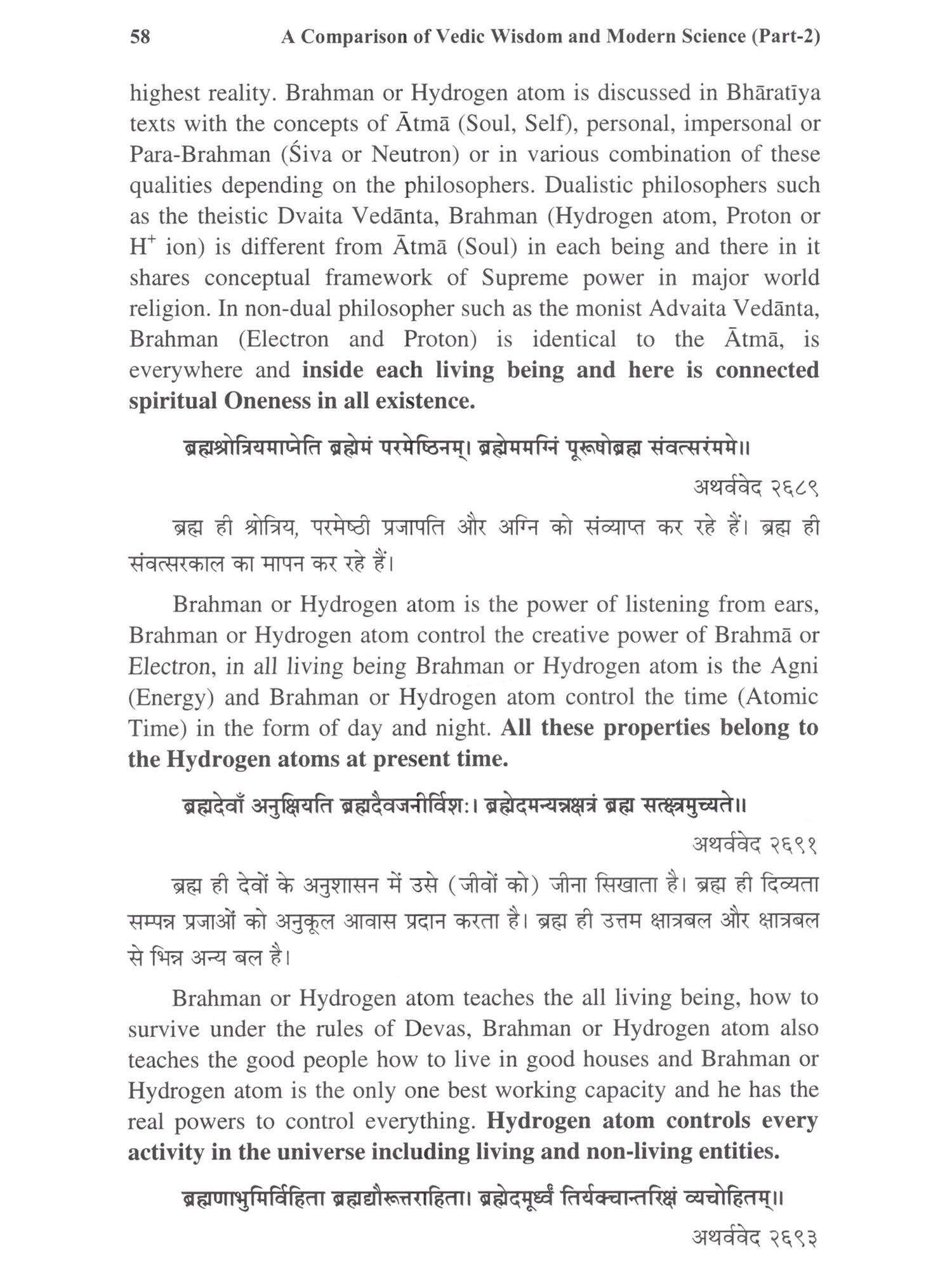 The author's aim to write this book is to of Onenessor single Supreme Entity. As a auman being we all contain in our body five components of nature, Sky or Aether. Air, Energy, Water and Solid material or Earth. If we consider at microlevel of fundamental particles, we ire the combination of Electron, Proton. Neutron and Energy. These four components of Supreme Lord are charge particles which are conserved in the universe. These particles cannot be created or destroy. In Vedic literature these fundamental particles are created from a single entity known as Salila or Quark-Gluon-Soup or Supreme Reality. As these Deities act independently under the guidance of Supreme Reality are known as Brahmä or Electron, Vişnu or proton, Siva or Neutron and Adi-Sakti or Energy Supreme Lord or Salila or Black Hole creates every entity of the universe by his own desire. When Lord Siva in Vedic literature and Neutron in Modern Science have the desire of creation, there is manifestation of Brahman and Adi-Sakti; Brahman is hydrogen atom and Adi-Śakti is Energy. Adi-Sakti has three forms; Käli or high energy particles. Lakşmi or Visible light and Sarasvati or Red shifted light or low energy radiations. Brahman or Hydrogen atom has five components system; Brahmā or Electron, Vişņu or Proton, Seşa-Naga or Serpent or gravitational force, Kşira Sägara or Sky or space and Lakşmi or nuclear binding energy. Śiva or Neutron is Supreme Reality and is present all the elemental except hydrogen atom. In combined form Śiva or Neutron, Vişņu or Proton, Brahmä or Electron and Adi-Sakti or Energy manifest all the entities of the universe. The message to write this book on Vedic Philosophy is that we all are the children of one Reality, but having different nature due to the presence of different amount of charge.