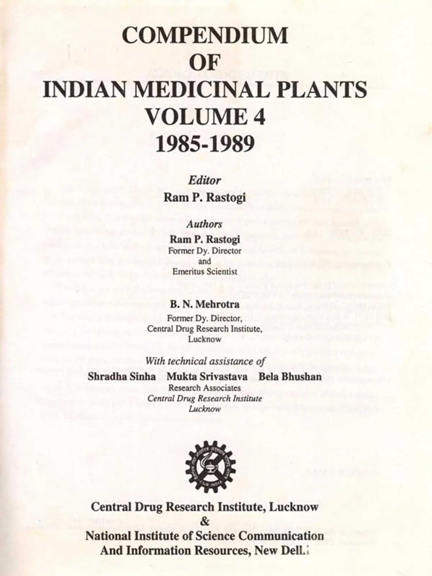 This detailed treatise is written for botanists, chemists and biologists as companion volume to Glossary of Indian Medicinal Plants" by Chopra, Nayar & Chopra and covers the five-year period 1985-89. Volume 1 (1960-69) was published during February 1990 and Volume 2 in April 1991. The reprint editions of these volumes have come out in 1993 which contain a new index of chemical structures. Vol.3 (1980-84) was published in May, 1993 and has been reprinted in 1995. Thus, these volumes have four indexes each.