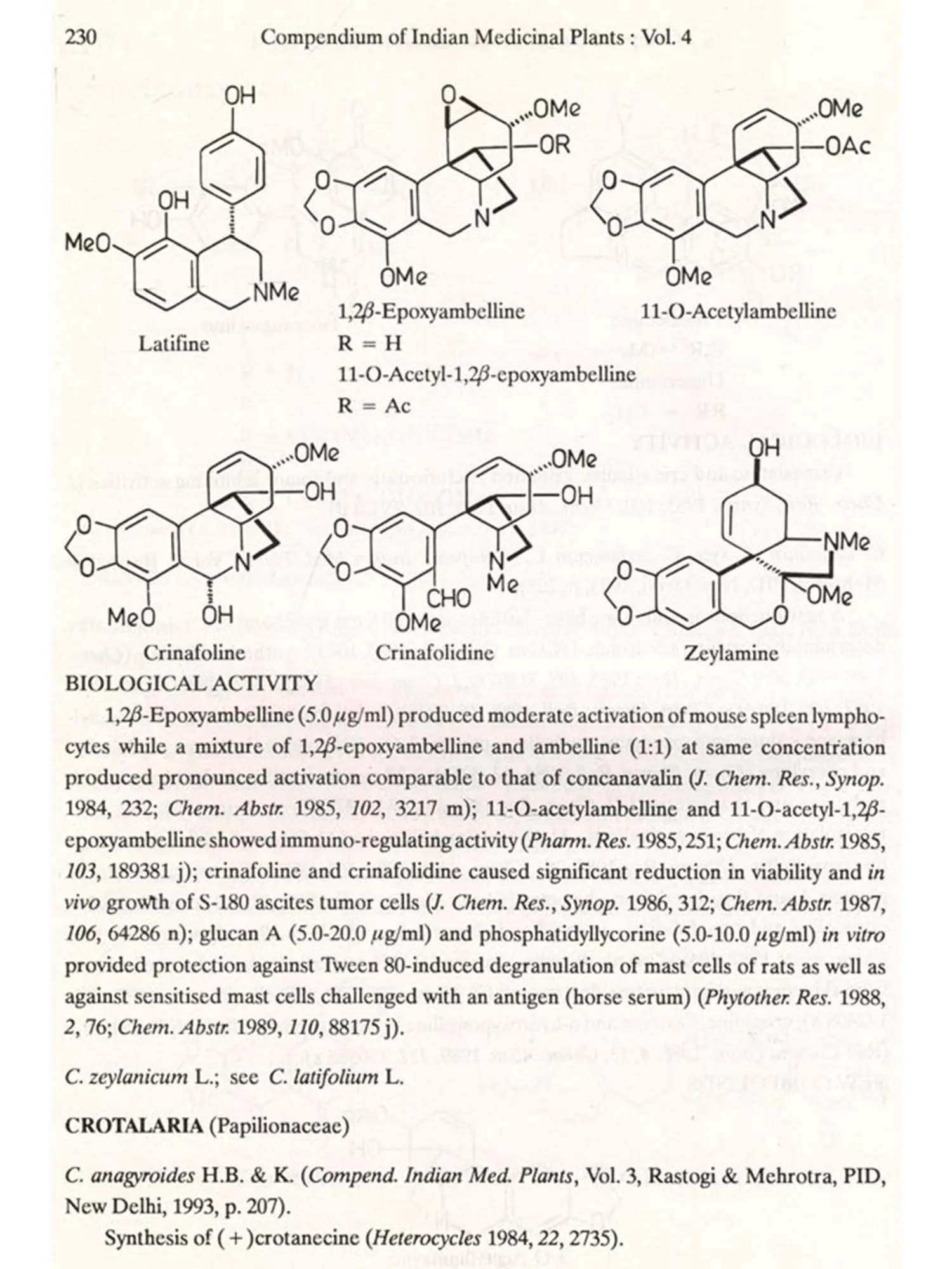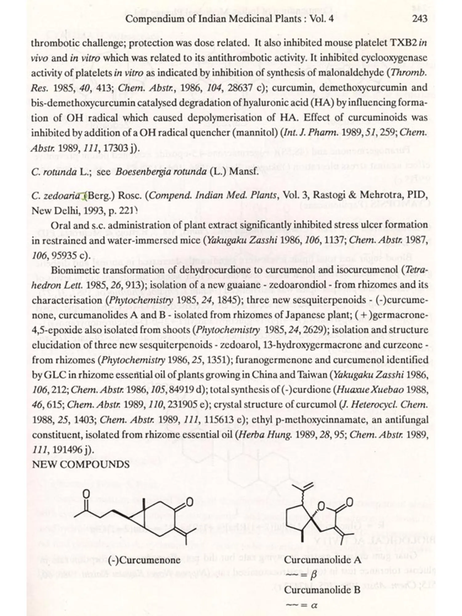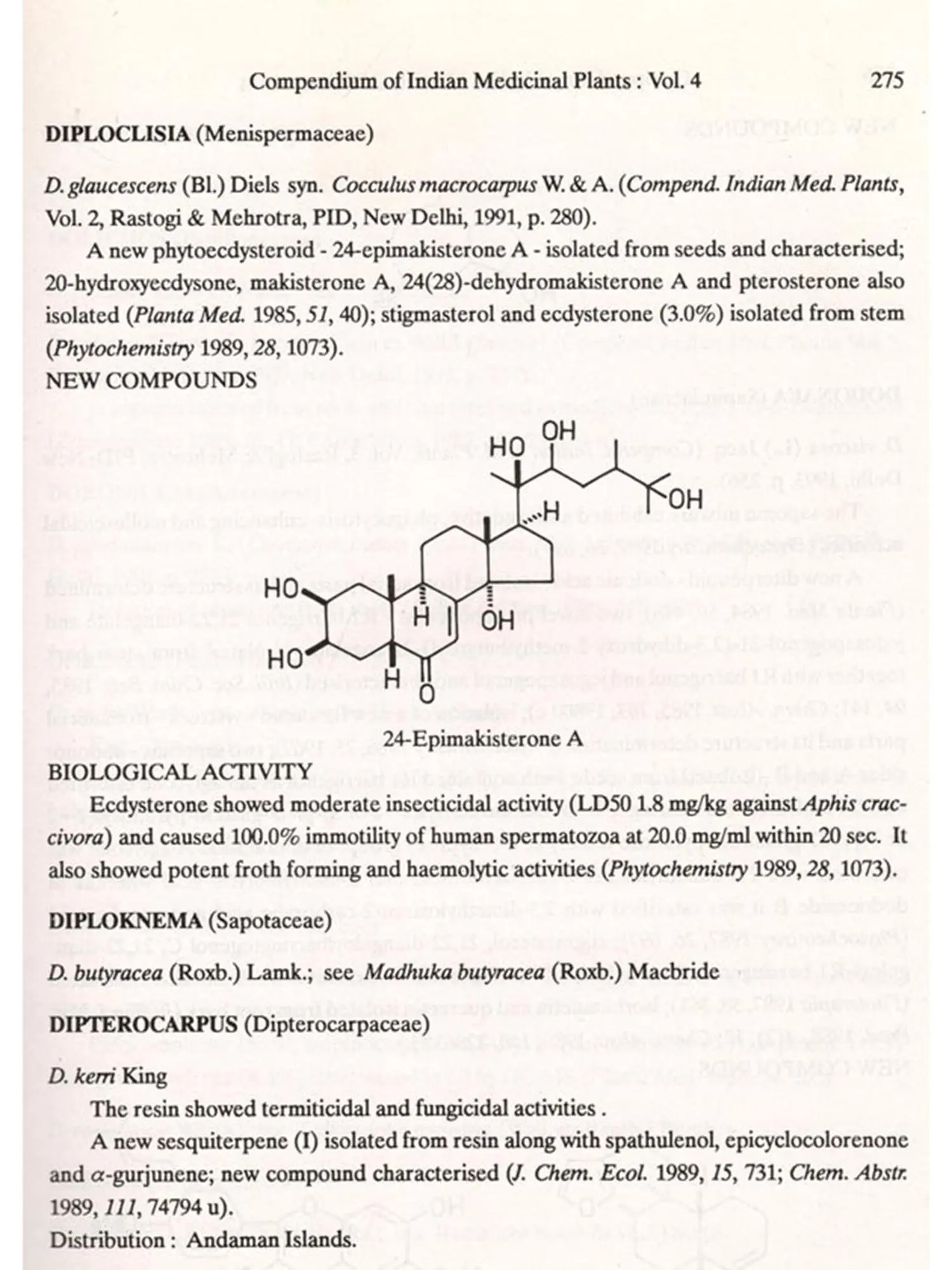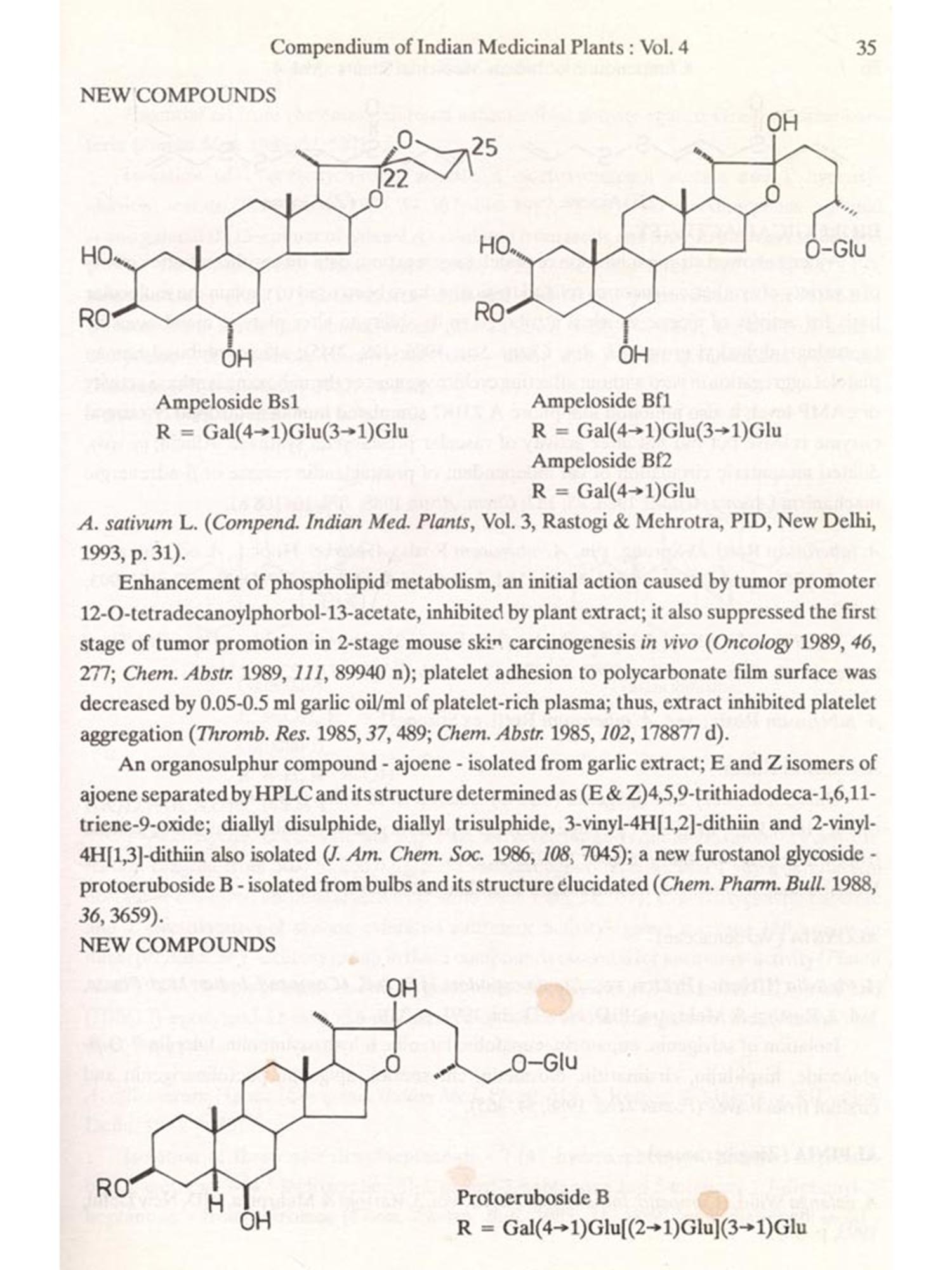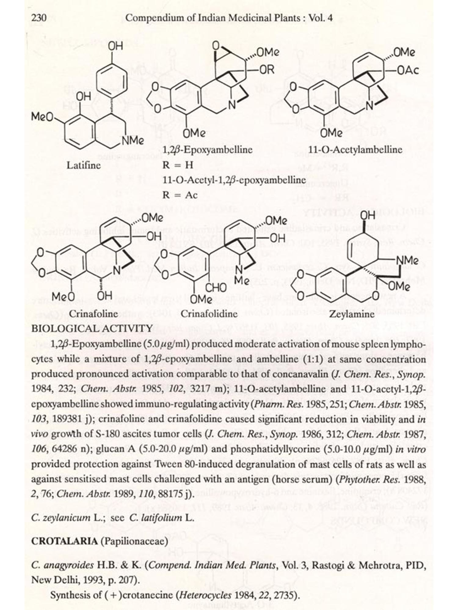 The format followed for Vol.4 is similar to that of Vols 1, 2 and 3, i.e. the write-up on each plant also includes new type of data/information, viz. chemical structures of new compounds isolated and the biological work on pure constituents isolated from a plant.
