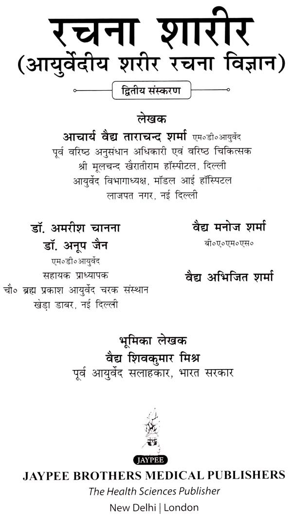भगवान धन्वन्तरी की असीम अनुकम्पा से 'रचना शारीर' नवीन पाठ्यक्रमानुसार नवीन संस्करण के साथ आपके हाथ में है। इस संस्करण में यथावश्यक पाठ्यक्रम के नवीन बिन्दुओं को सम्मिलित कर पुस्तक के अध्याय भी यथाक्रम लगाये हैं। यद्यपि आधुनिक रचना शारीर विषयक अनेक ग्रन्थ उपलब्ध हैं तथापि कुछ आधुनिक विषय जिनका आयुर्वेद बिन्दुओं के साथ संबंध था उनका संक्षेप में वर्णन किया गया है।