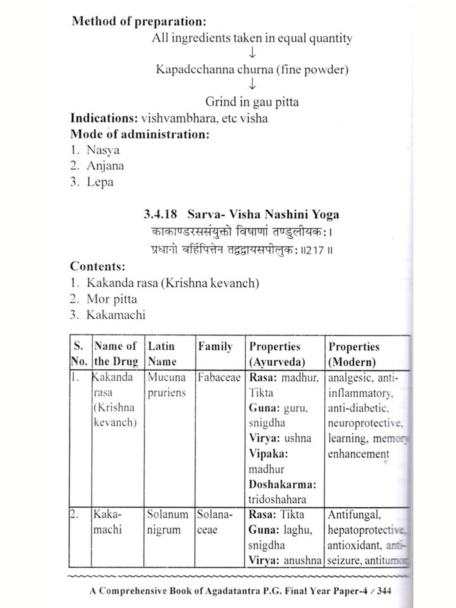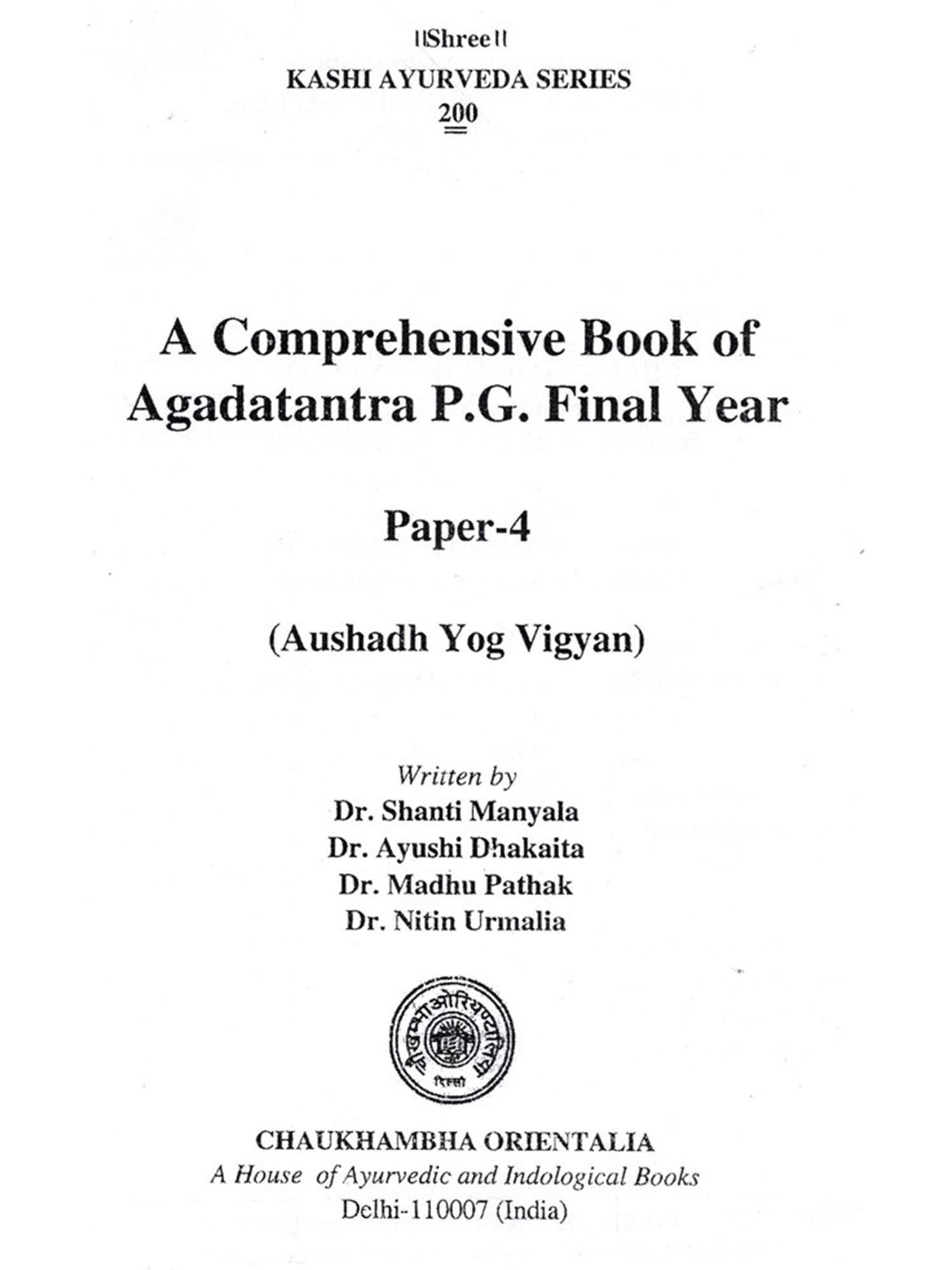 A Comprehensive Book of Agadatantra P.G. Final Year (Aushadh Yog Vigyan Paper-4)